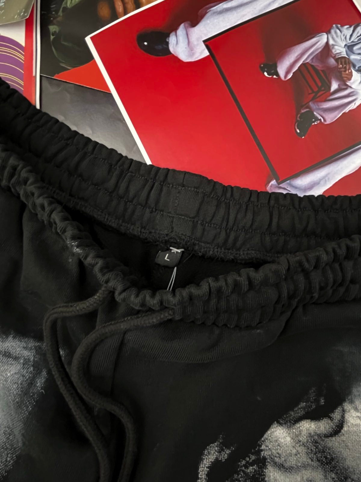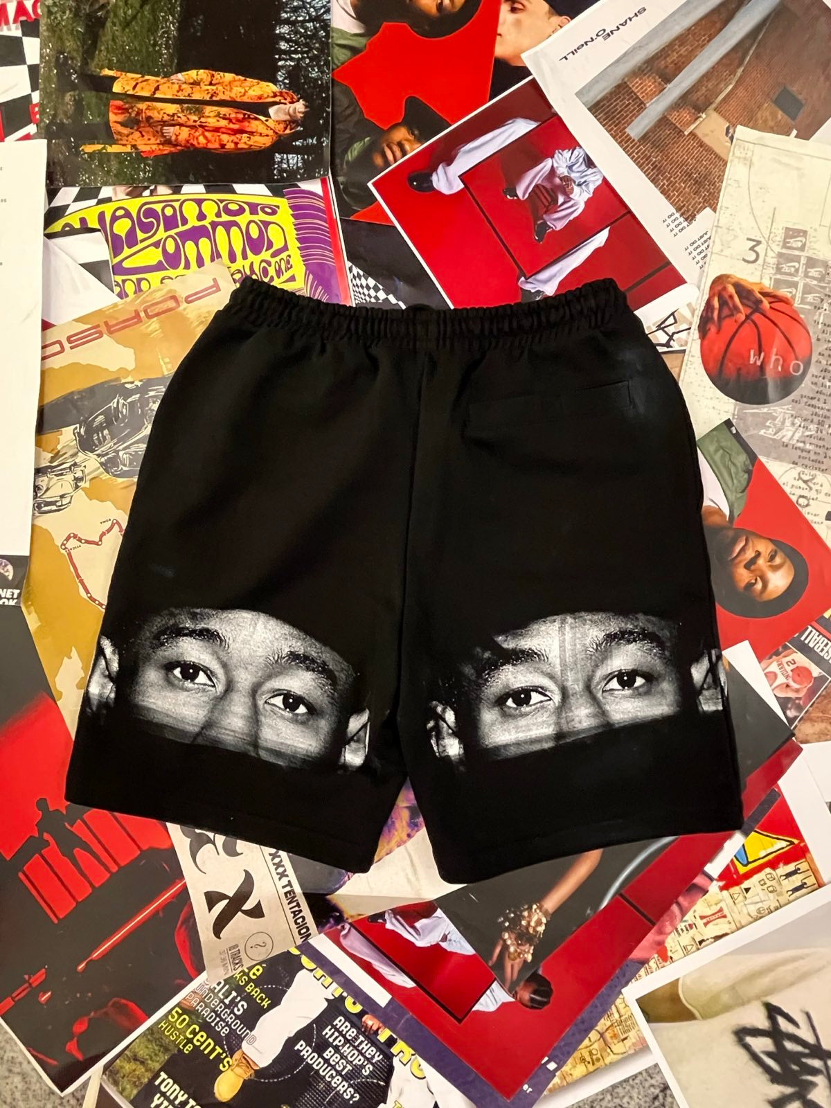1of1 KRAŤASY černé pánské s bílým sítotiskem Golf Tyler, the Creator, zepředu čtyřikrát jeho pusa, zezadu dvakrát jeho oči L