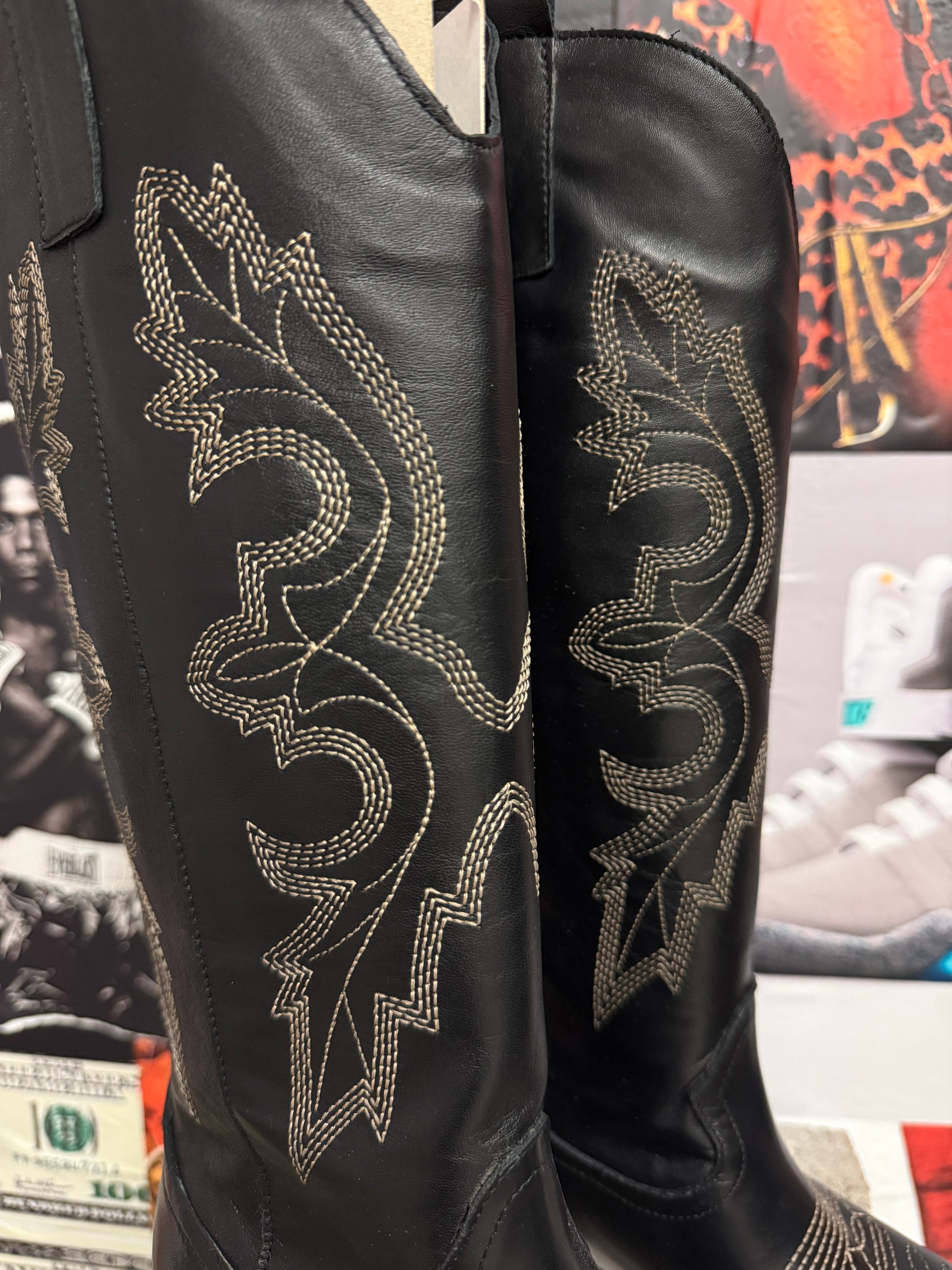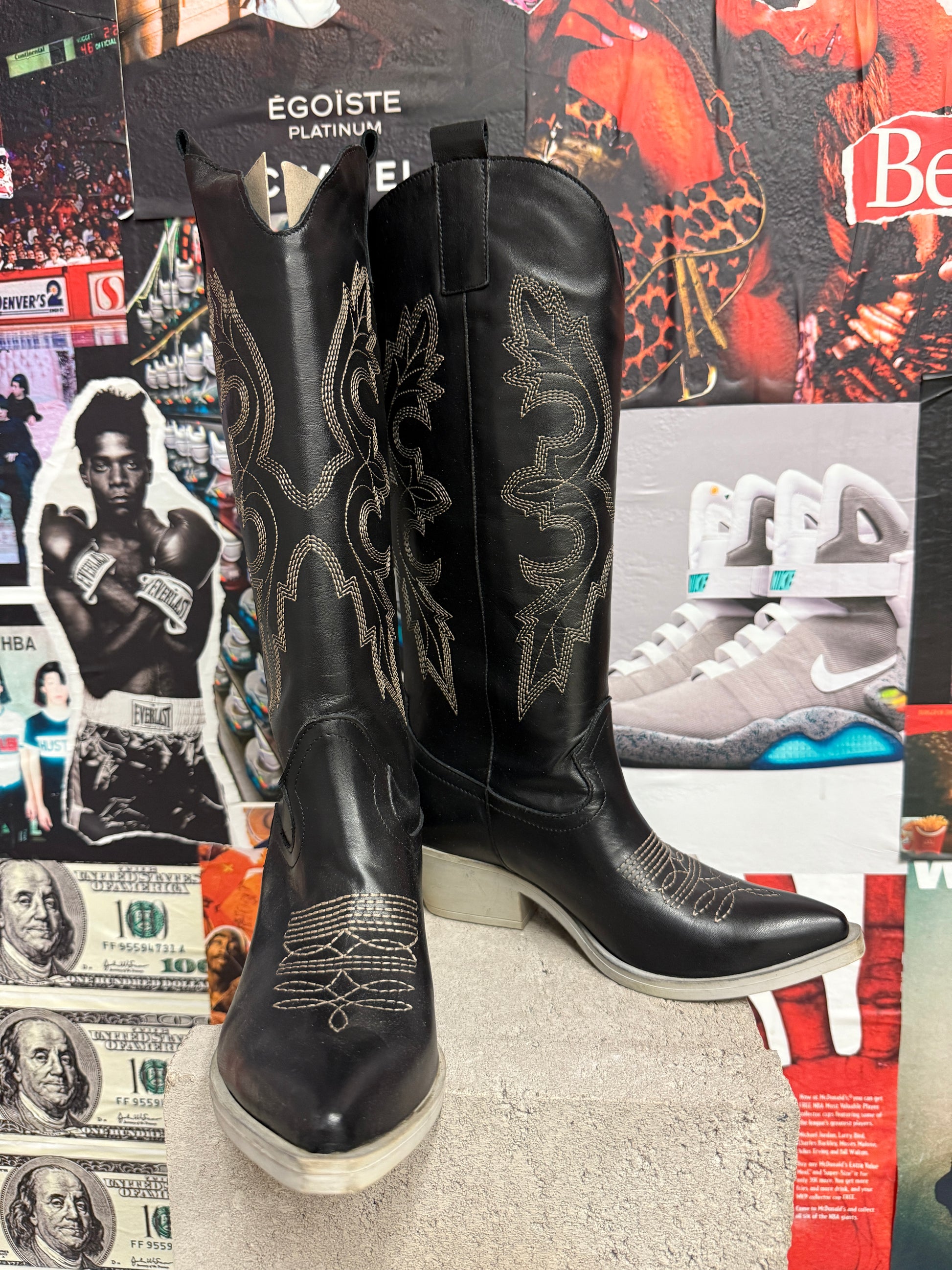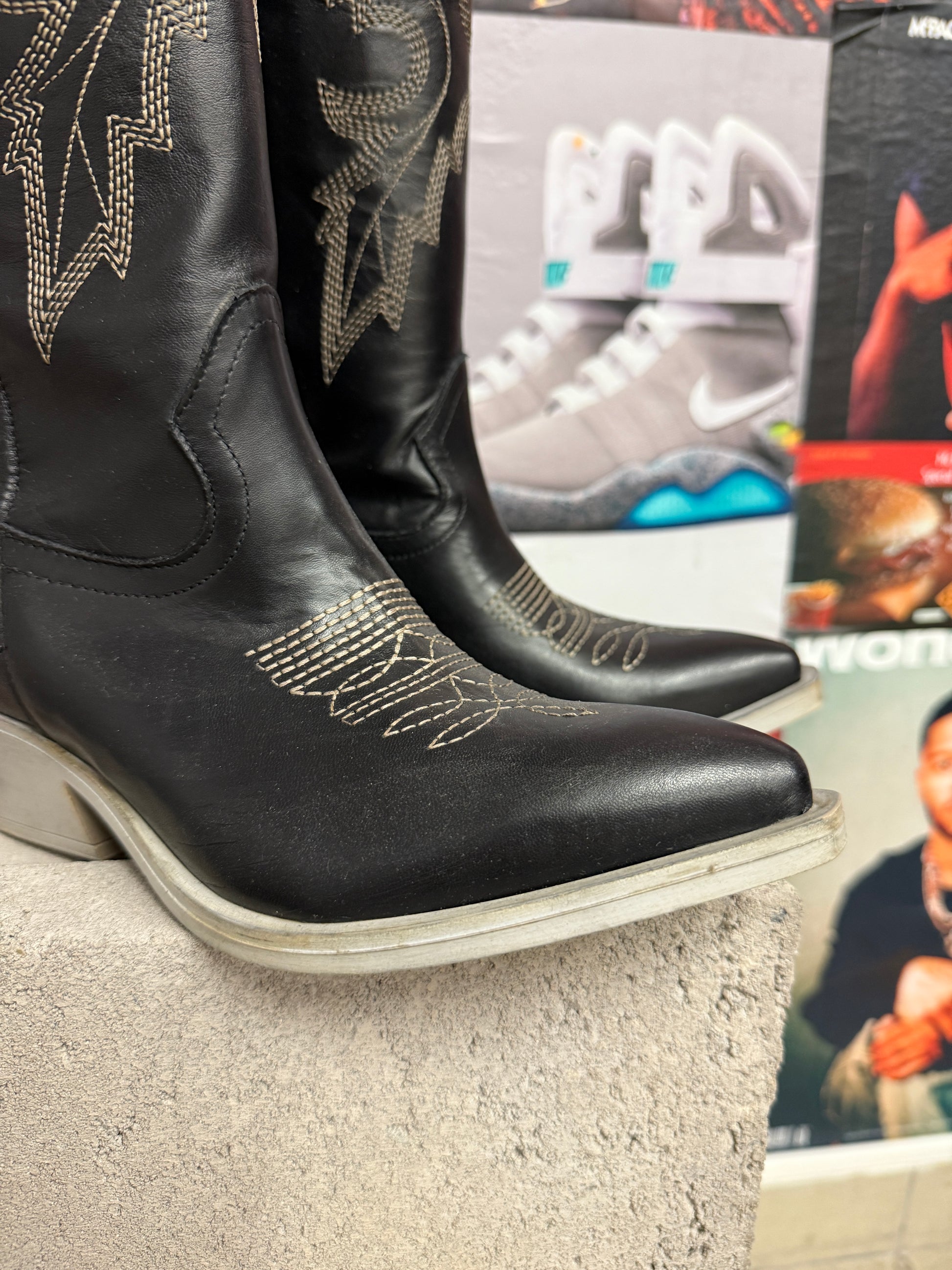 (37) Nila&Nila kovbojské kozačky černé s béžovým prošíváním