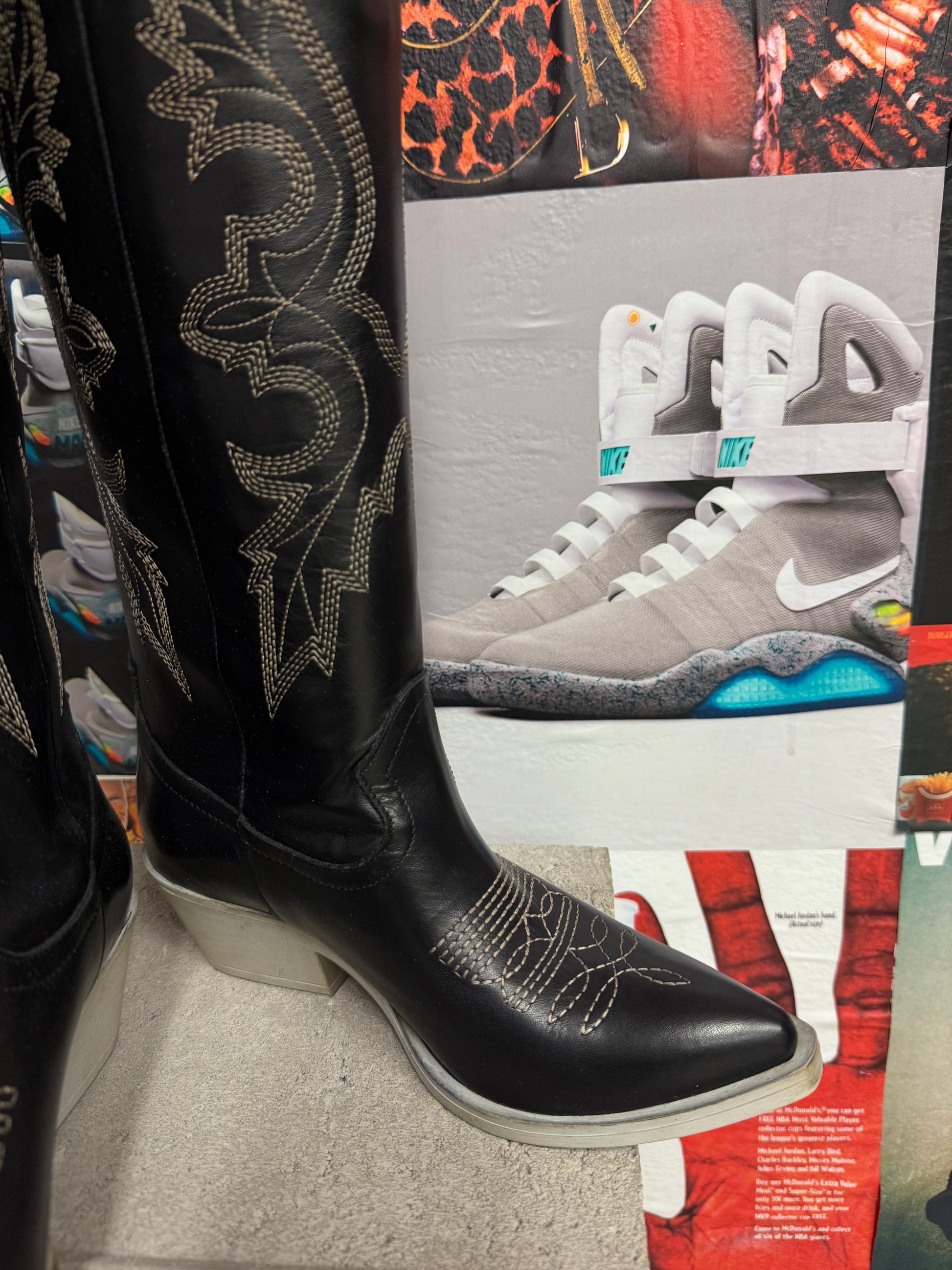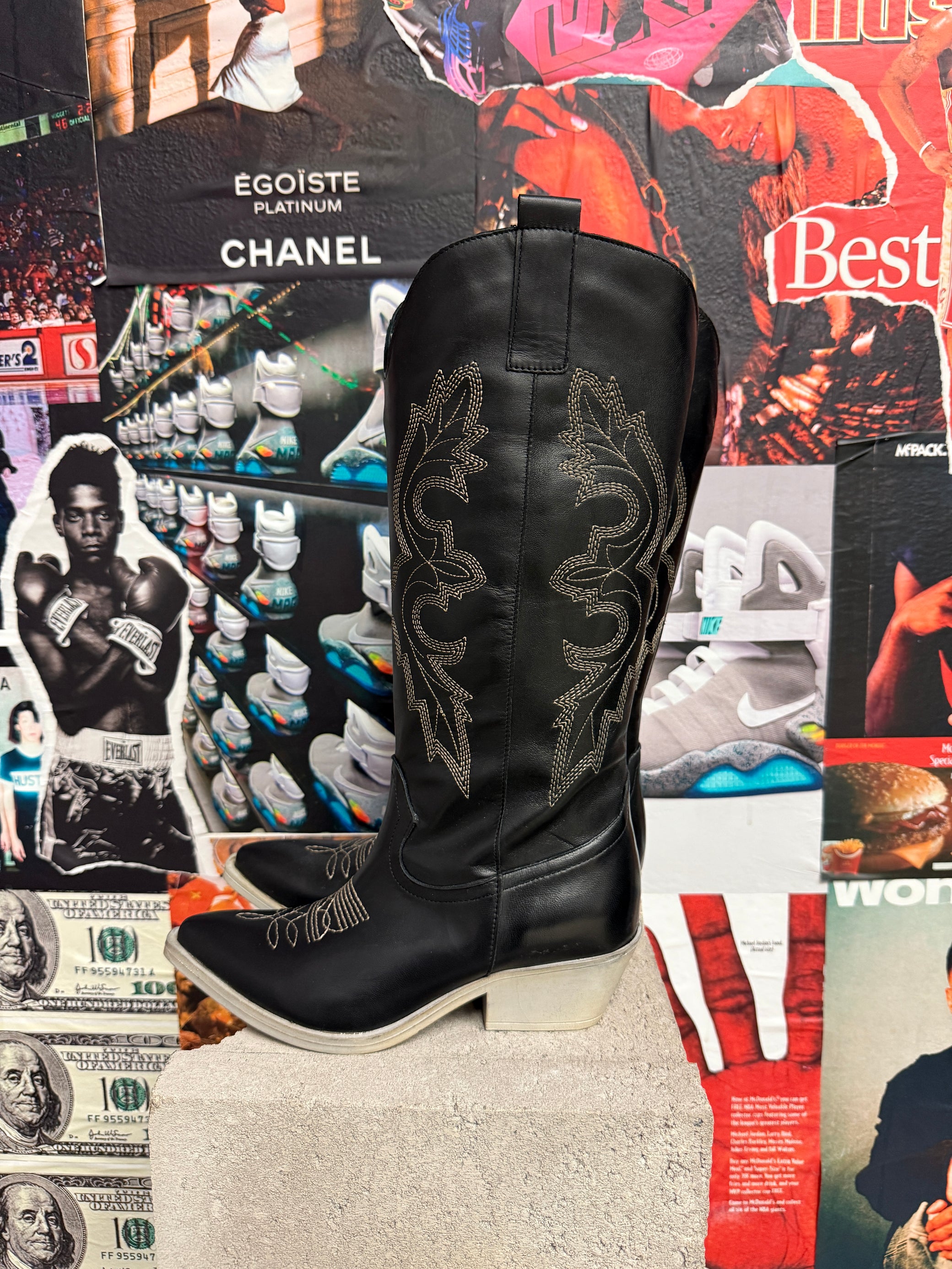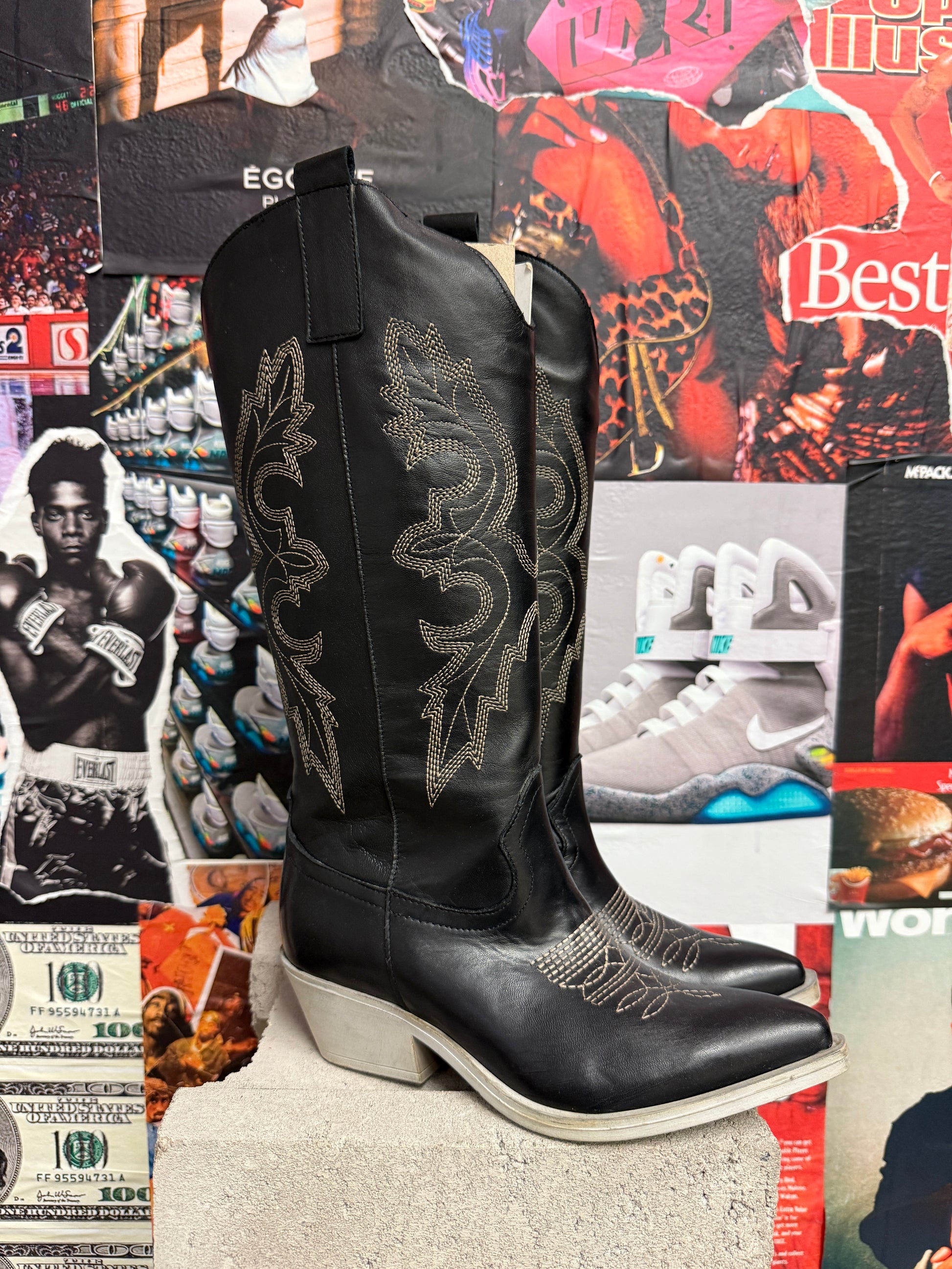 (37) Nila&Nila kovbojské kozačky černé s béžovým prošíváním