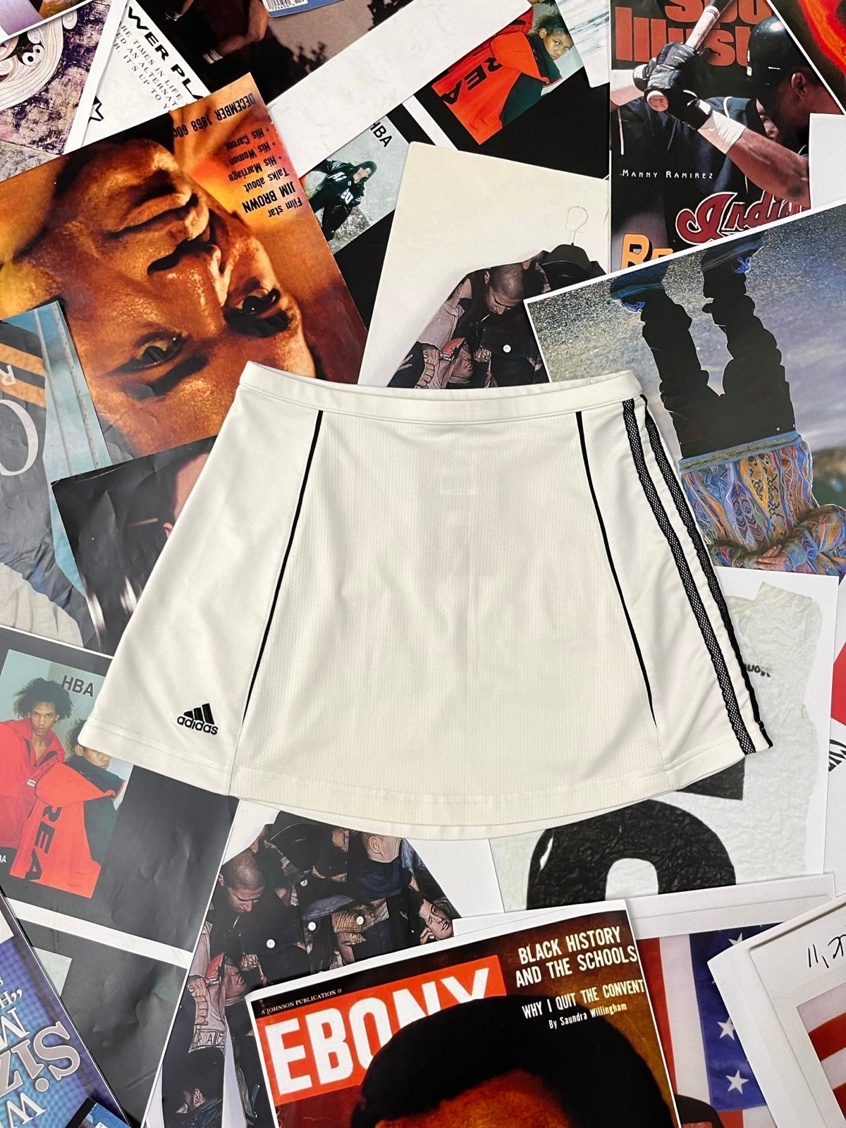 (L) Adidas SUKNĚ bílá tenisová s černými proužky