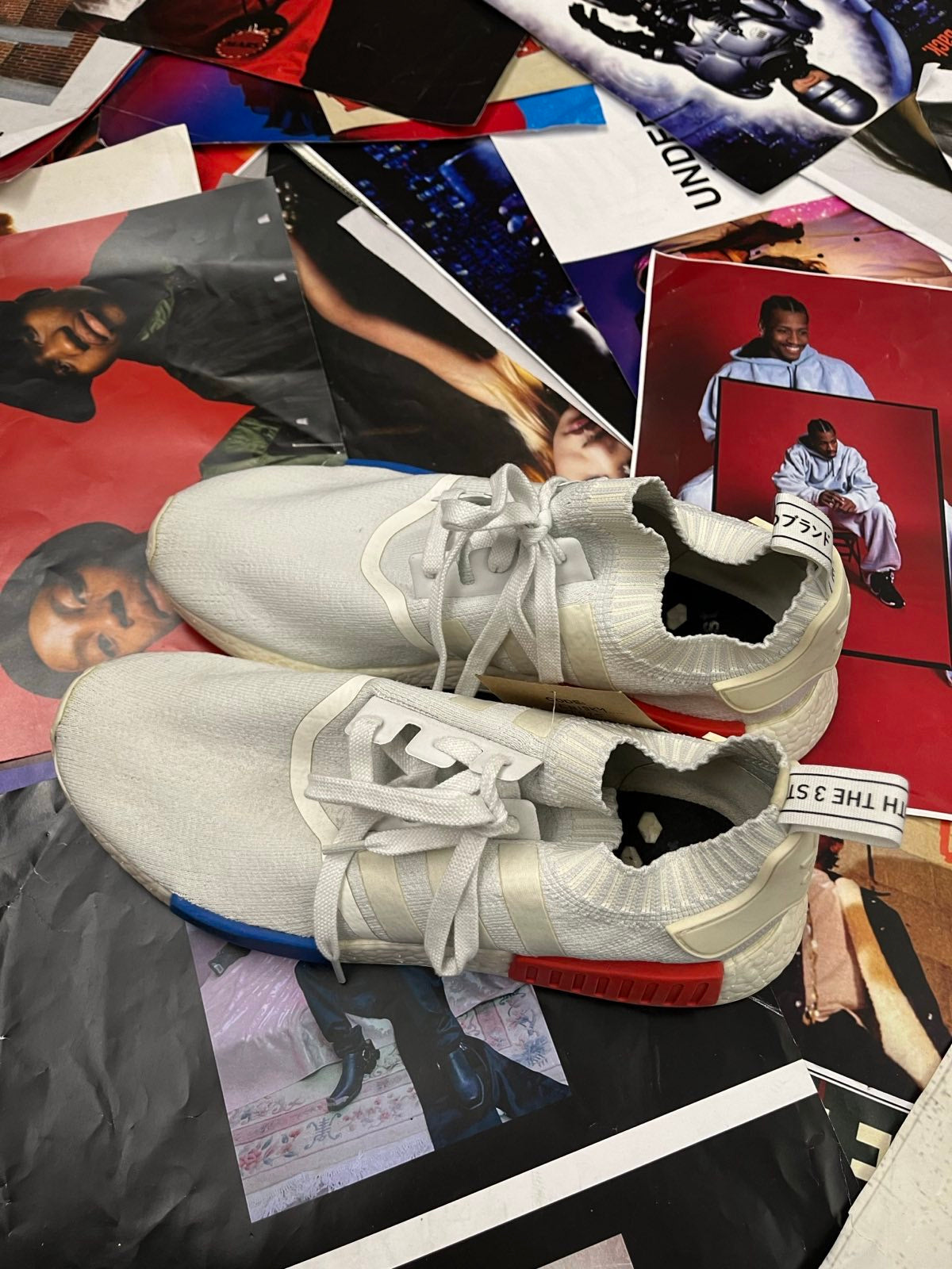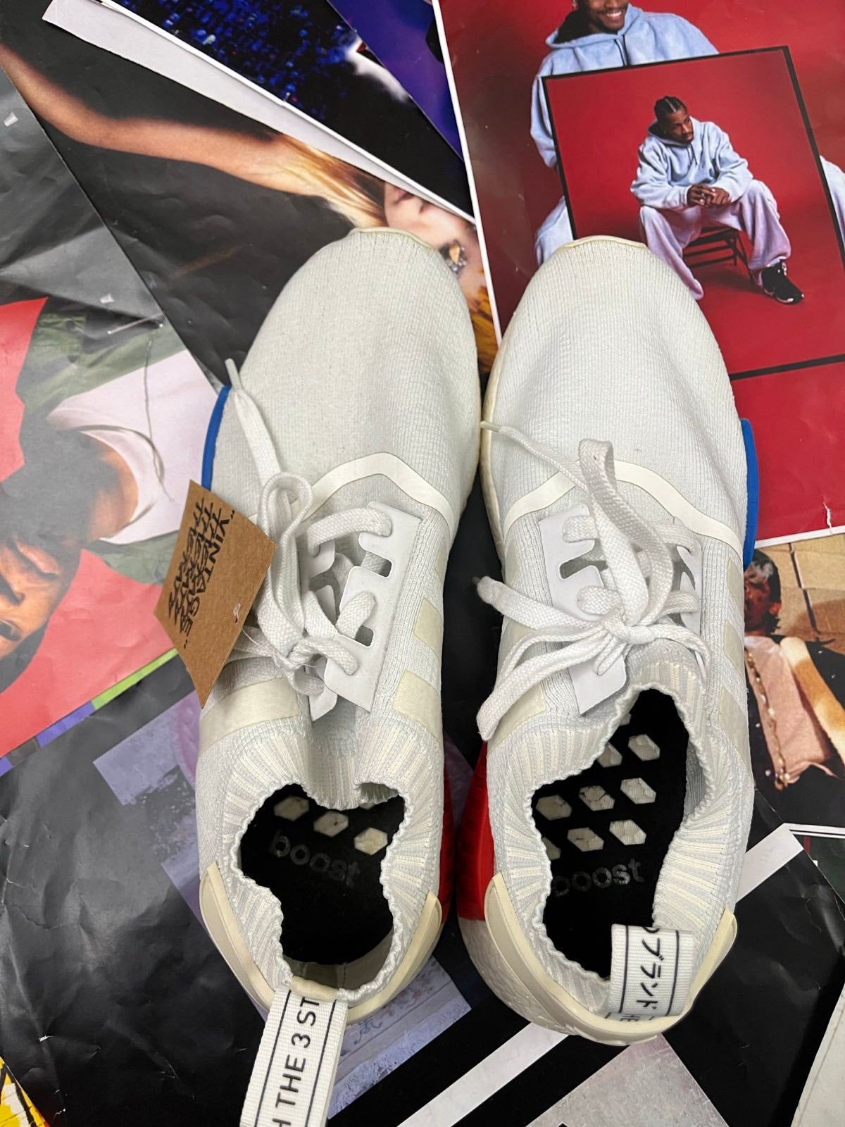 (46,5) Adidas boty bílé NMD Runner PK s bílo červenou podrážkou