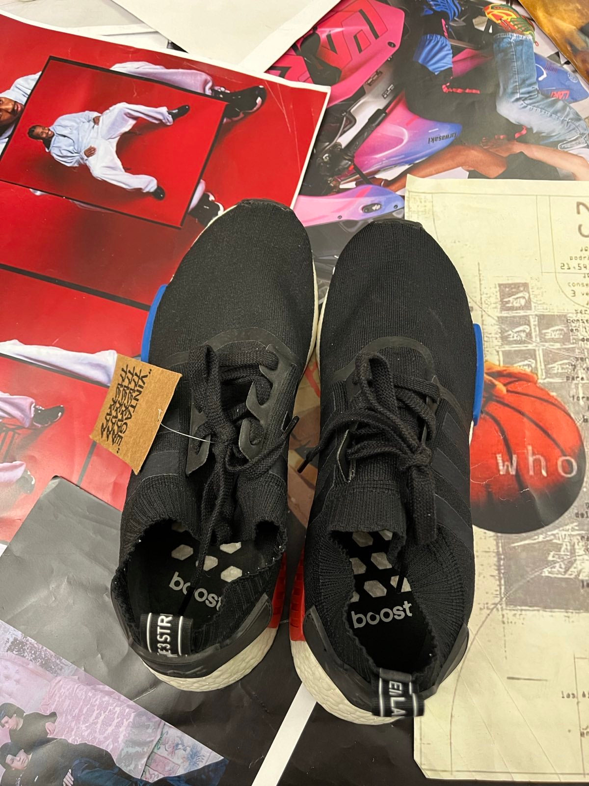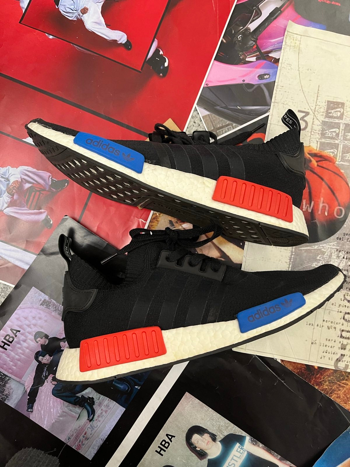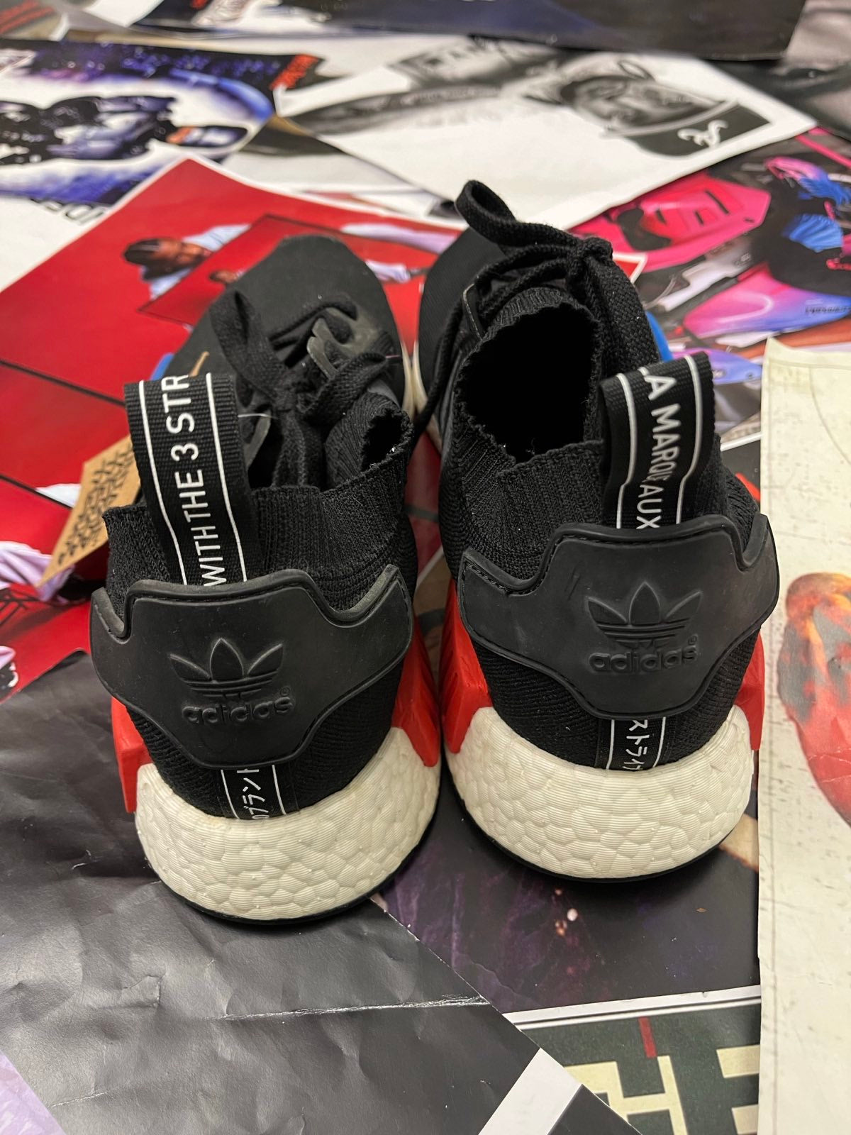 (47) Adidas boty černé NMD_R1 PK s bílo modro červenou podrážkou