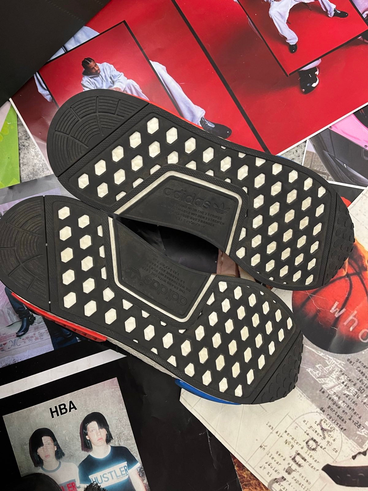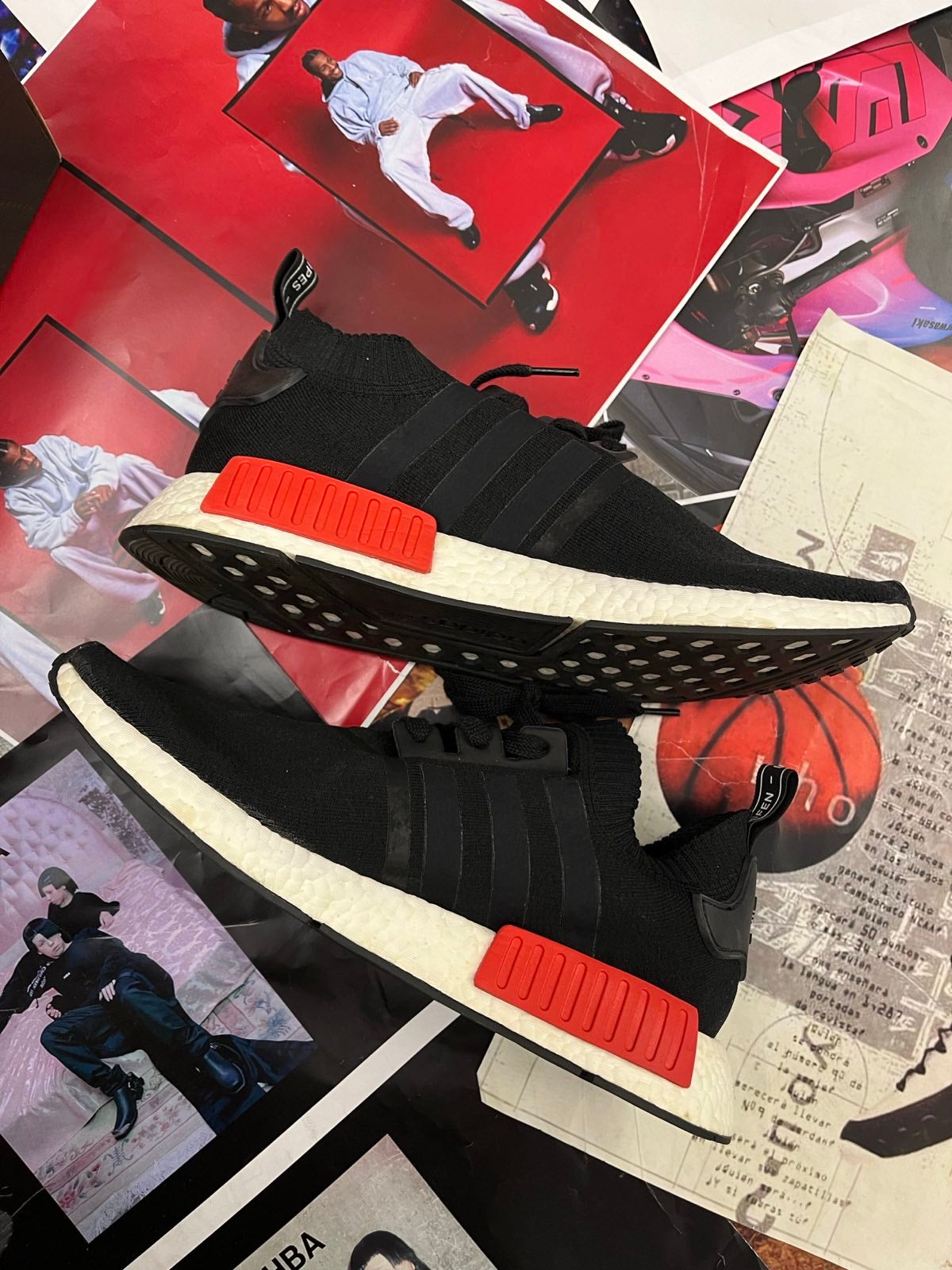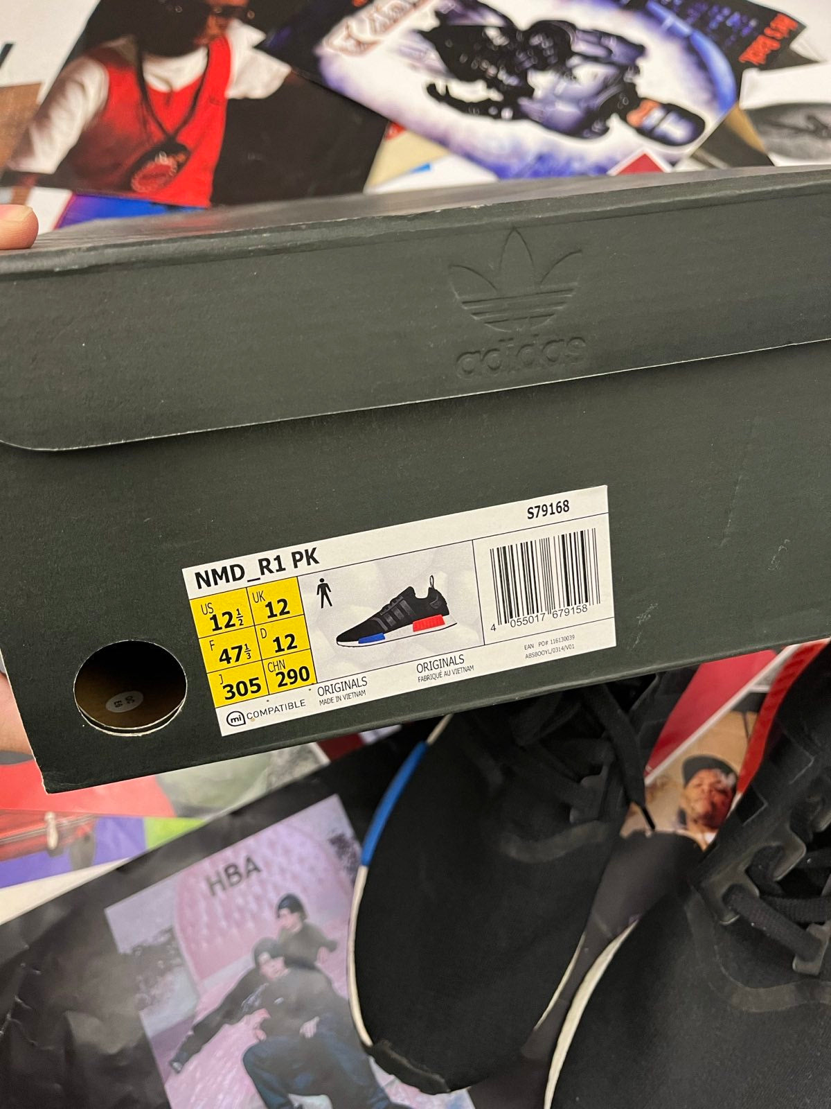 (47) Adidas boty černé NMD_R1 PK s bílo modro červenou podrážkou