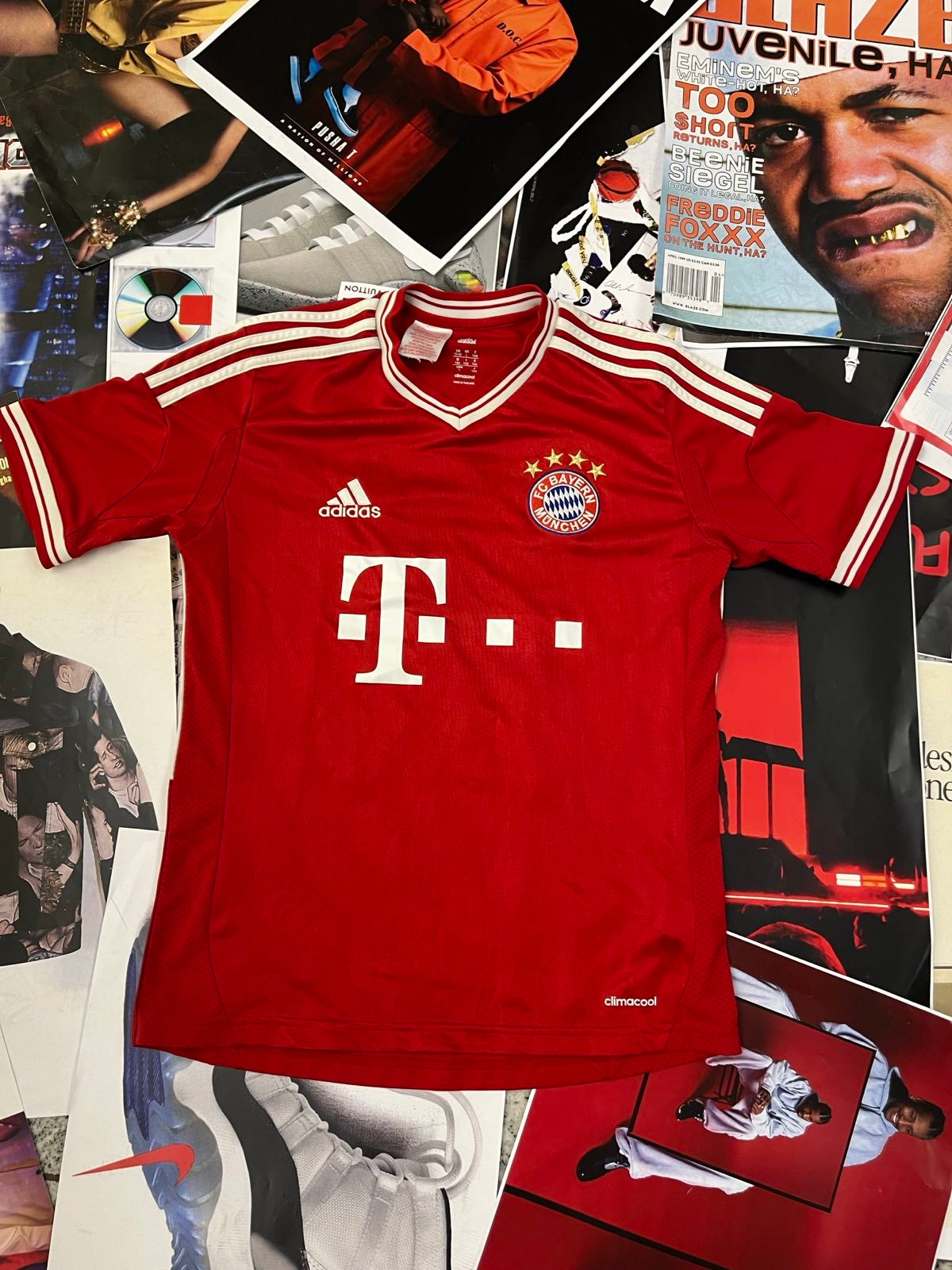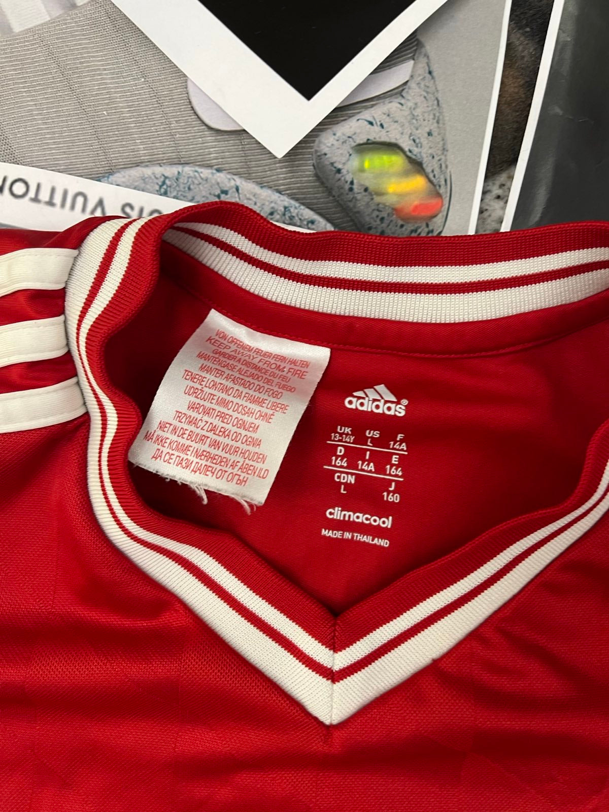 (L) Adidas x FC Bayern Mnichov DRES červený s bílým nápisem T-mobile