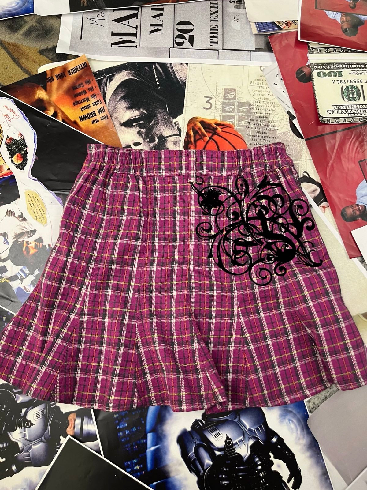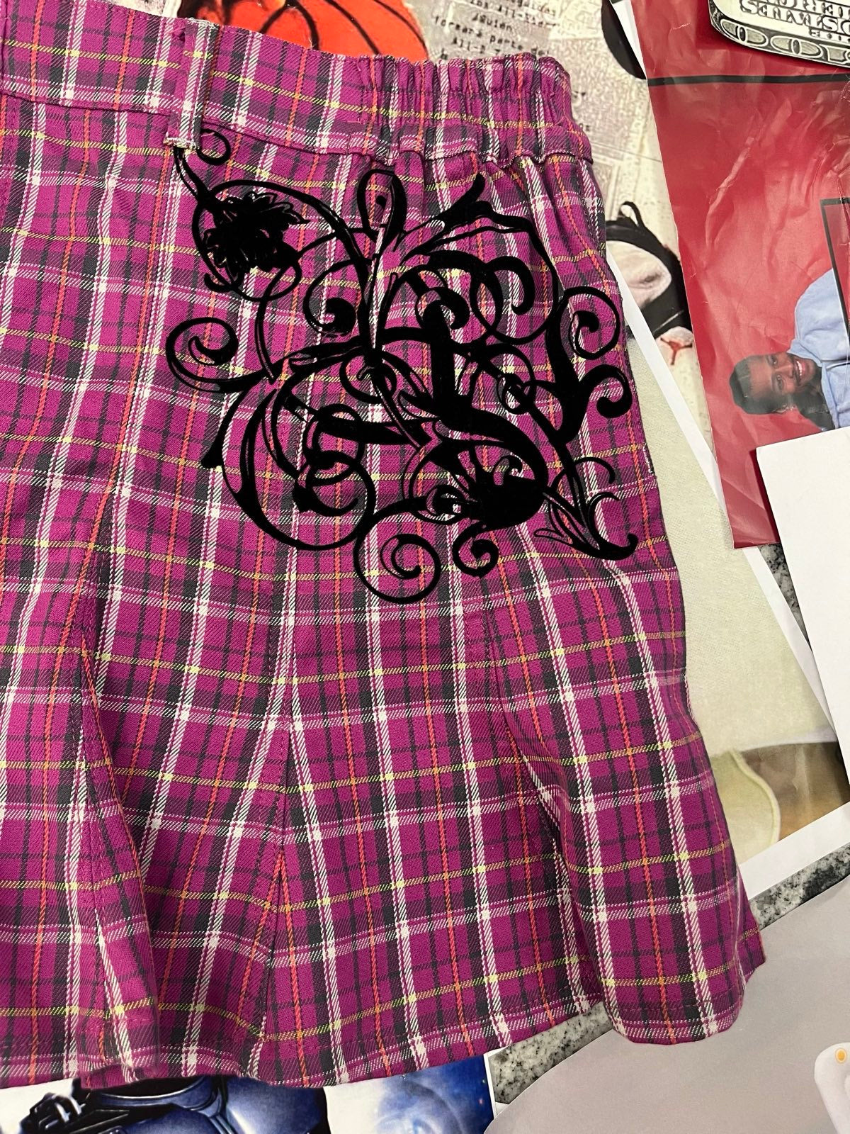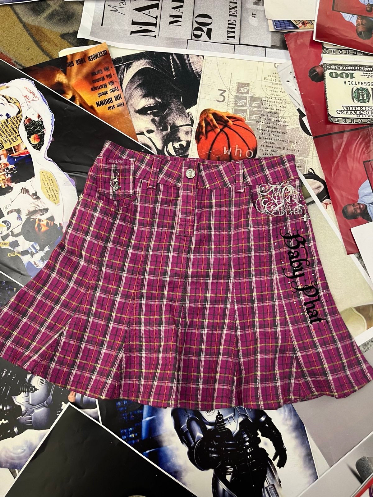 (M) Baby Phat sukně fialová károvaná skládaná