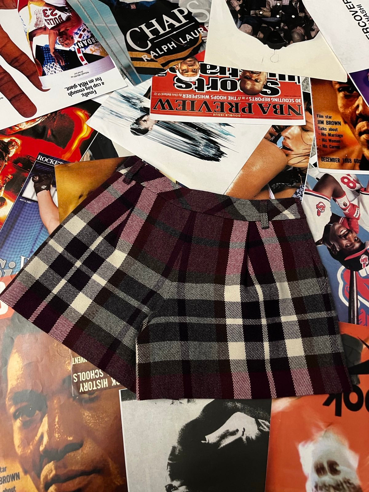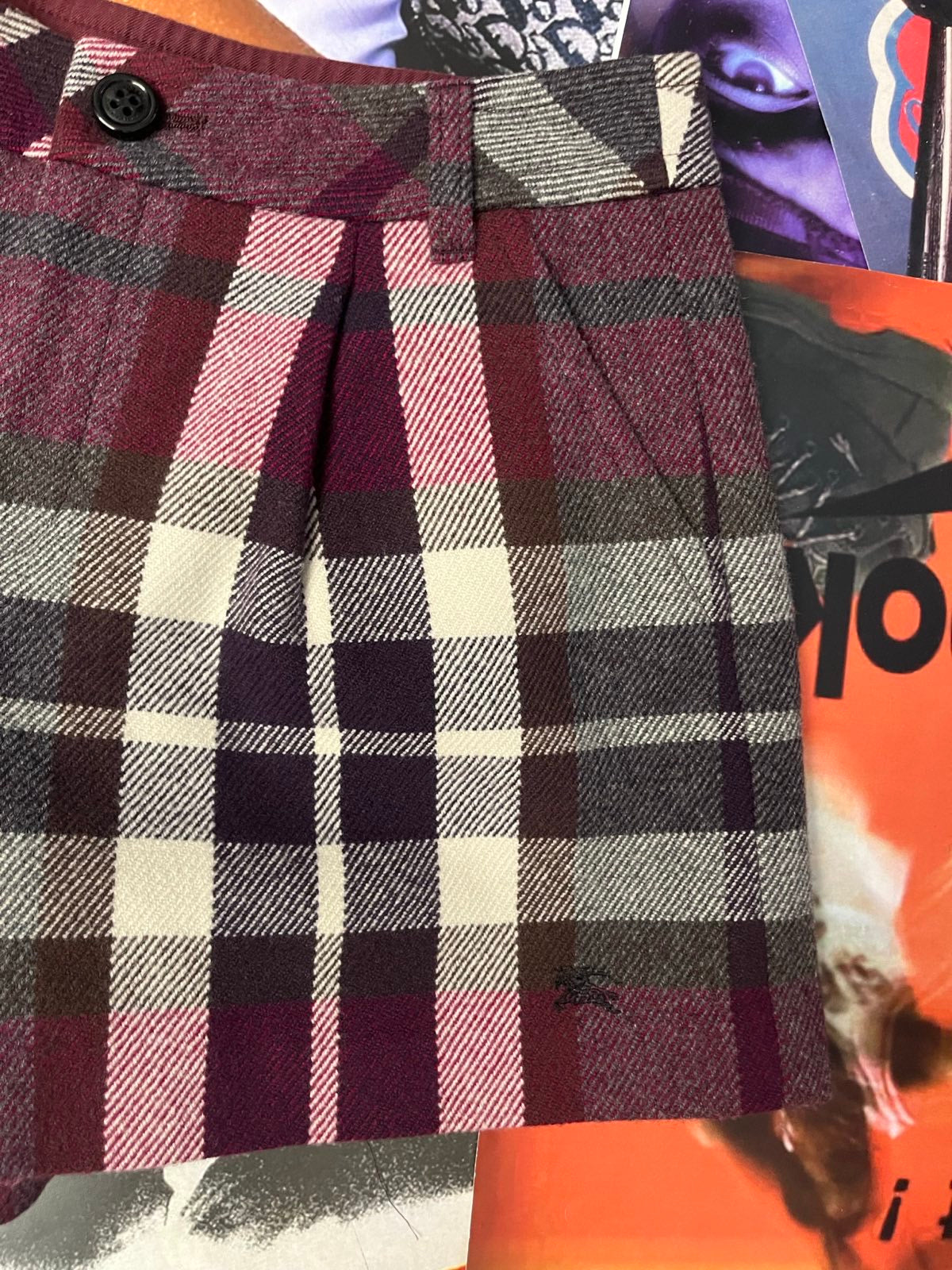 Burberry London Blue Label ŠORTKY vlněné fialové kárované M