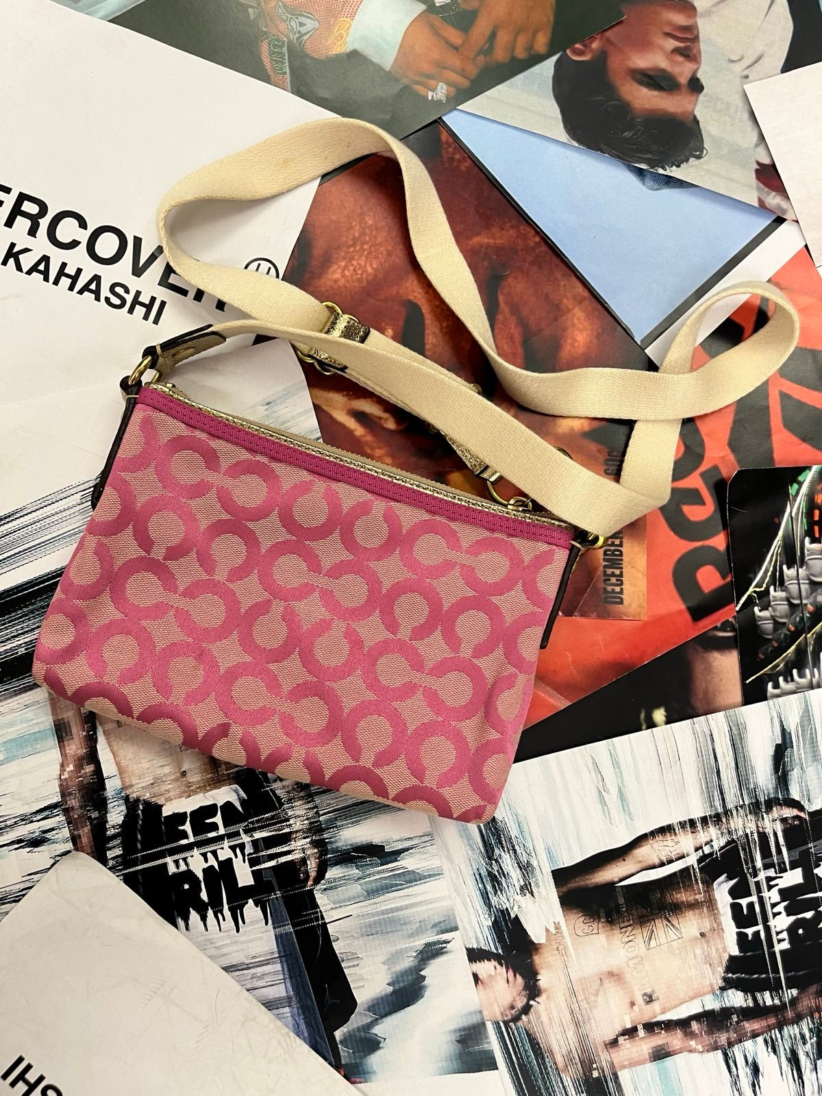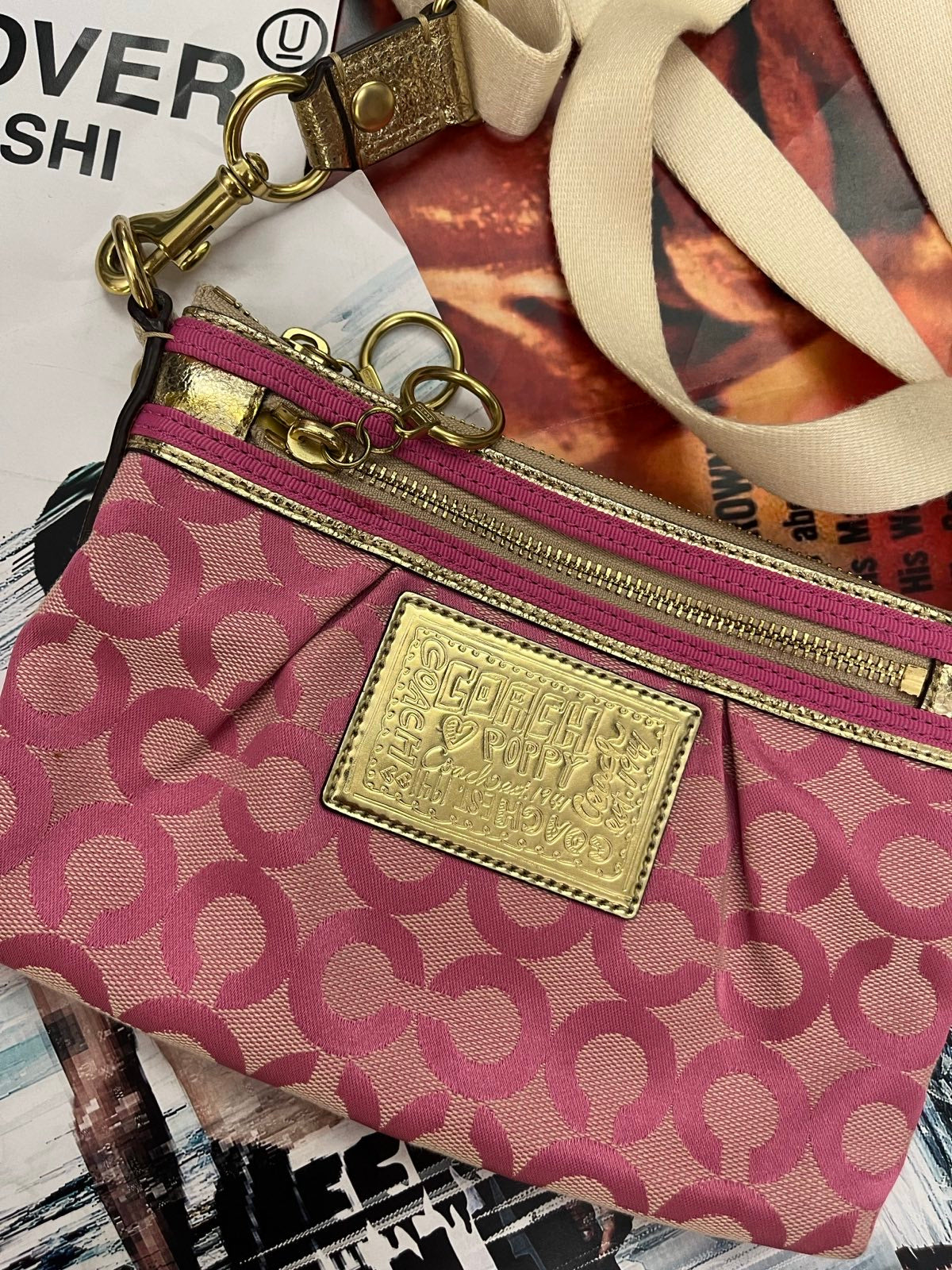 Coach Poppy kabelka malá růžová s monogramem a se zlatými detaily