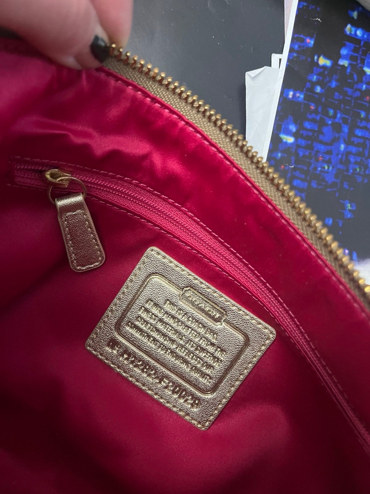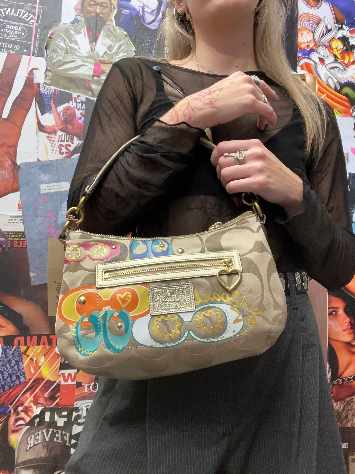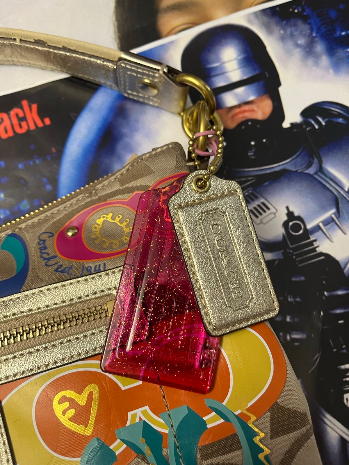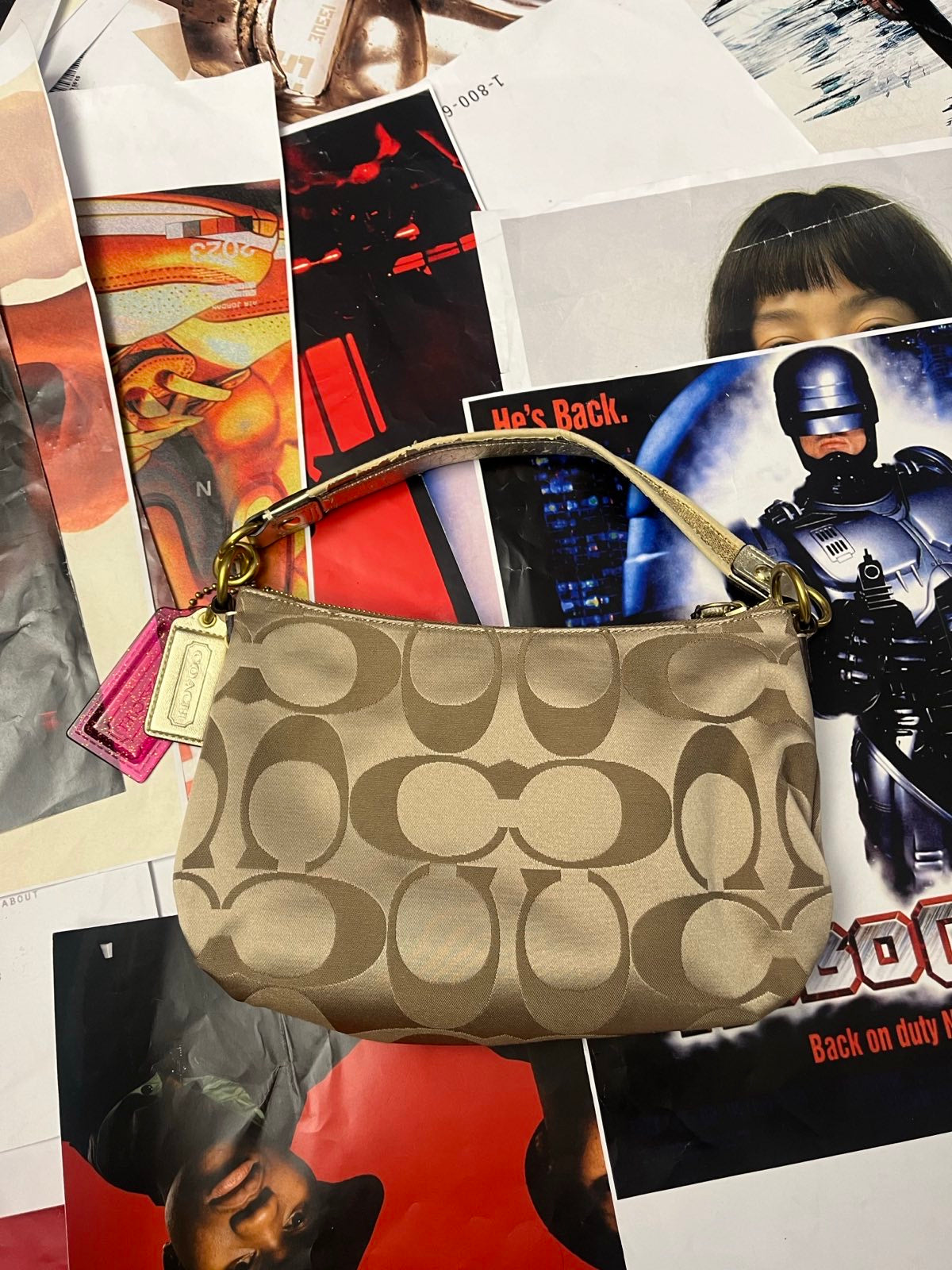 COACH kabelka malá zlatá s barevnou grafikou