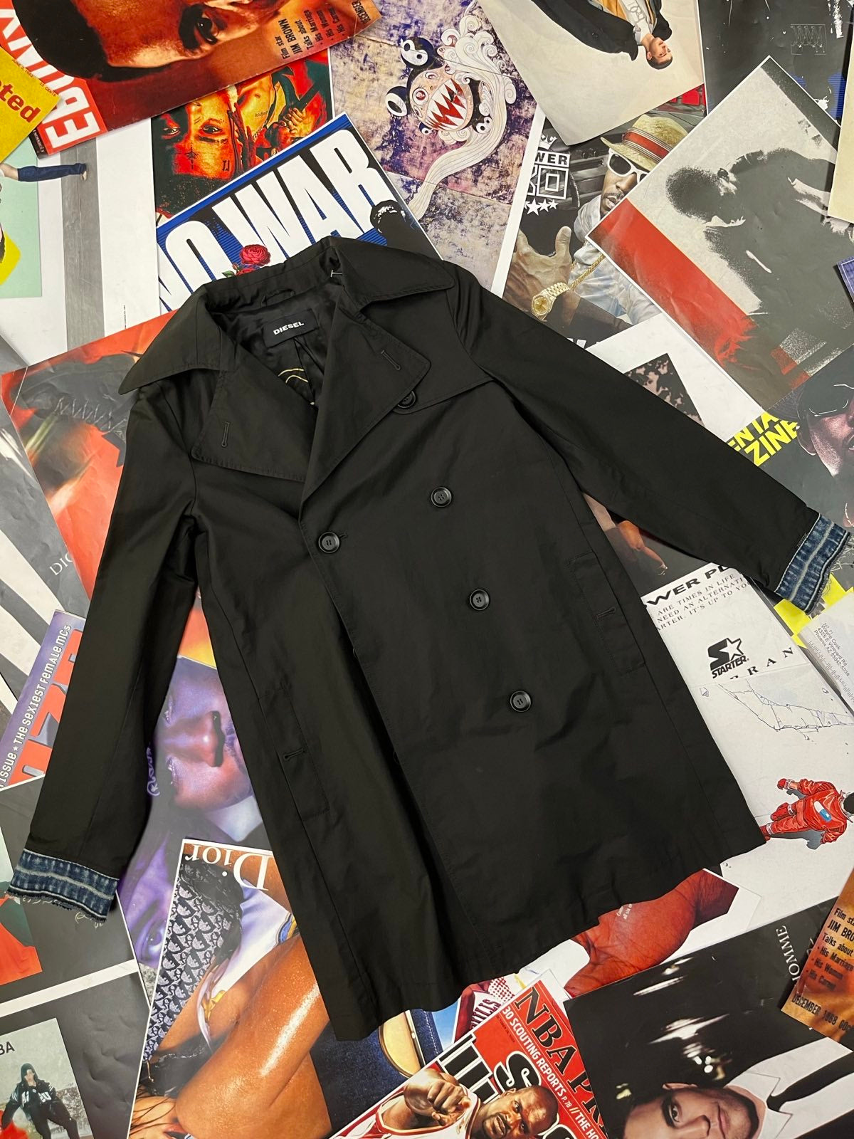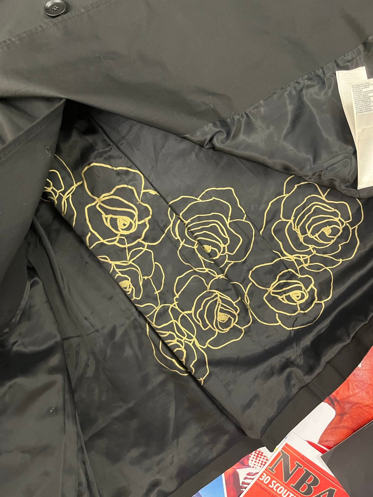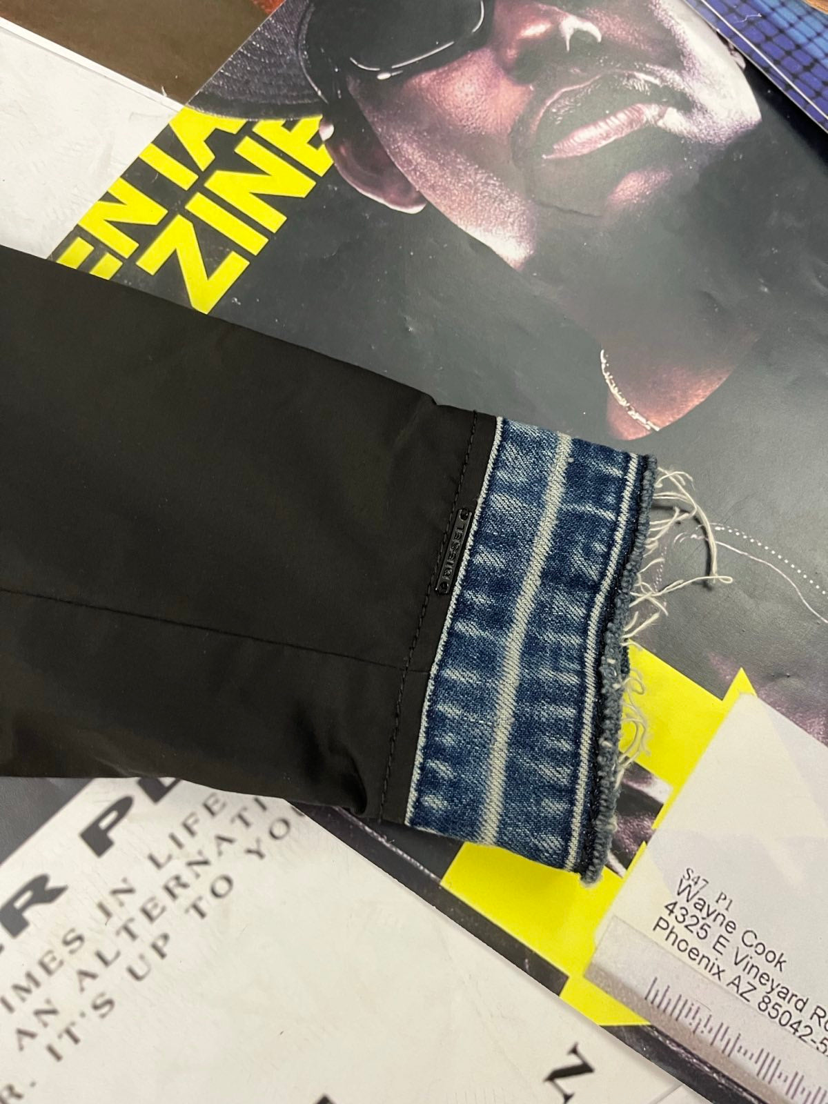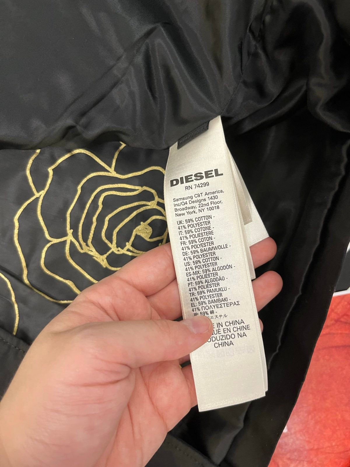 (S) Diesel kabát černý zakončení rukávu džínové se zipem, uvnitř zlaté růže