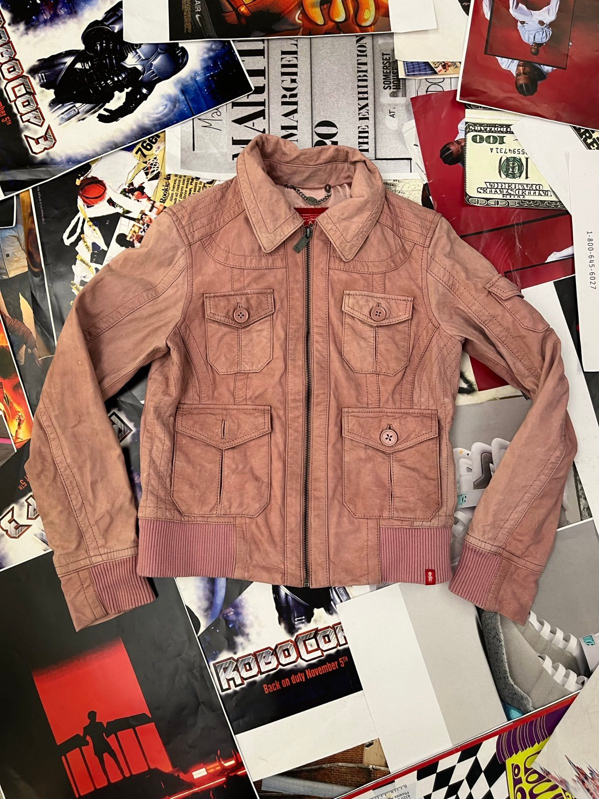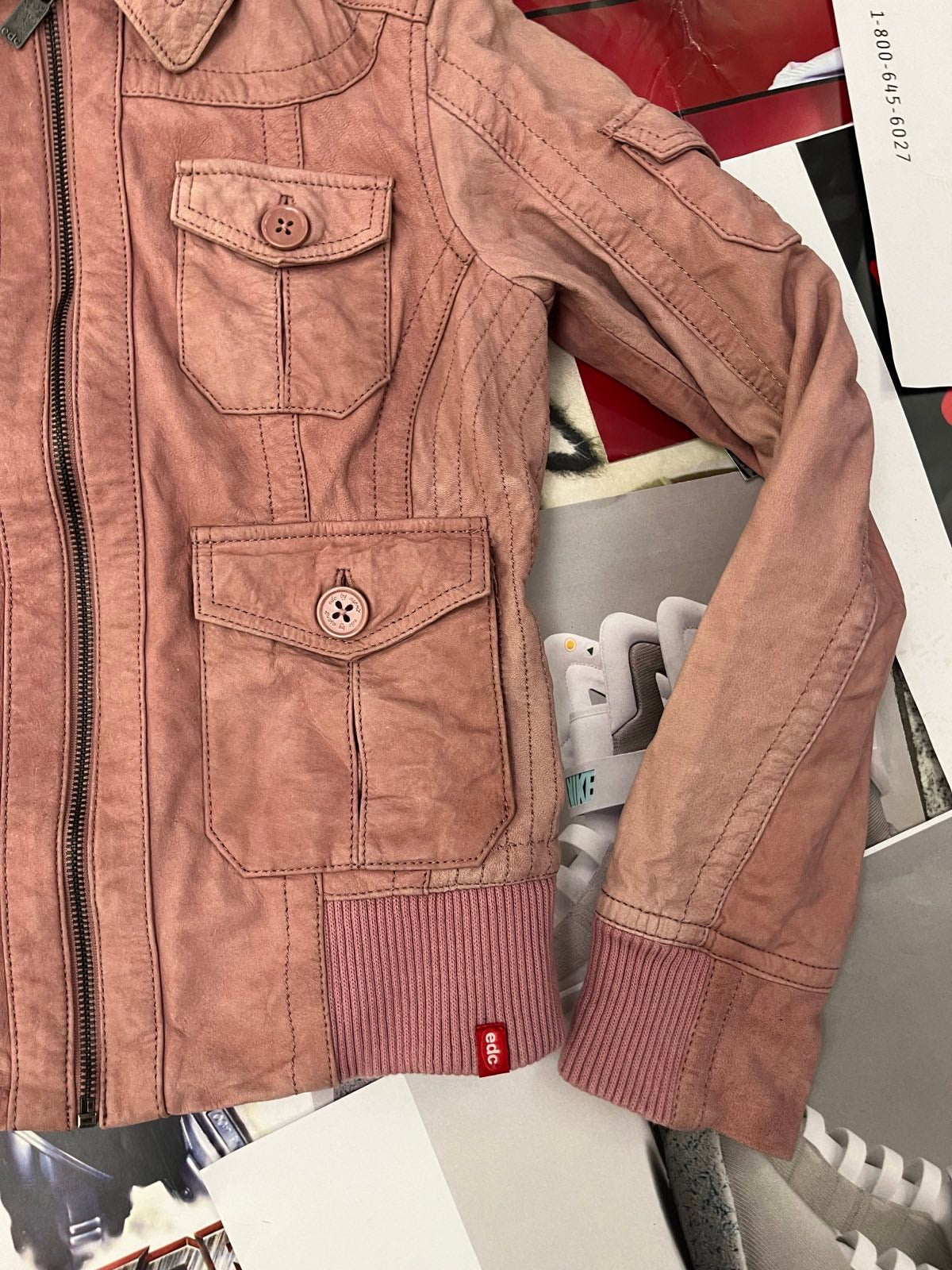 (M) Edc kožená bunda dámská růžová s více kapsama
