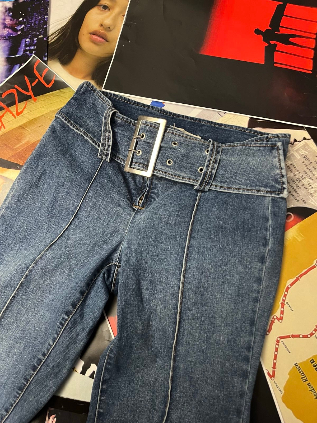 (M) Garage denim džíny dámské v pase velká přezka