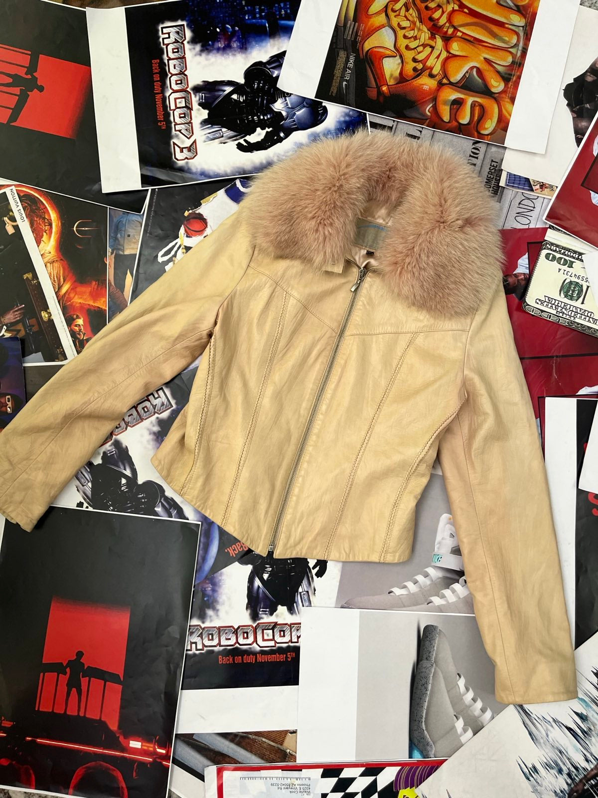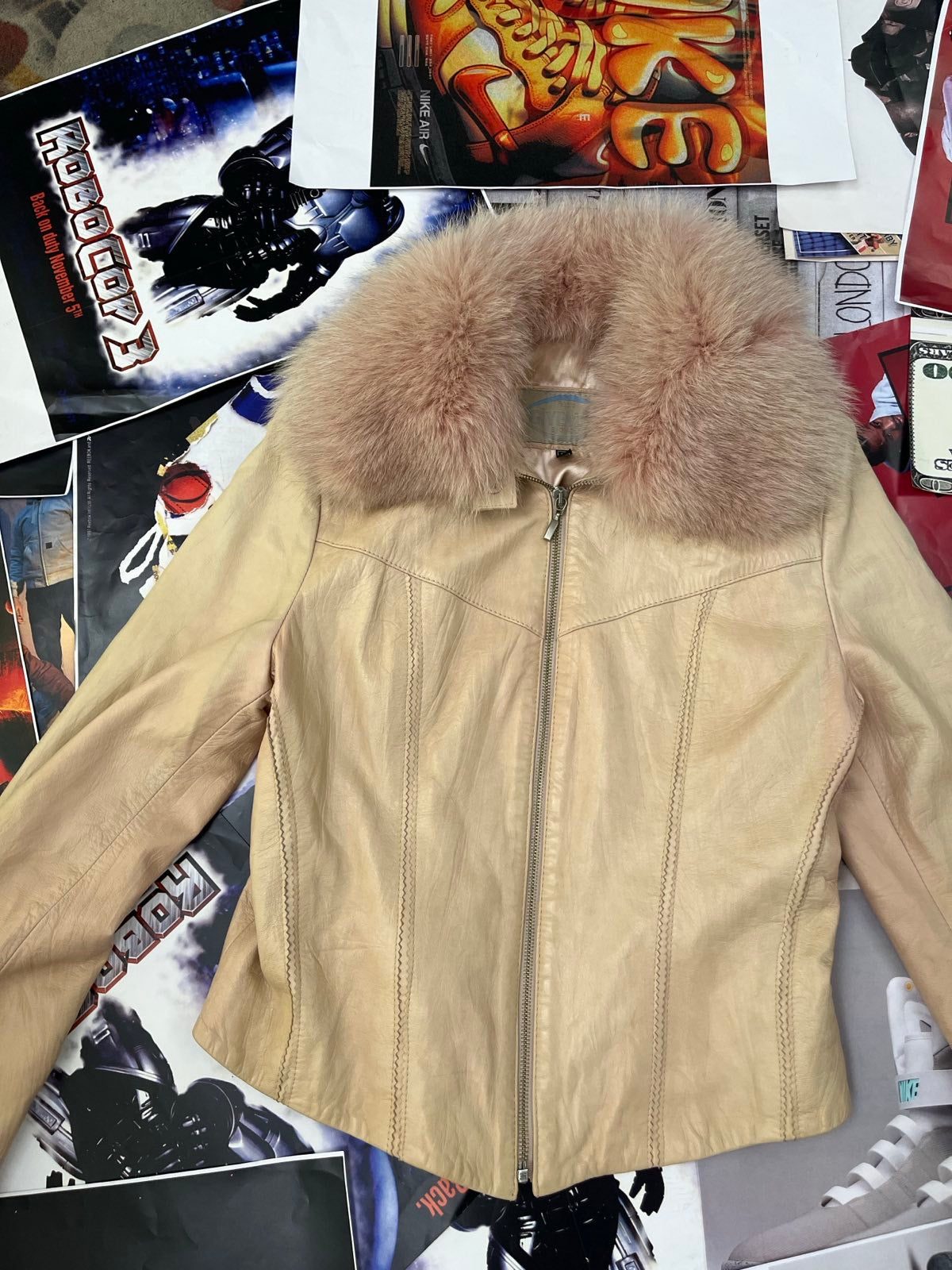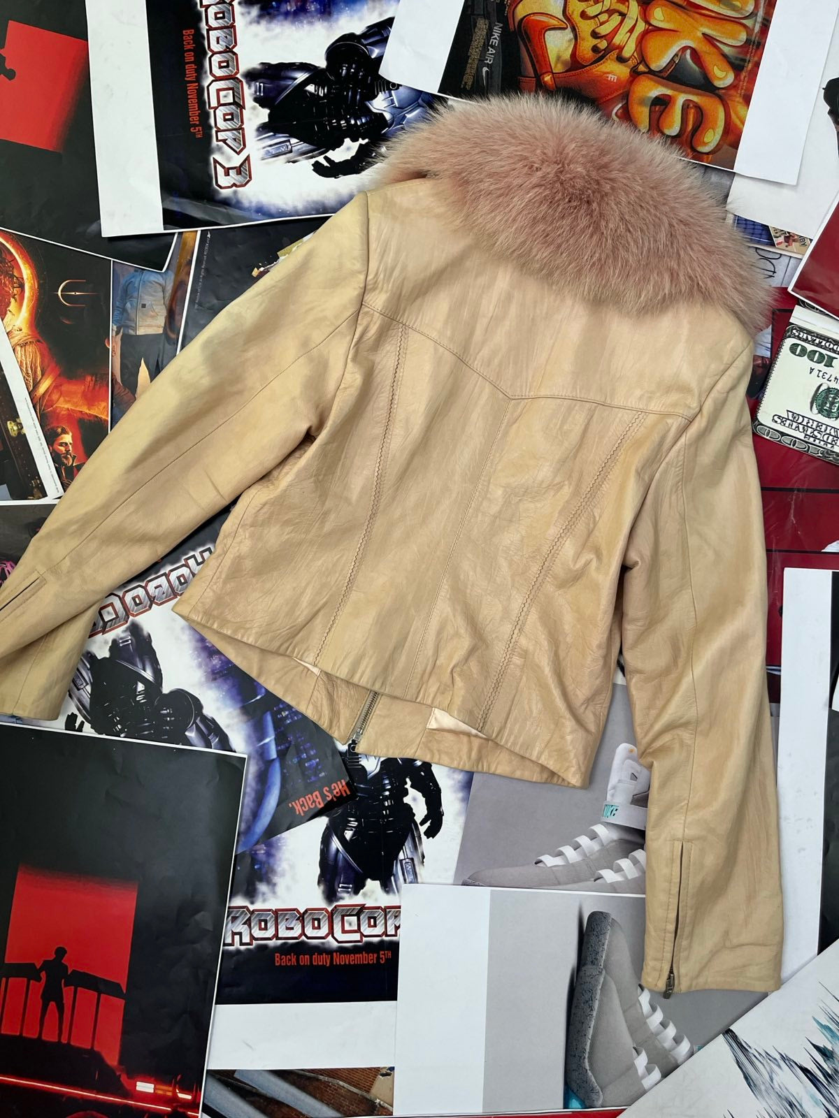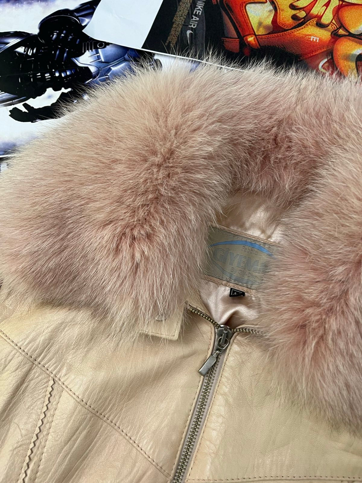 (M) Giyemmi kožená bunda dámská růžová s kožíškem kolem krku