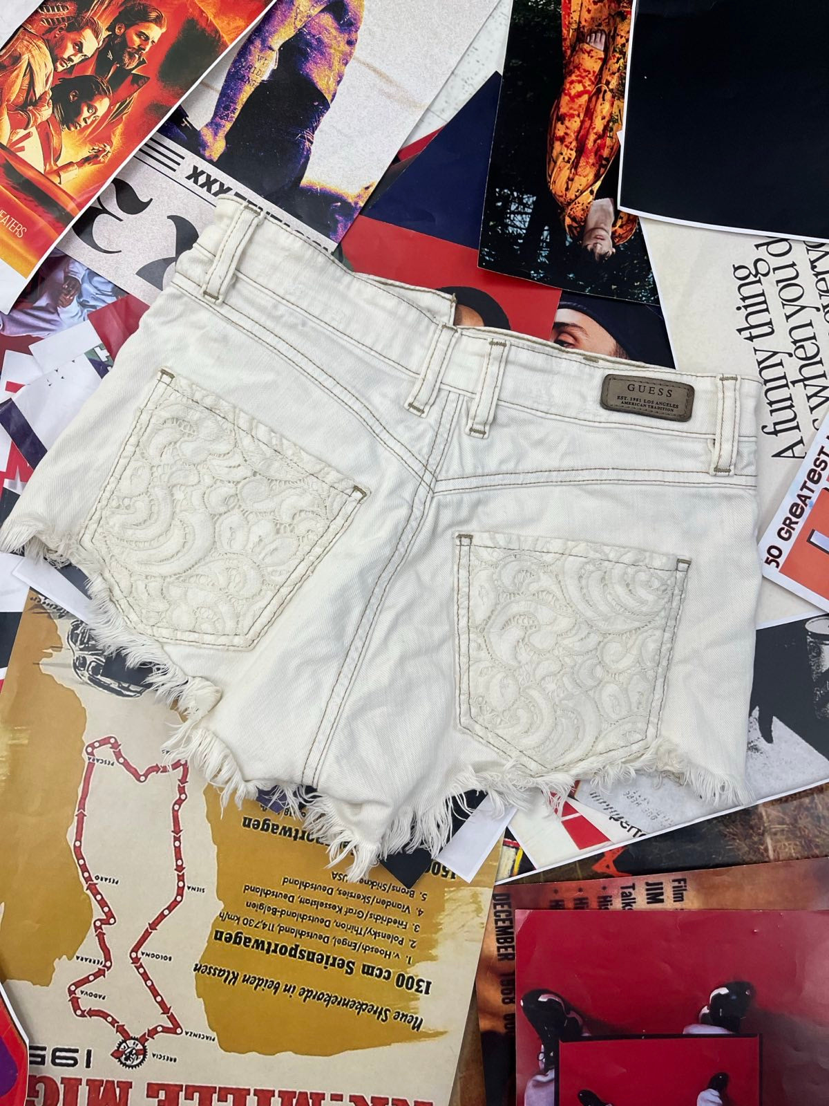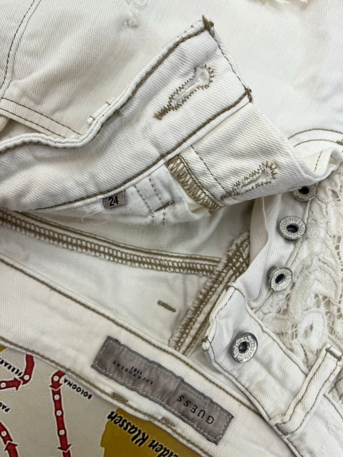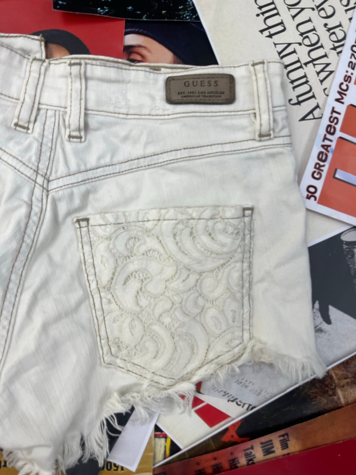 Guess KRAŤASY dámské bílé s krajkou na kapsách S
