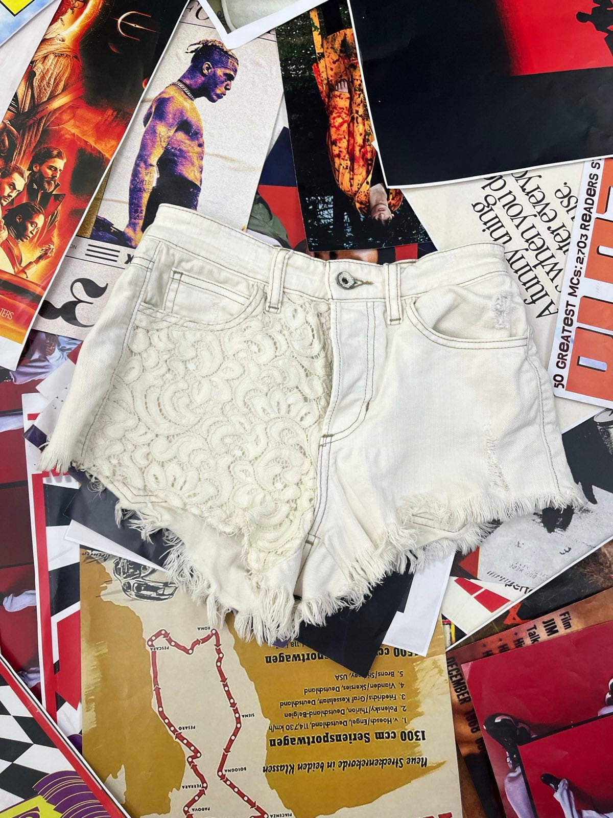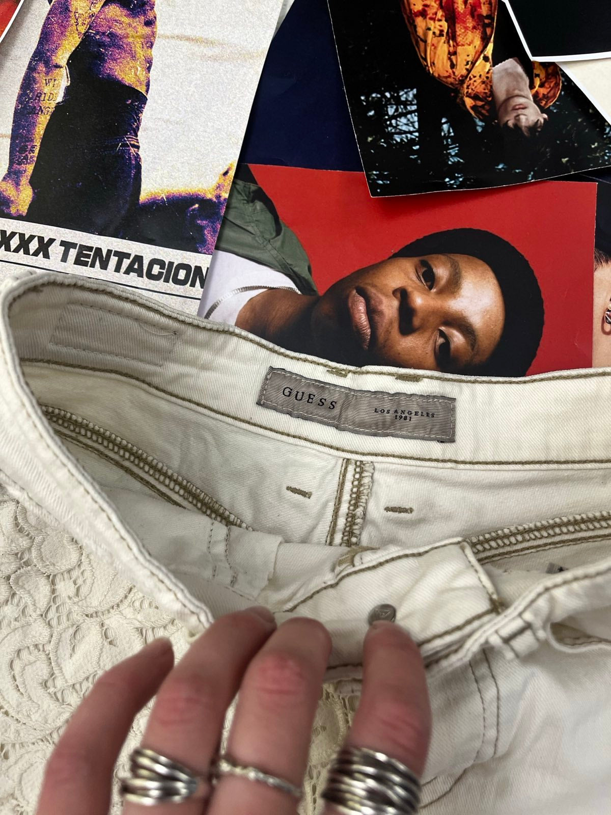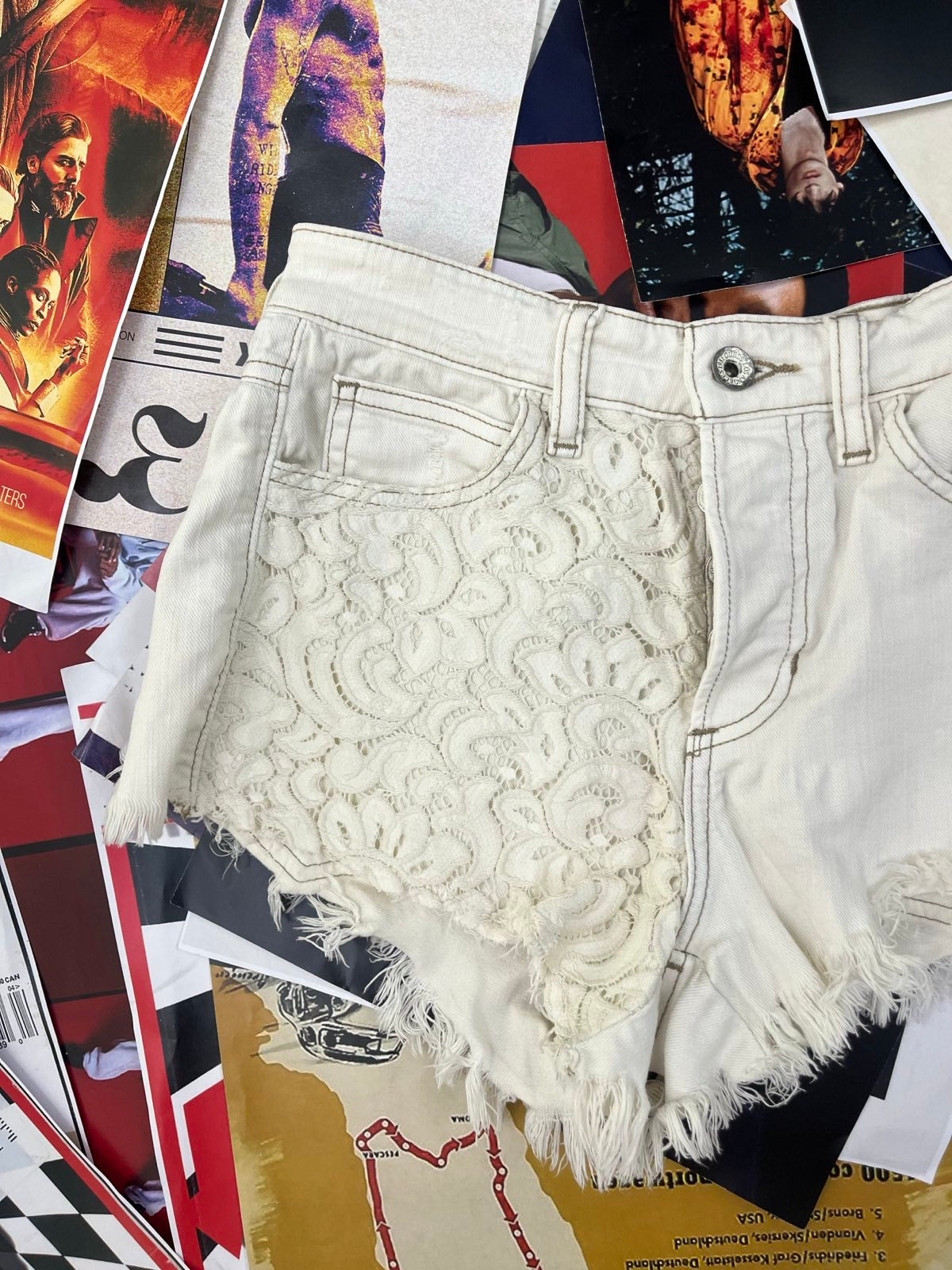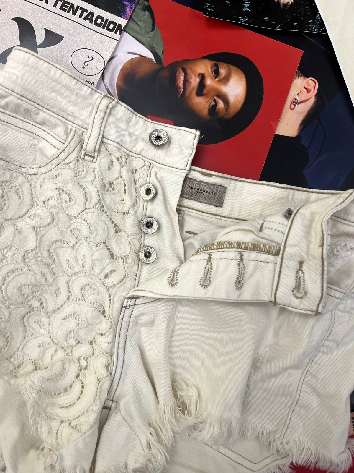 Guess KRAŤASY dámské bílé s krajkou na kapsách S