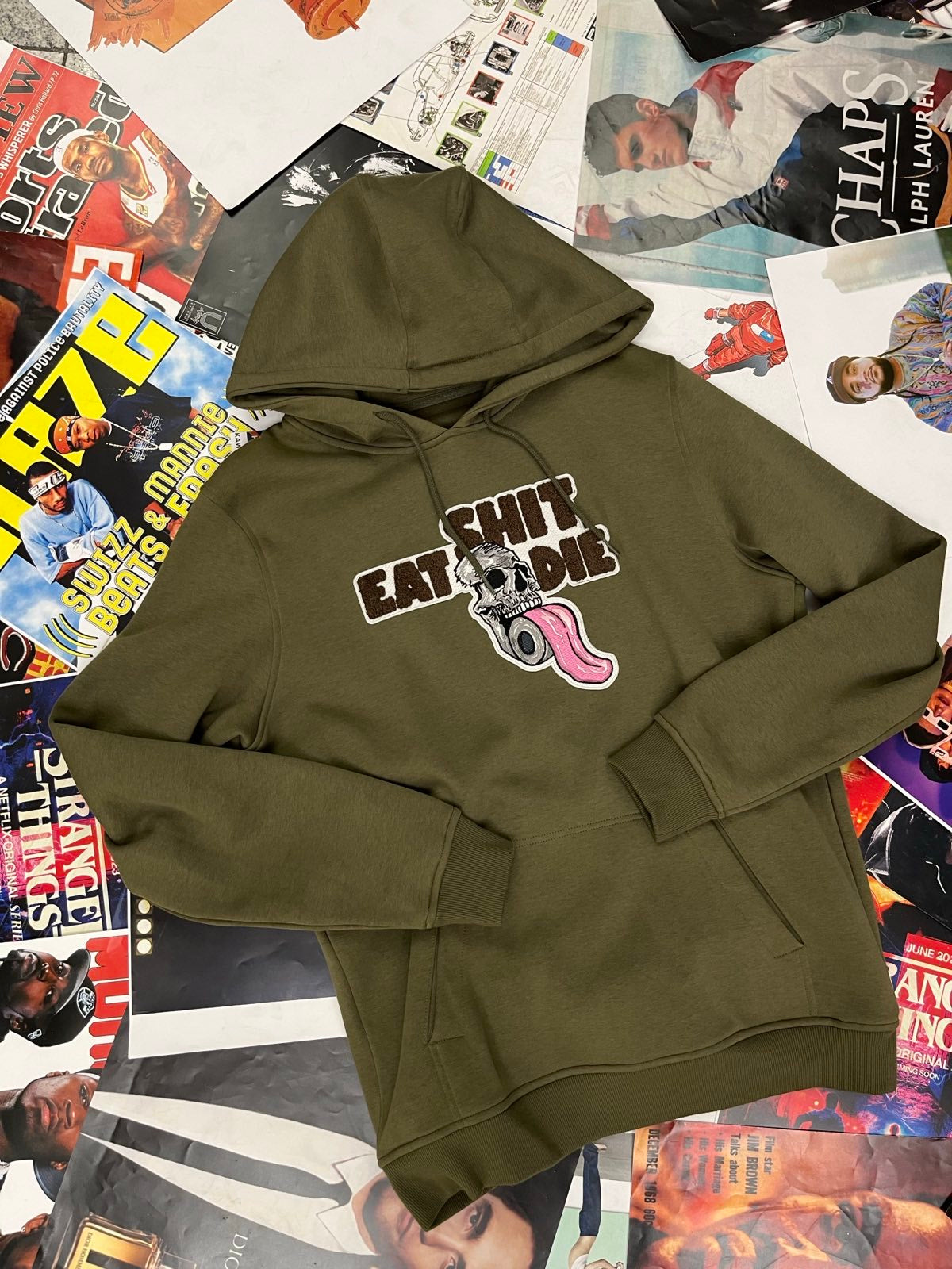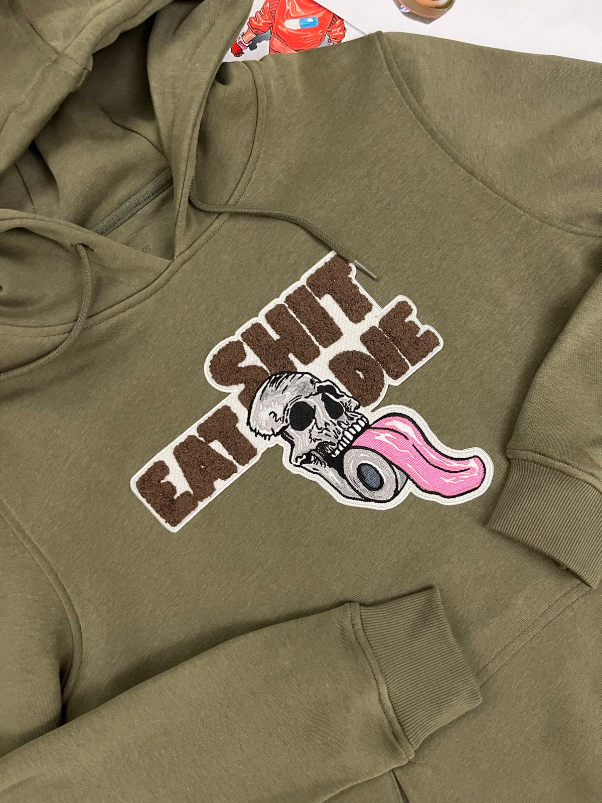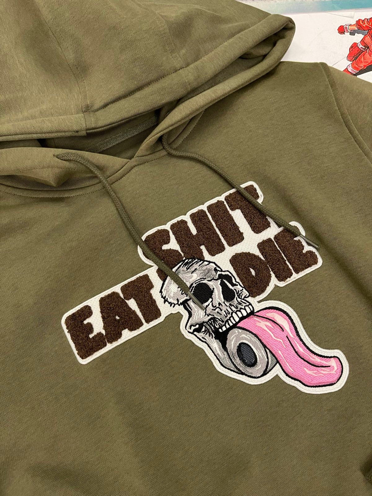 HOODIE shit eat die khaki S