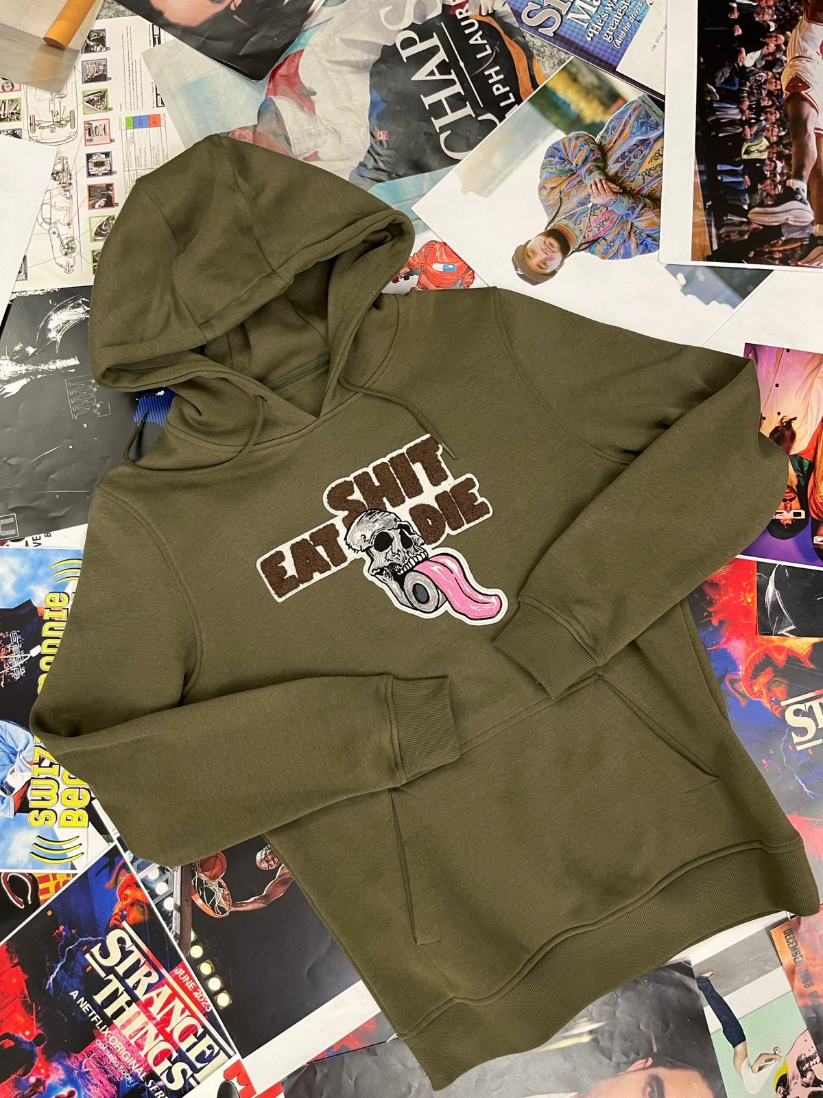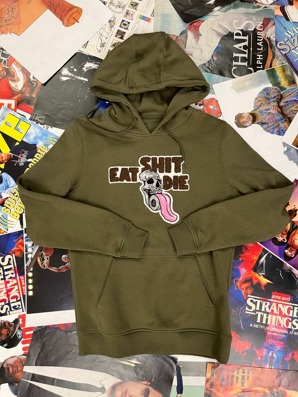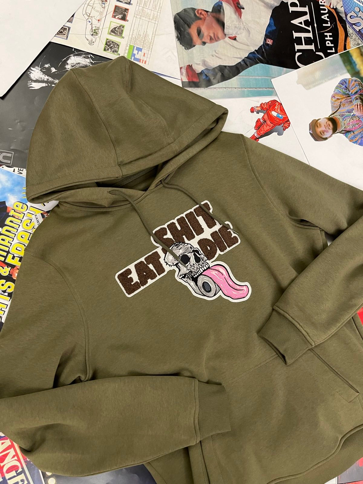HOODIE shit eat die khaki S
