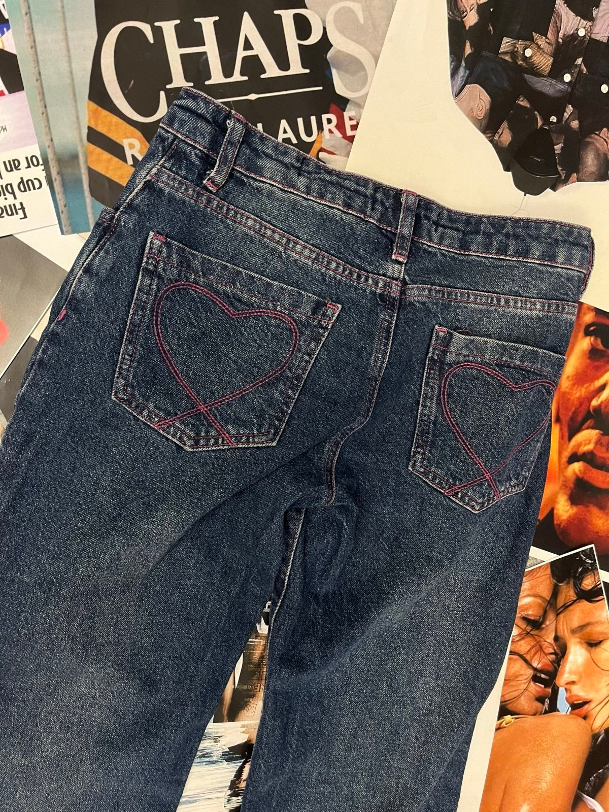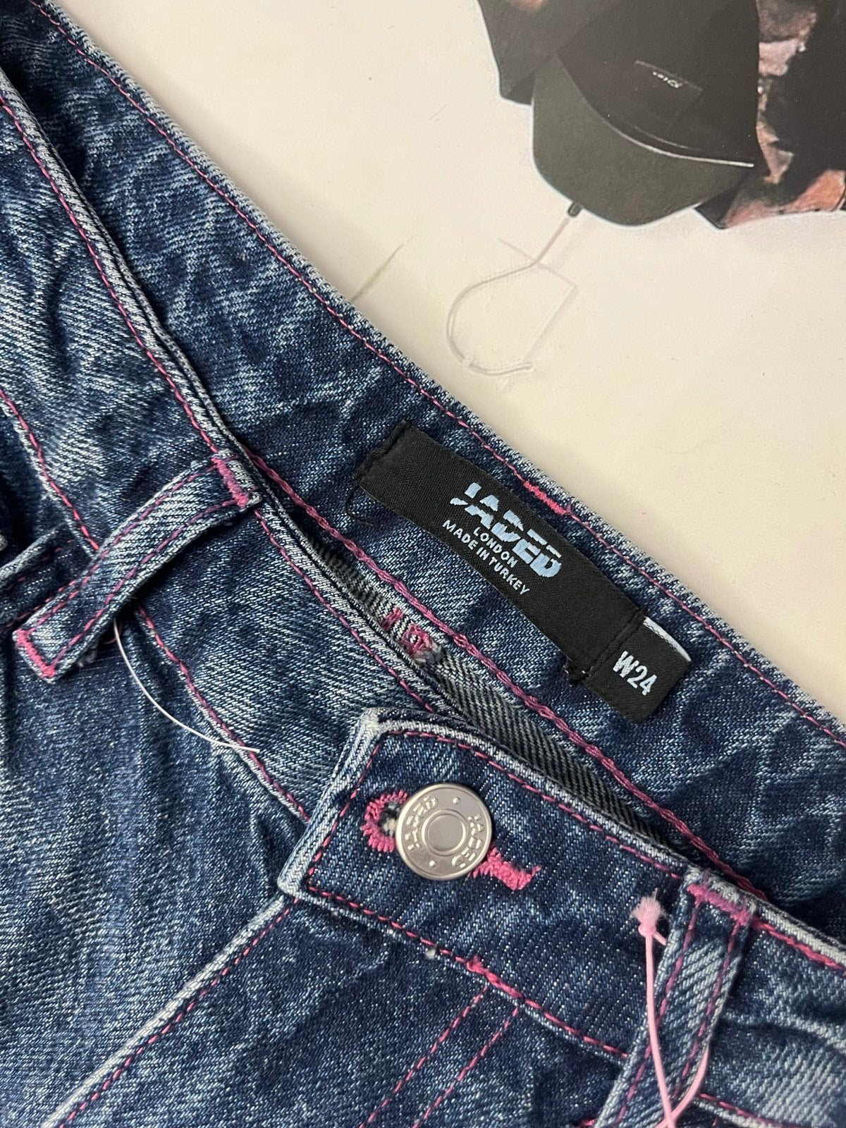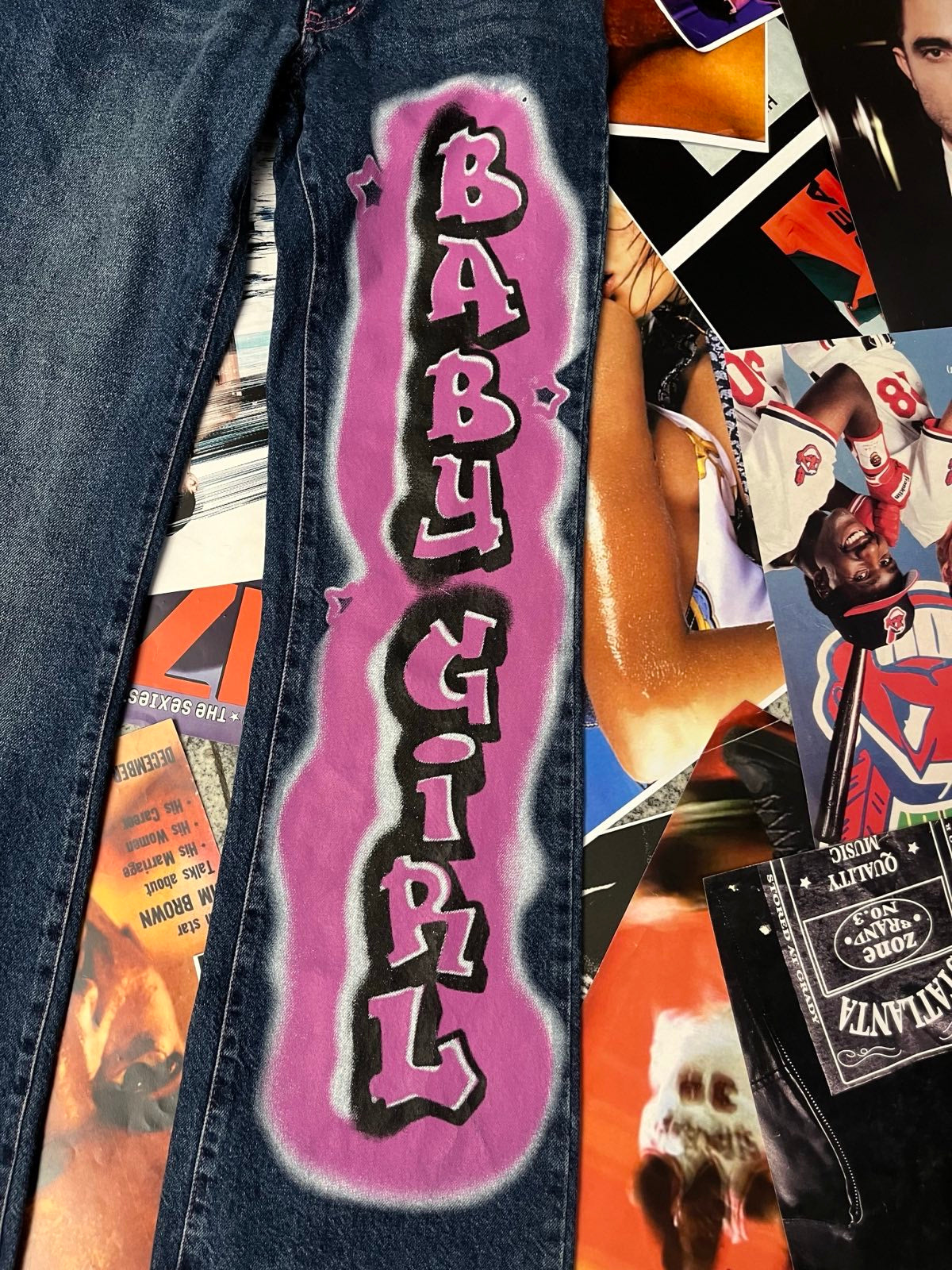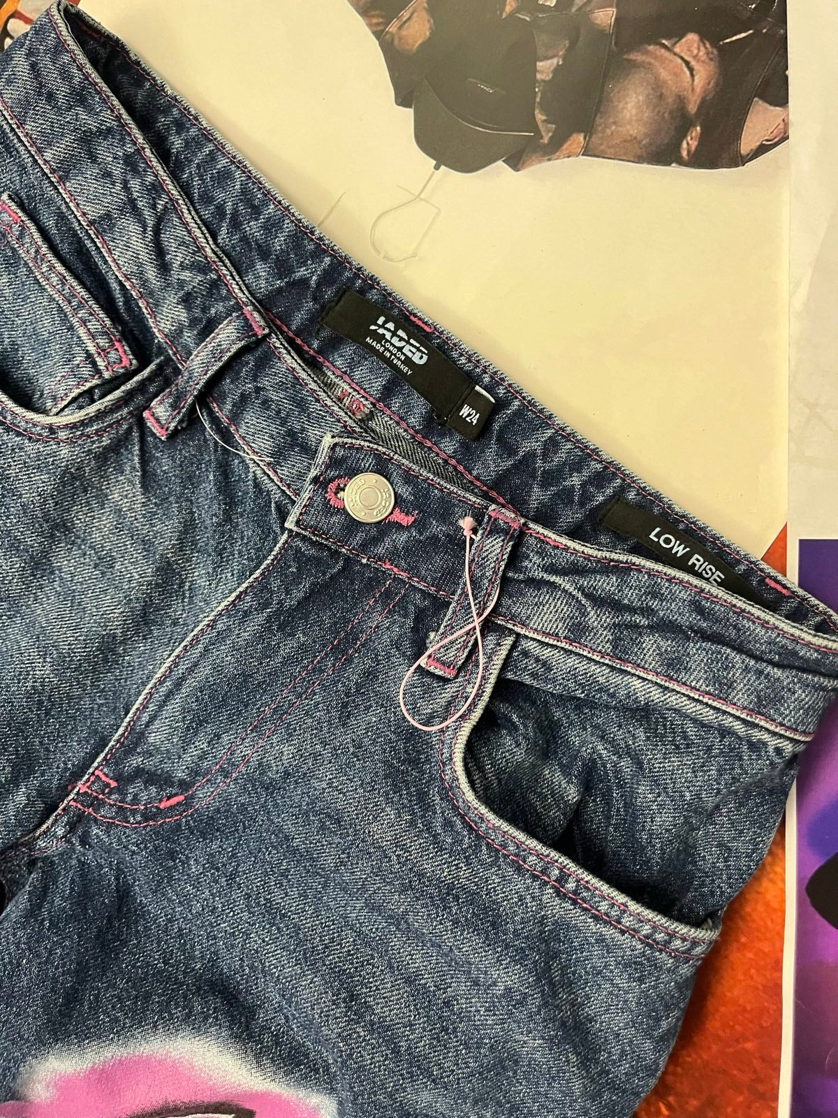 Jaded London DŽÍNY dámské tmavý denim, fialový nápis Baby Girl na levé nohavici S