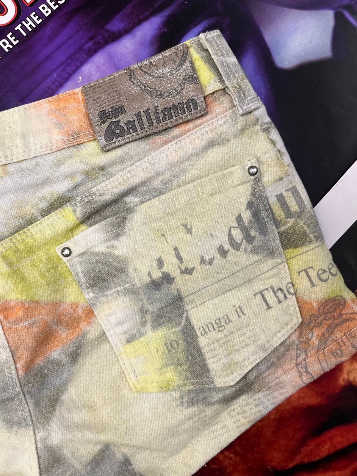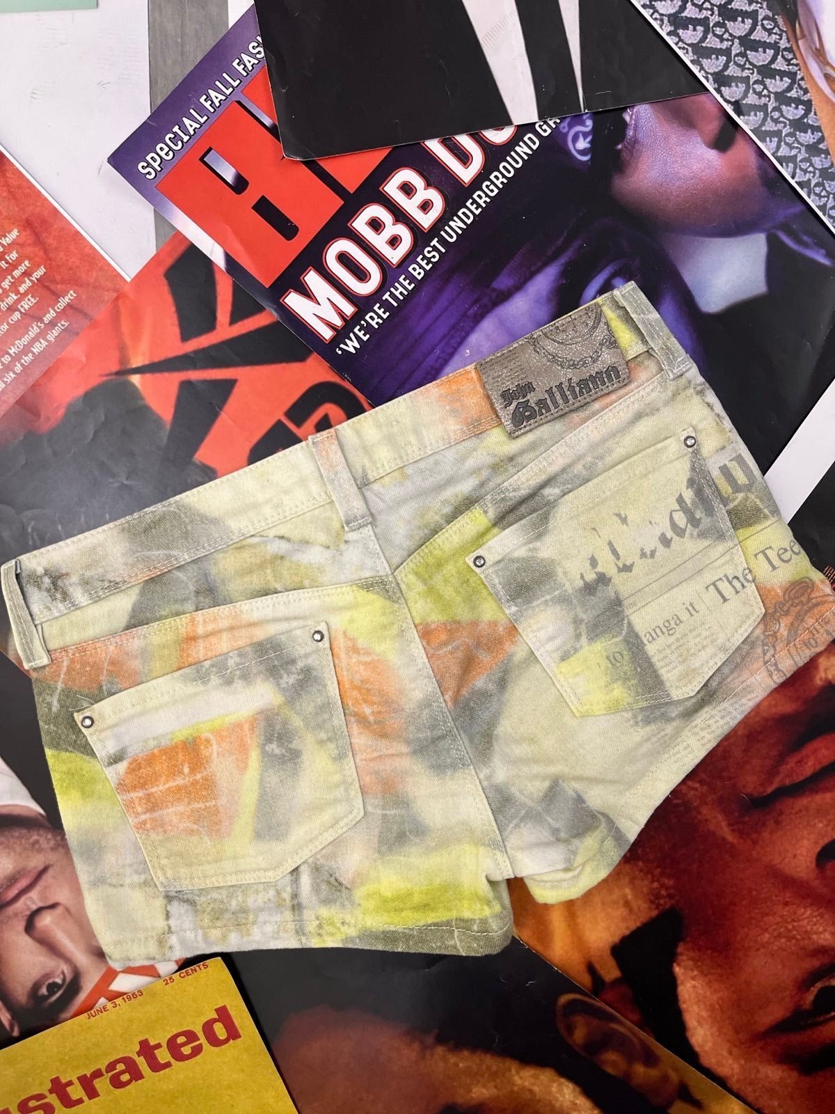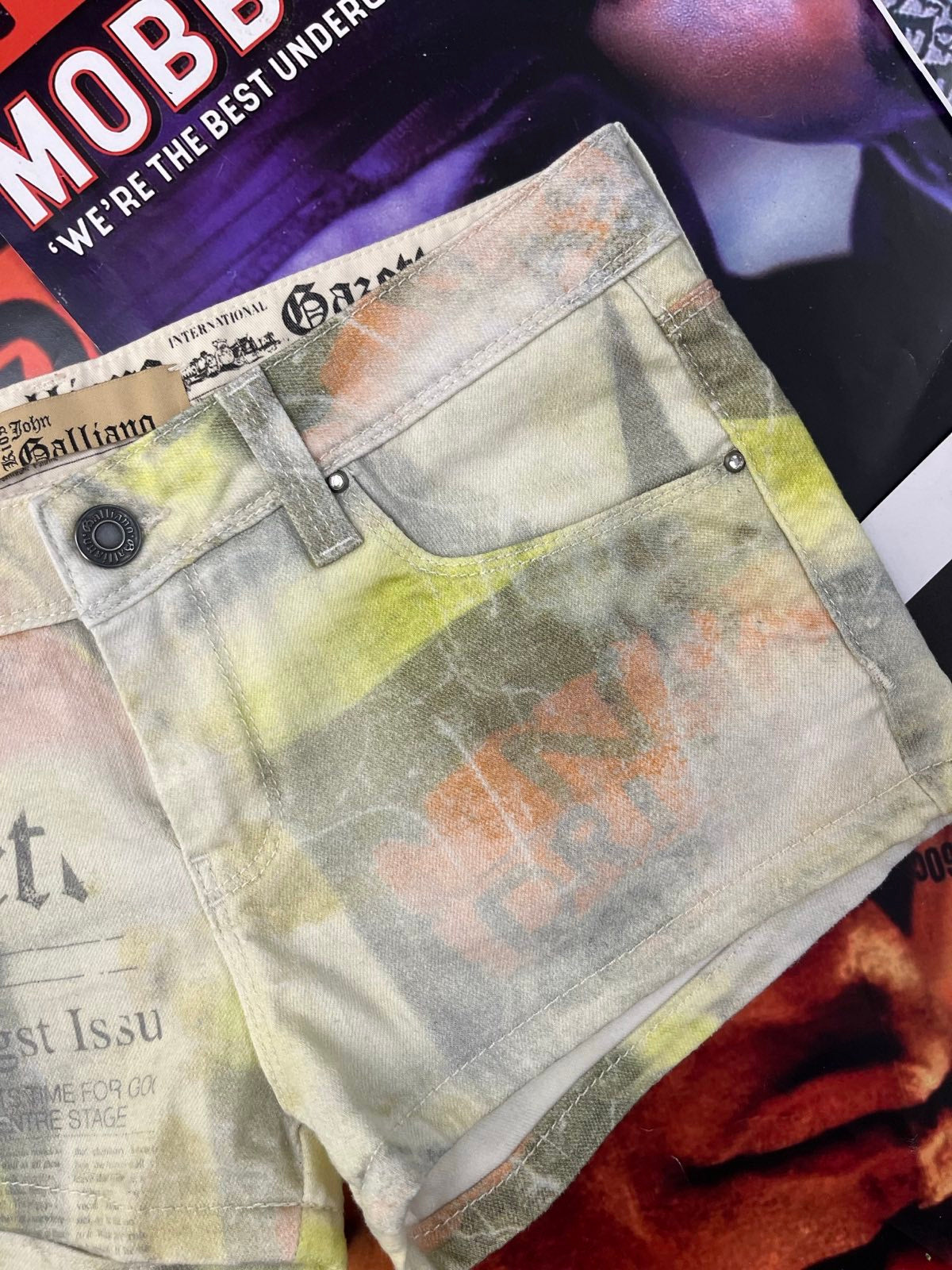 John Galliano KRAŤASY dámské bílé se žluto-červenými fleky a šedými nápisy