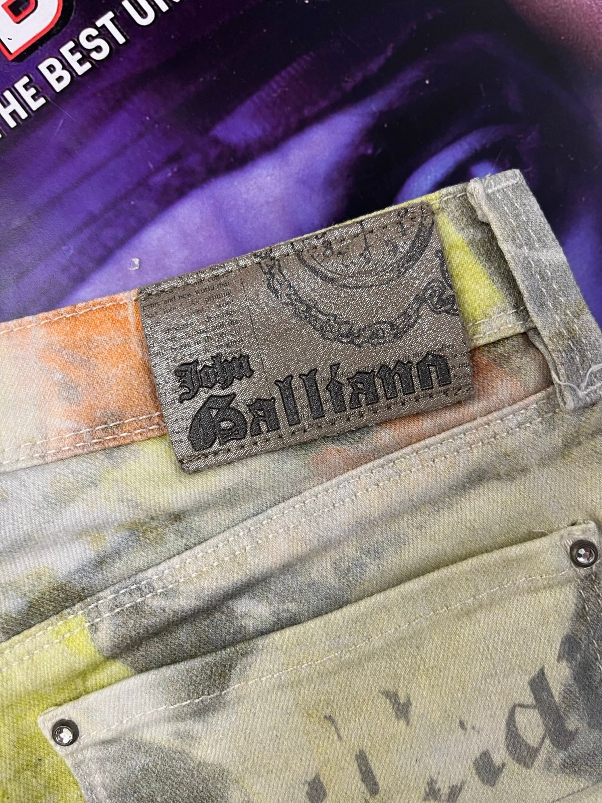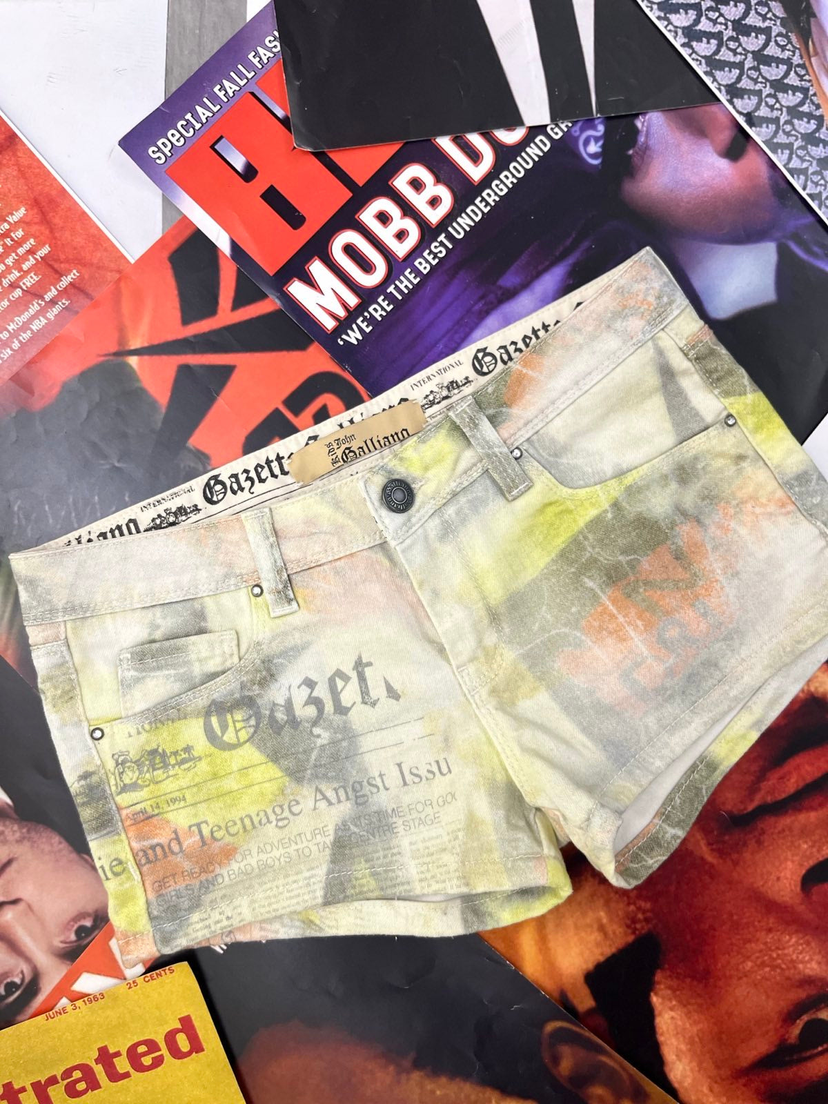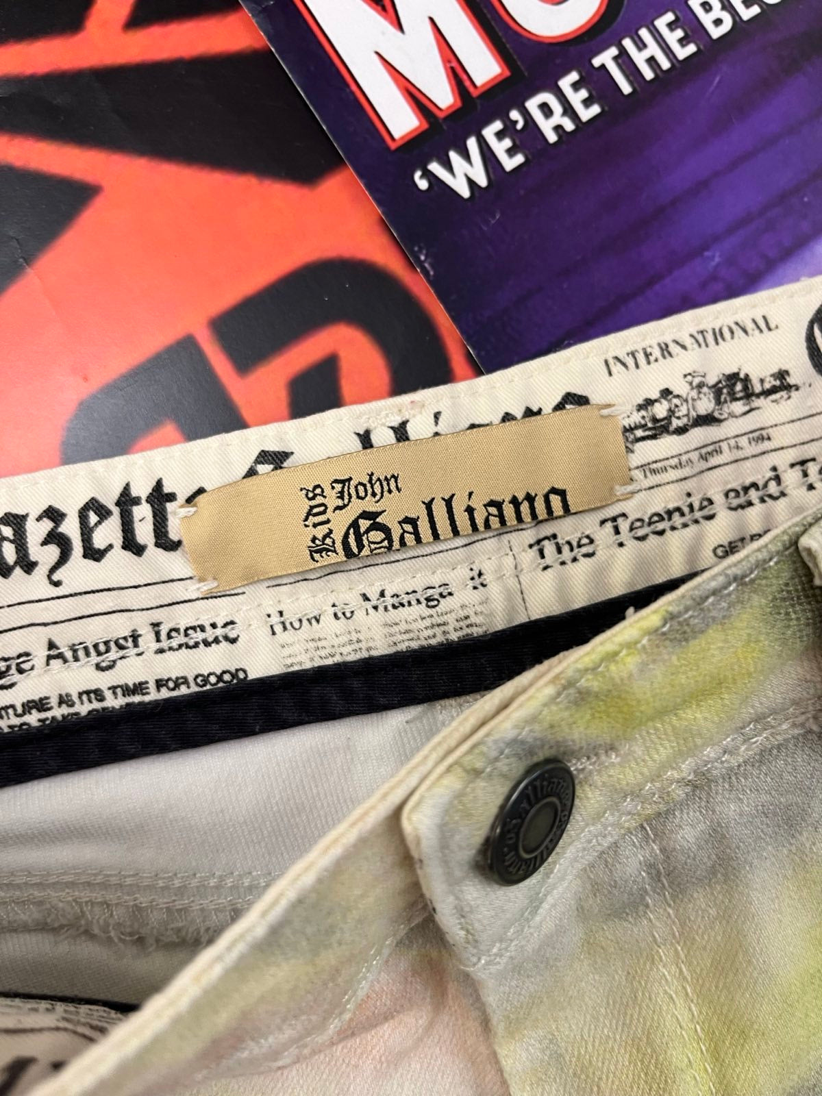 John Galliano KRAŤASY dámské bílé se žluto-červenými fleky a šedými nápisy