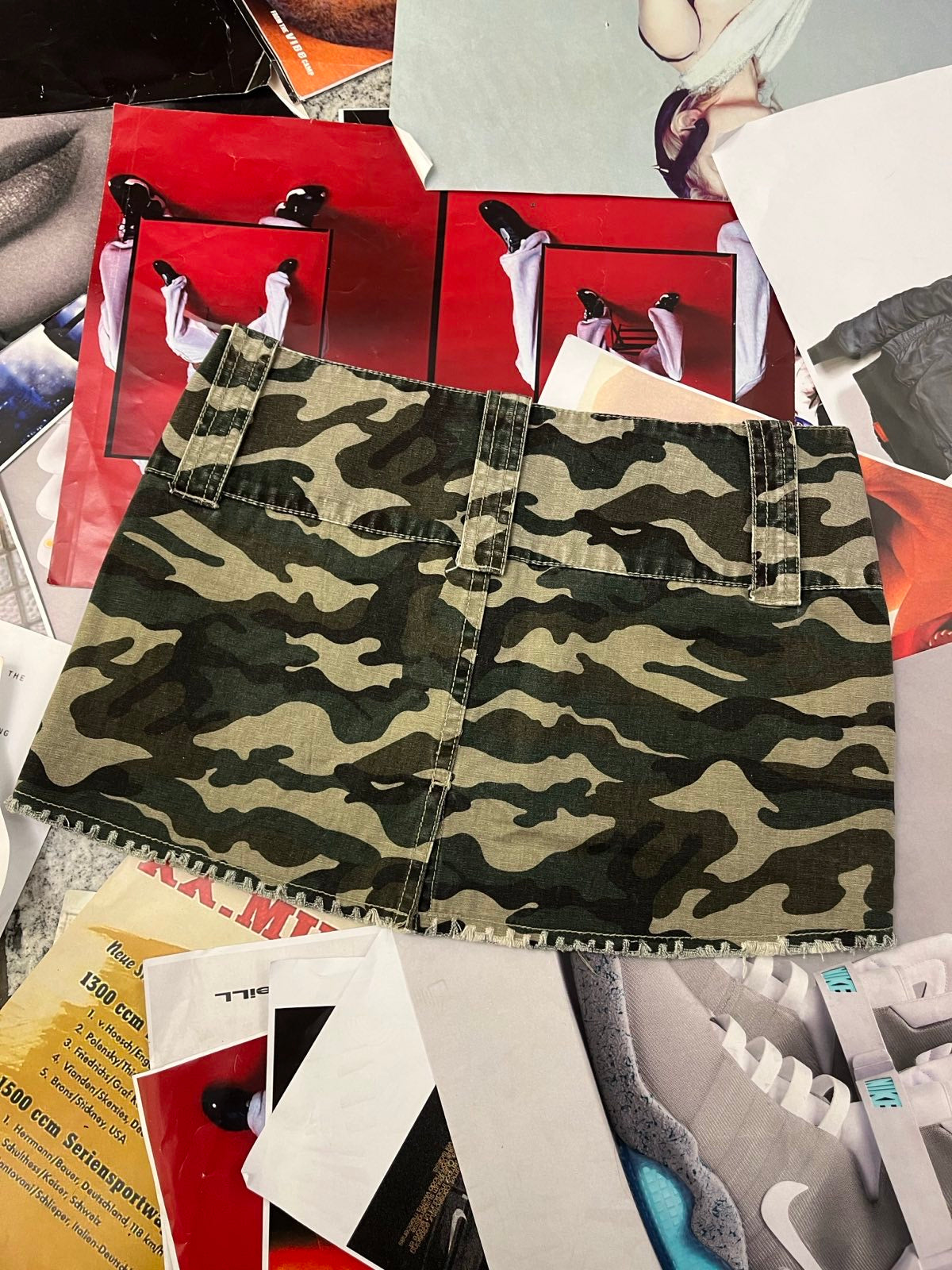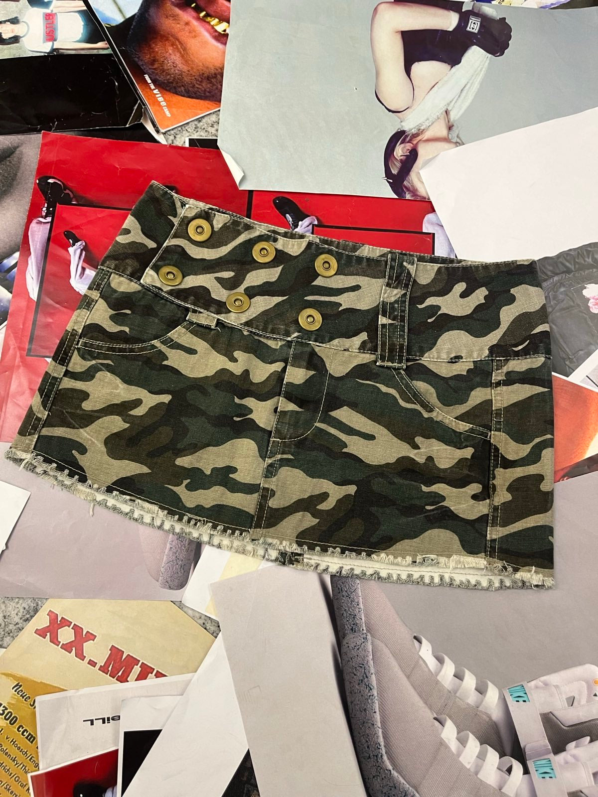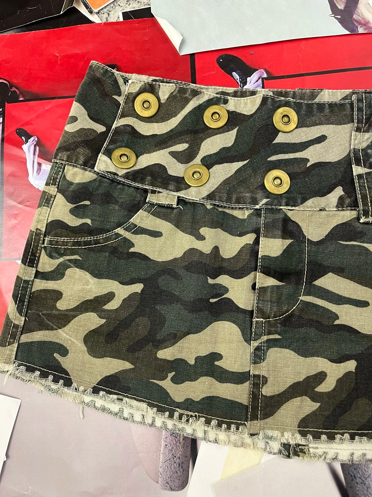 (M) Kit MINI SUKNĚ maskáčová s páskem a zlatými knoflíky