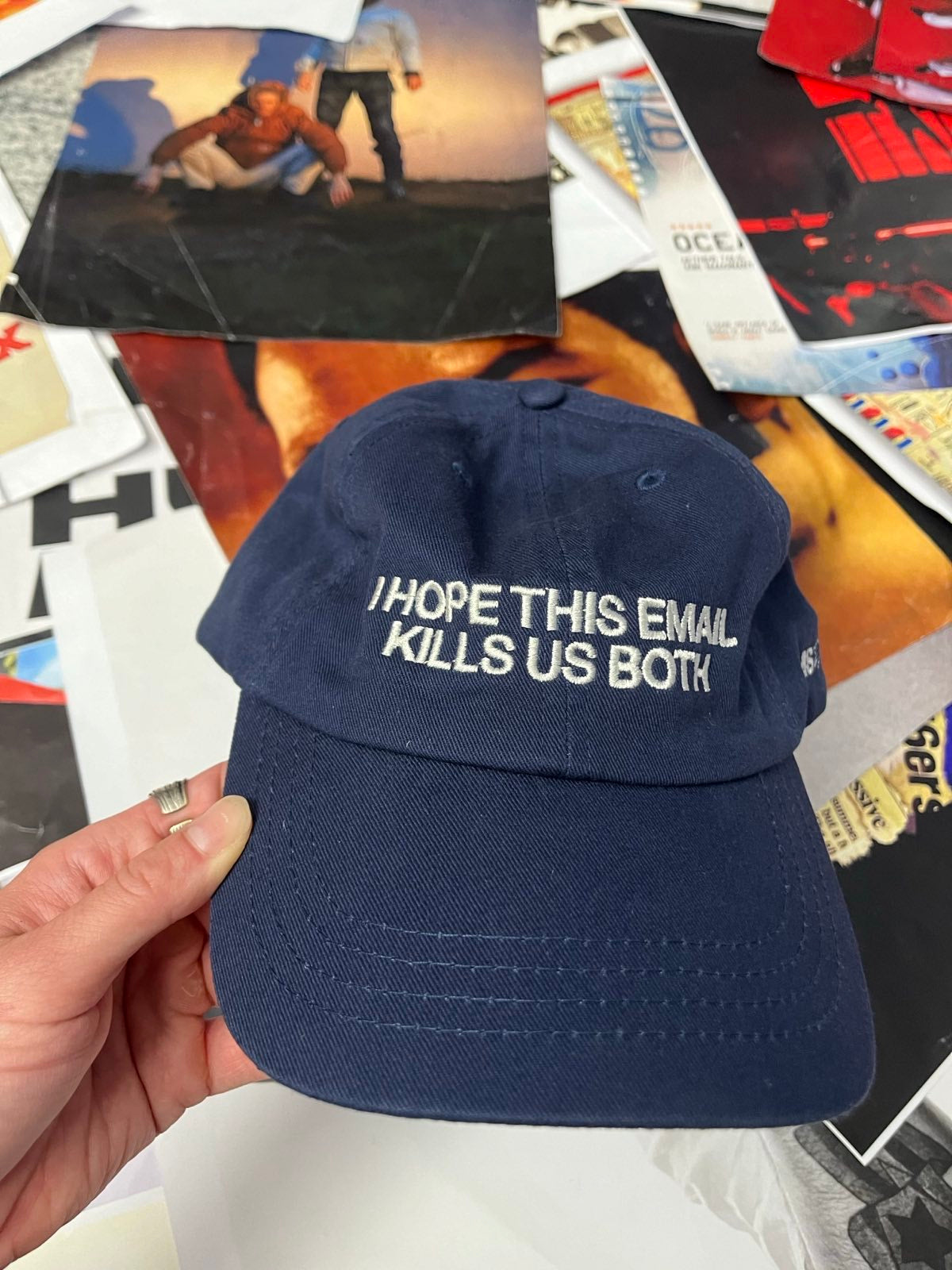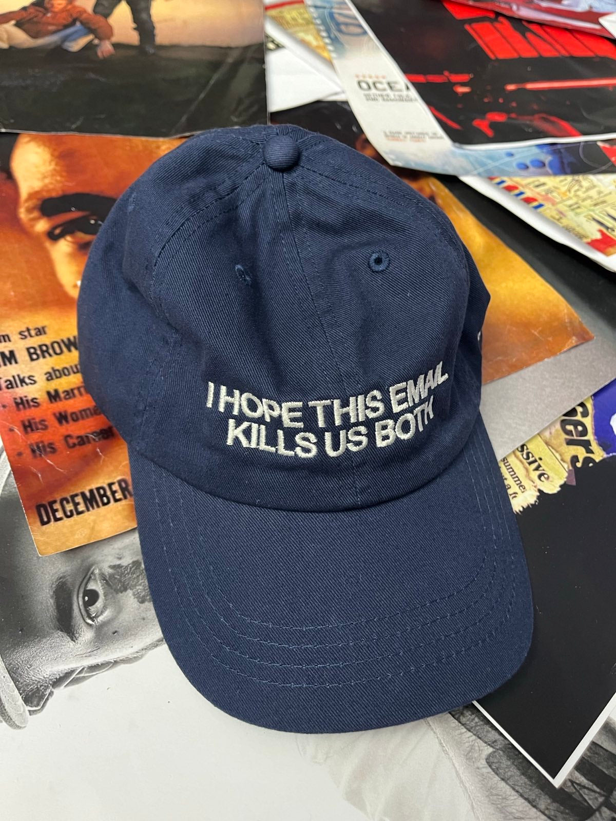 Kšiltovka tmavě modrá s bílým nápisem “I hope this email kills us both"