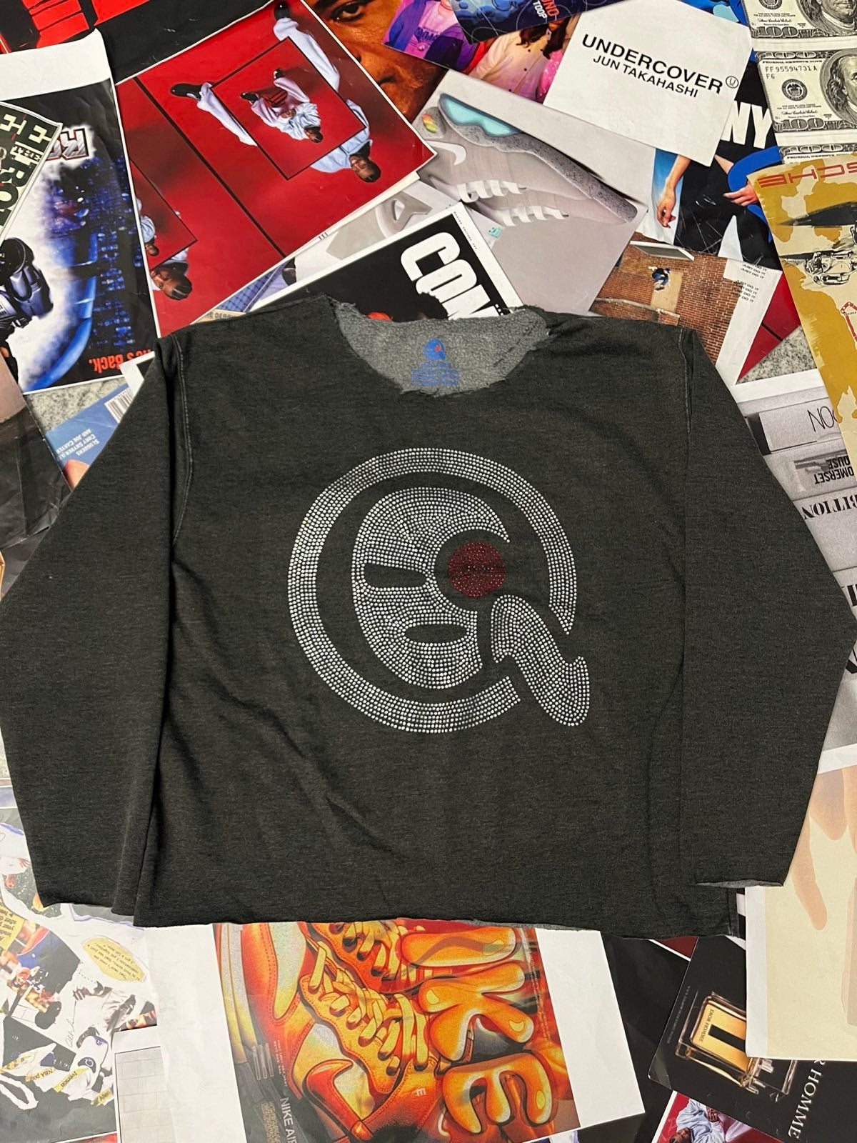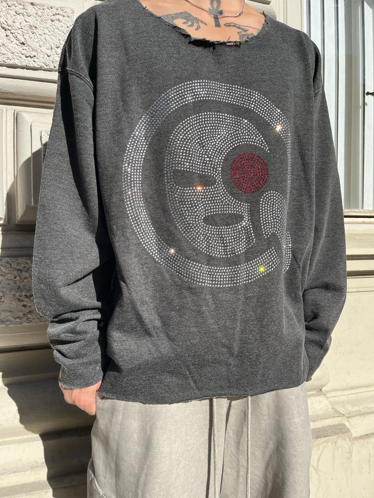 (L) 1of1 CREWNECK šedý stonewashed distressed STOLEN rhinestones