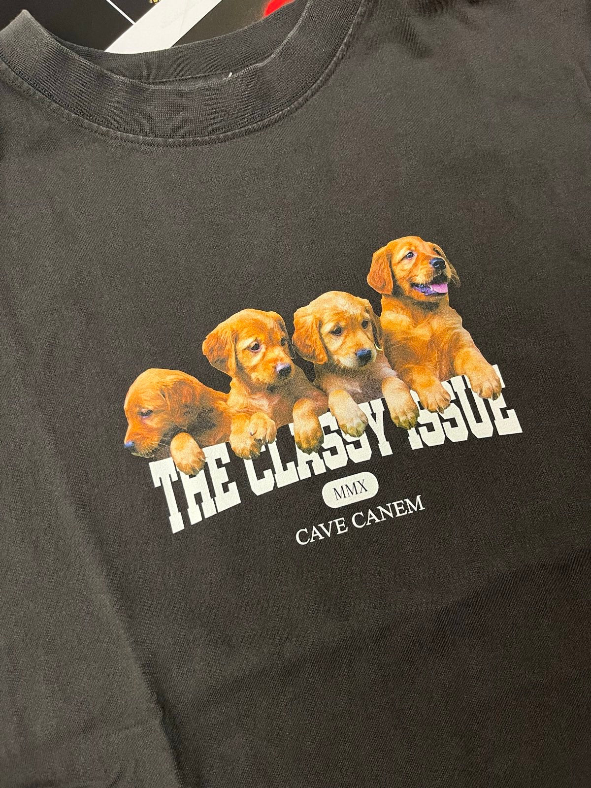 (L) The Classy Issue TRIKO tmavě šedé s potiskem hnědých psů