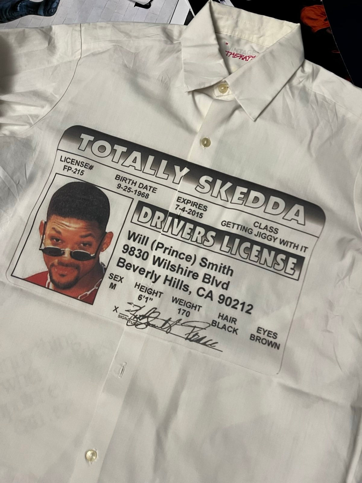 1of1 košile bílá Will Smith – Skedda Drivers Licence
