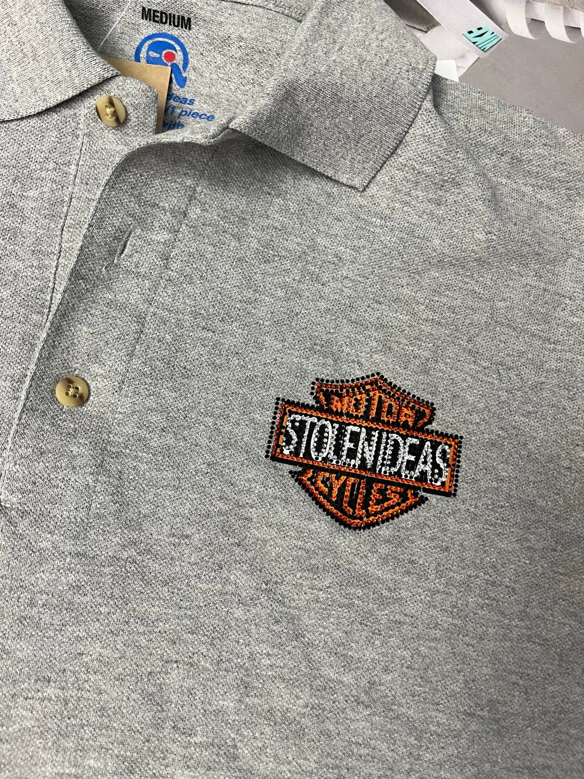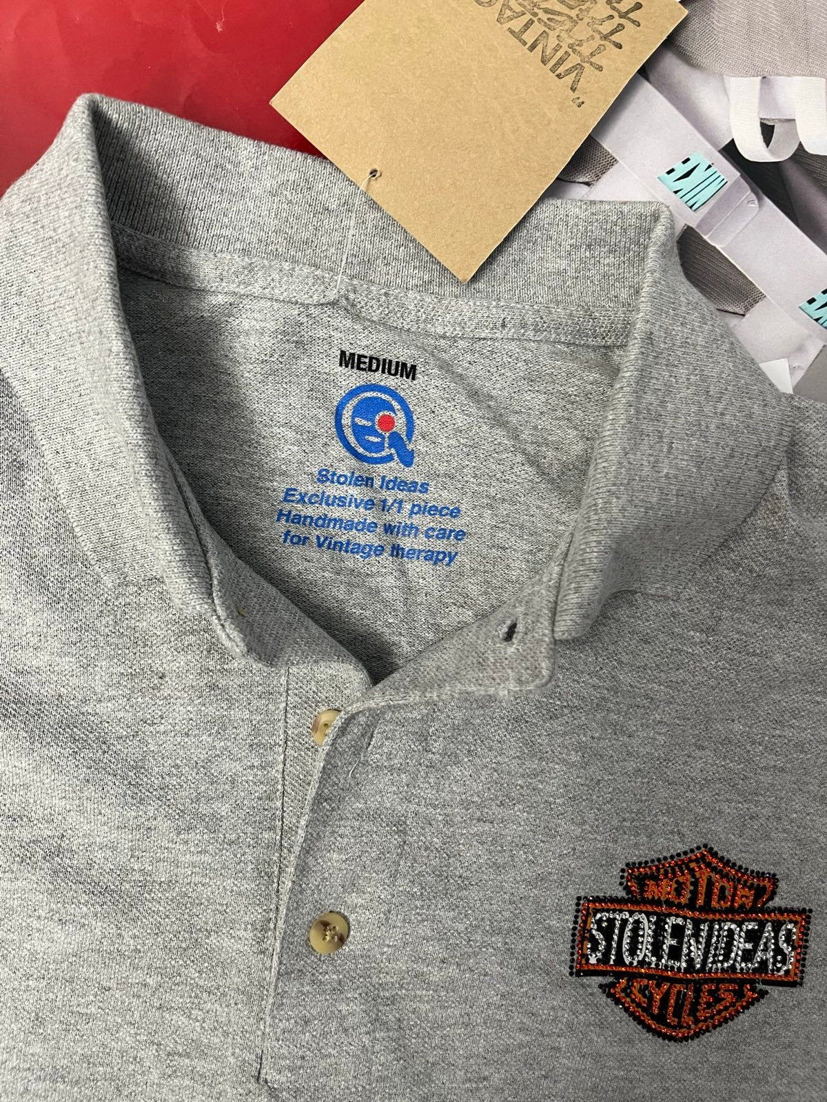 (M) 1of1 POLOTRIKO šedé Harley Davidson rhinestones logo