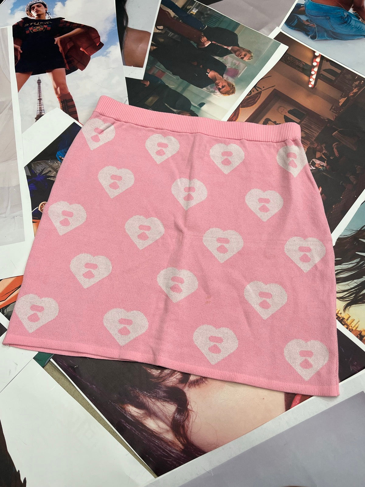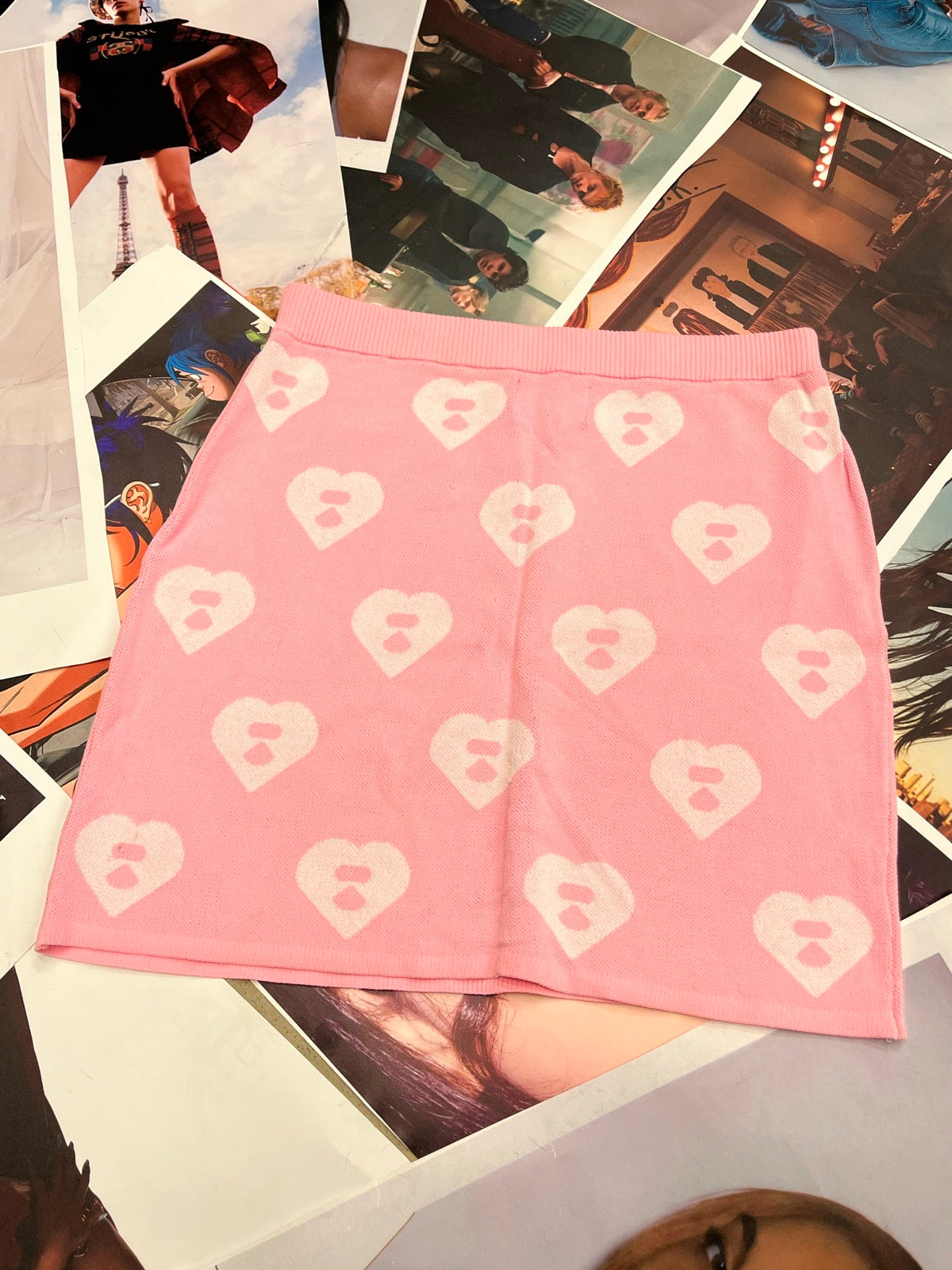 (M) APEE sukně z úpletu růžová s bílými srdíčky