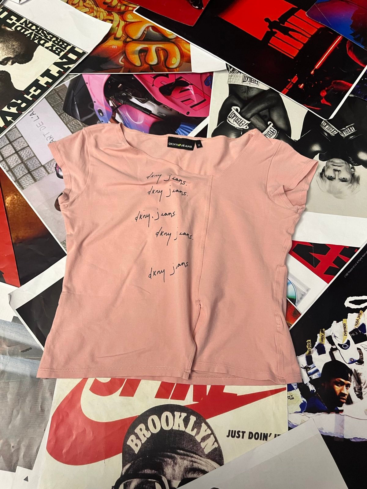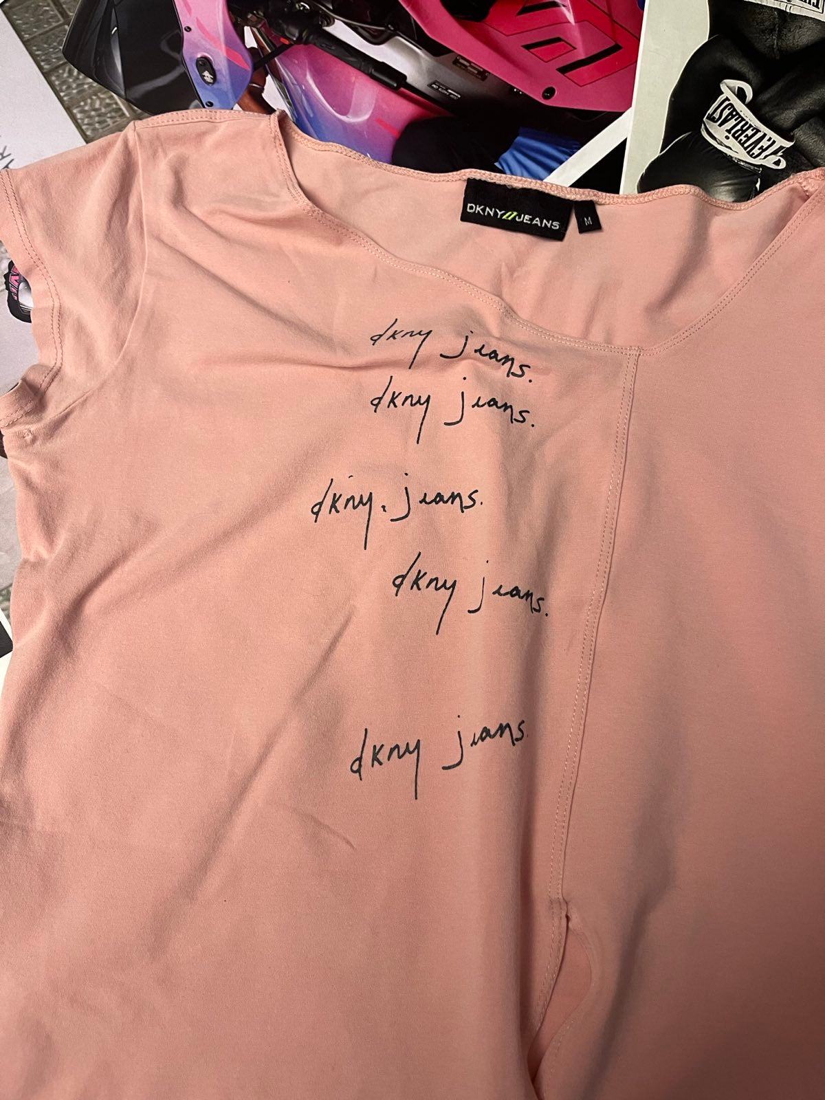 (M) Dkny Jeans triko dámské růžové s textem