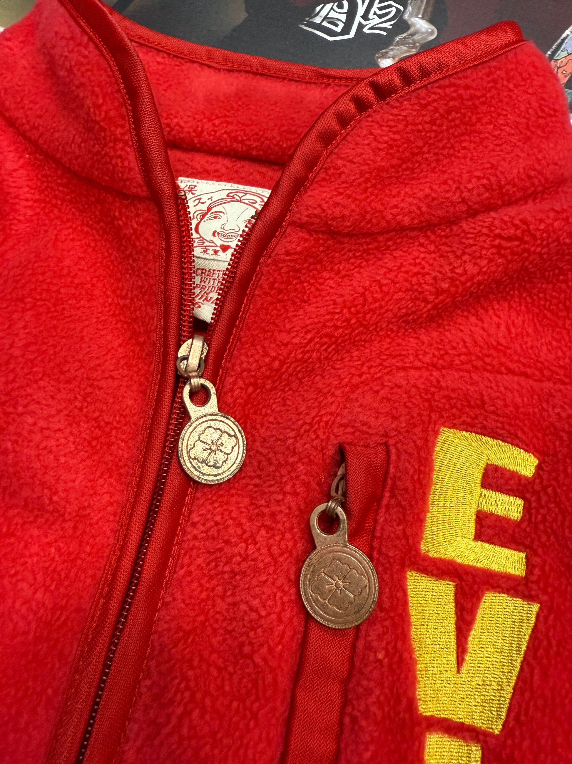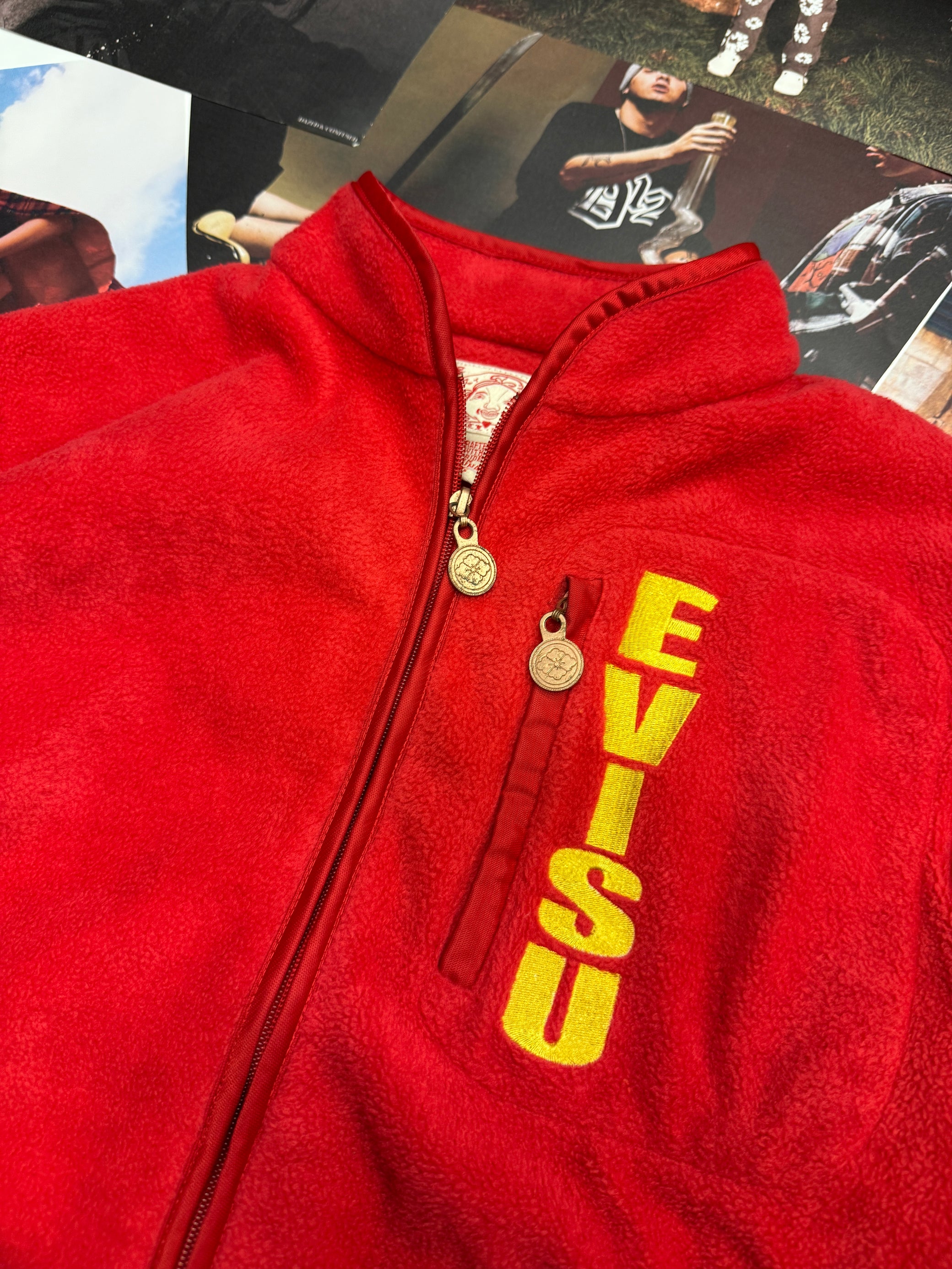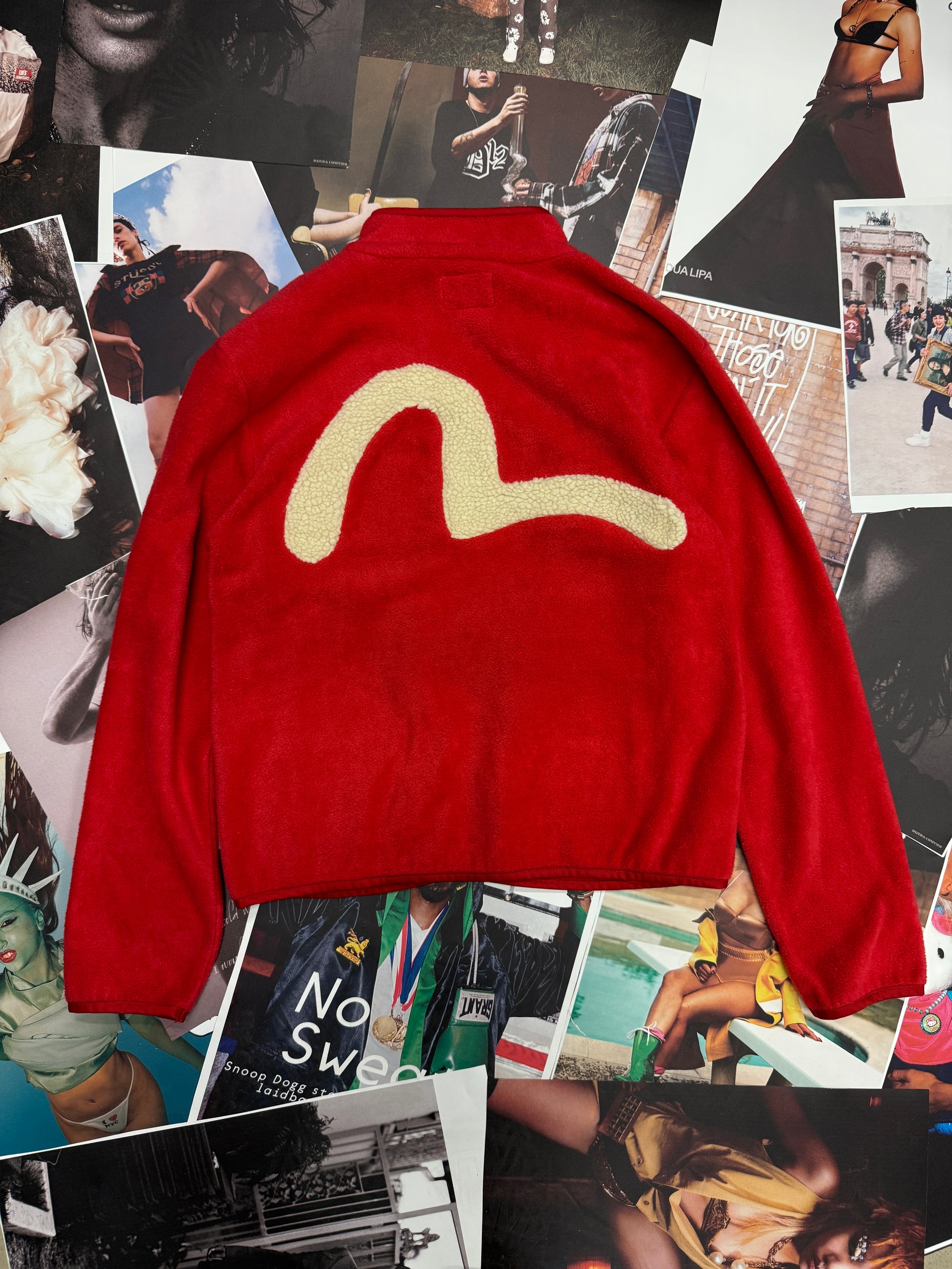 (M) Evisu fleece mikina červená s logem na zádech
