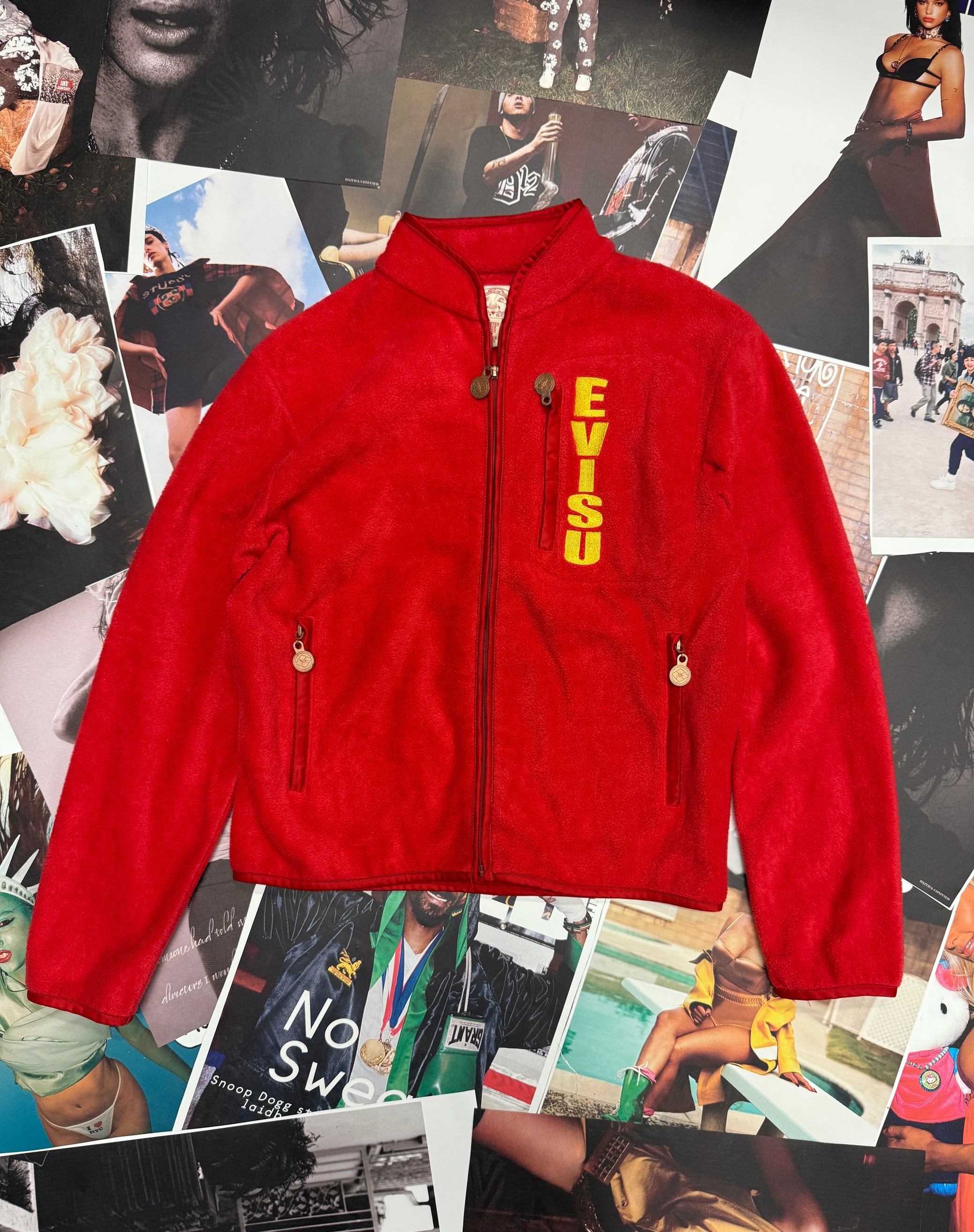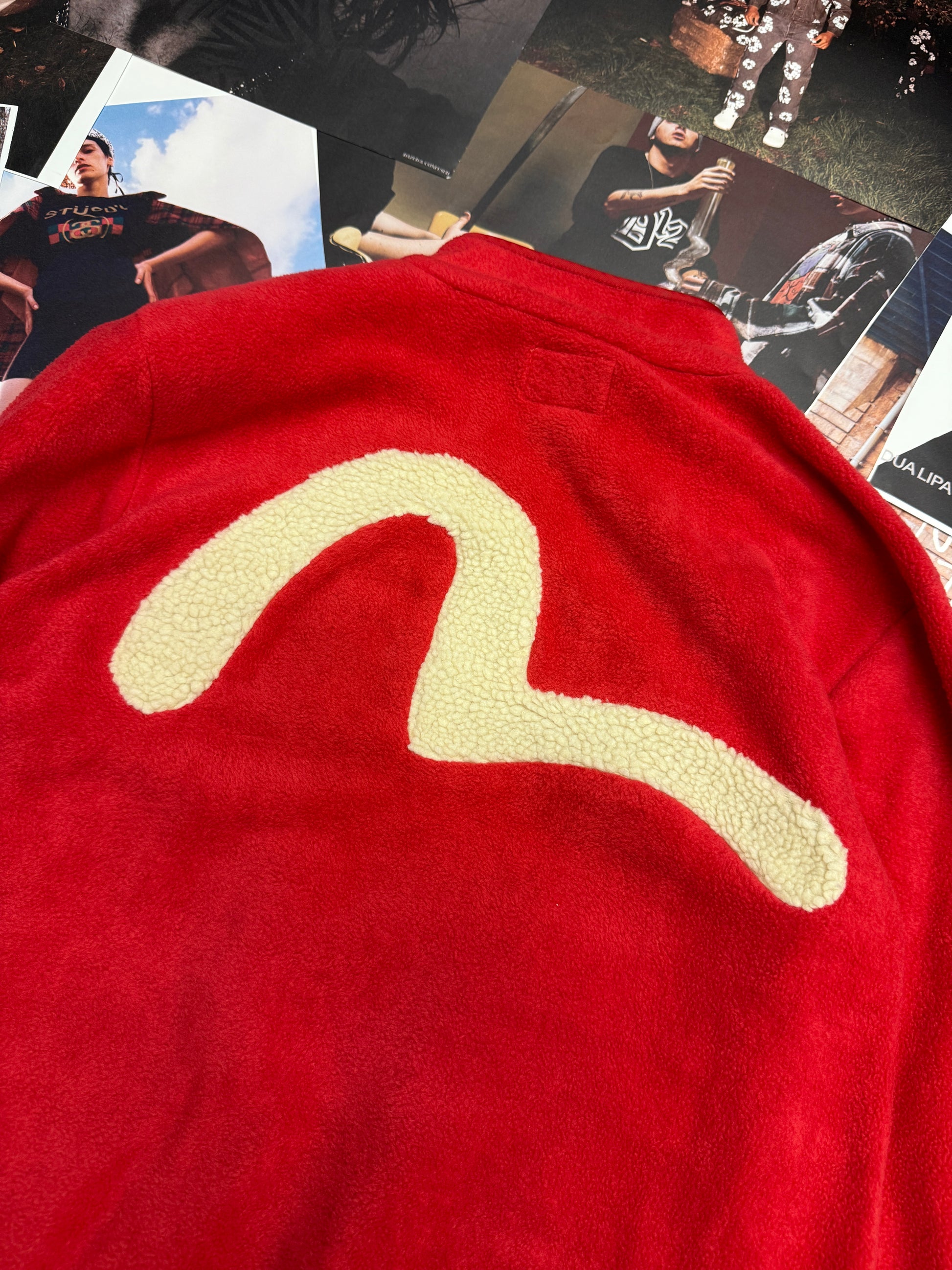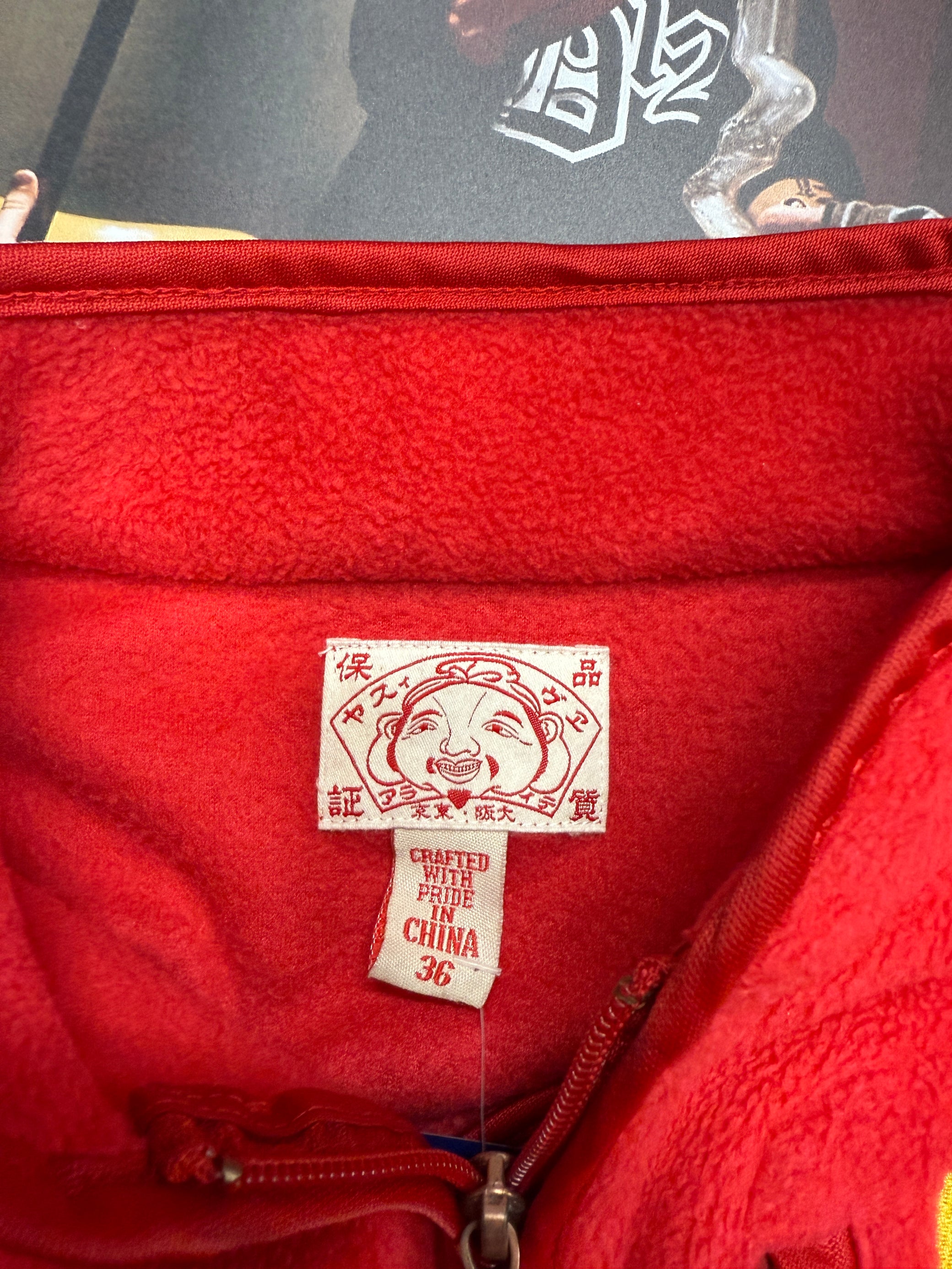 (M) Evisu fleece mikina červená s logem na zádech