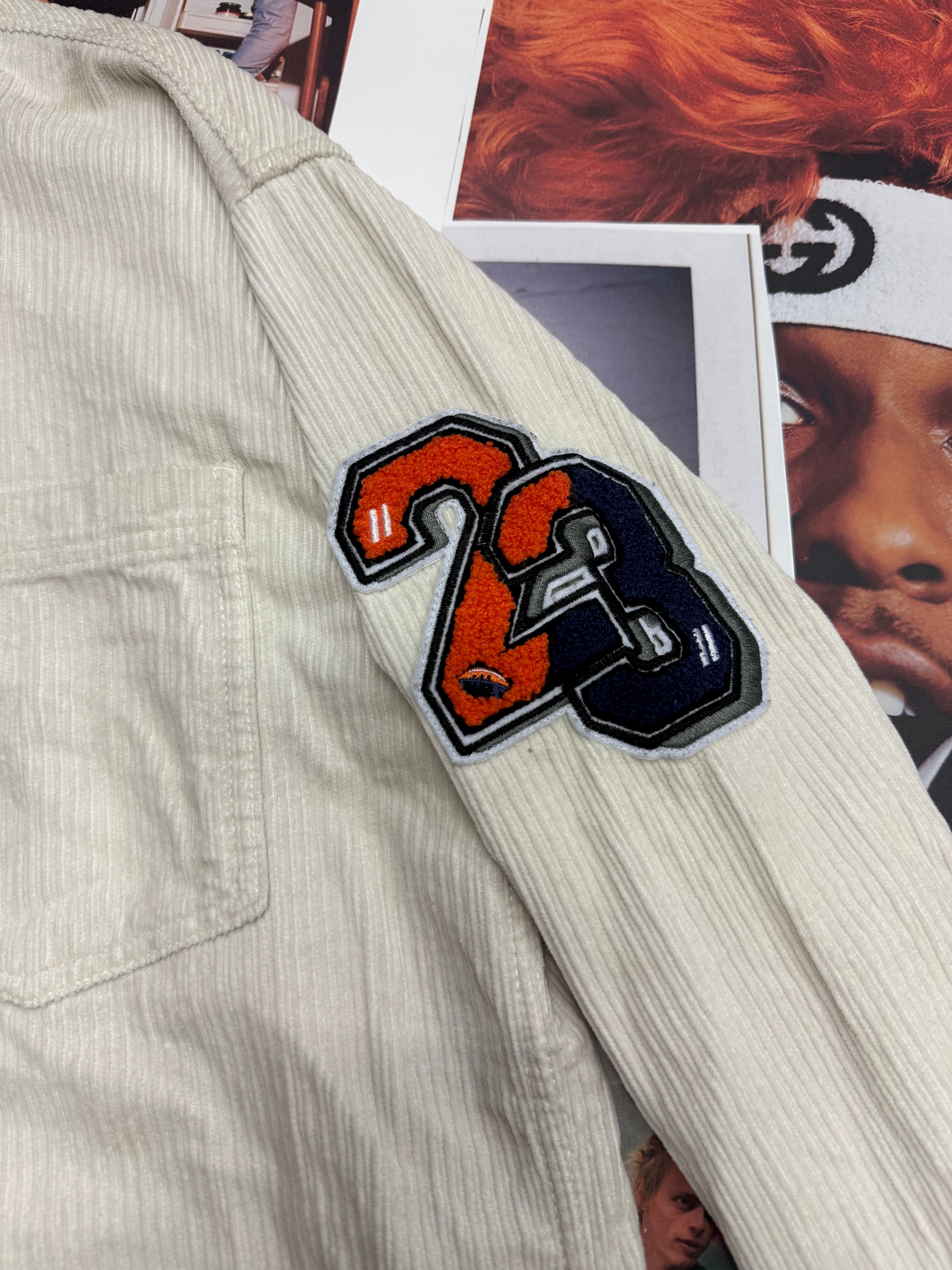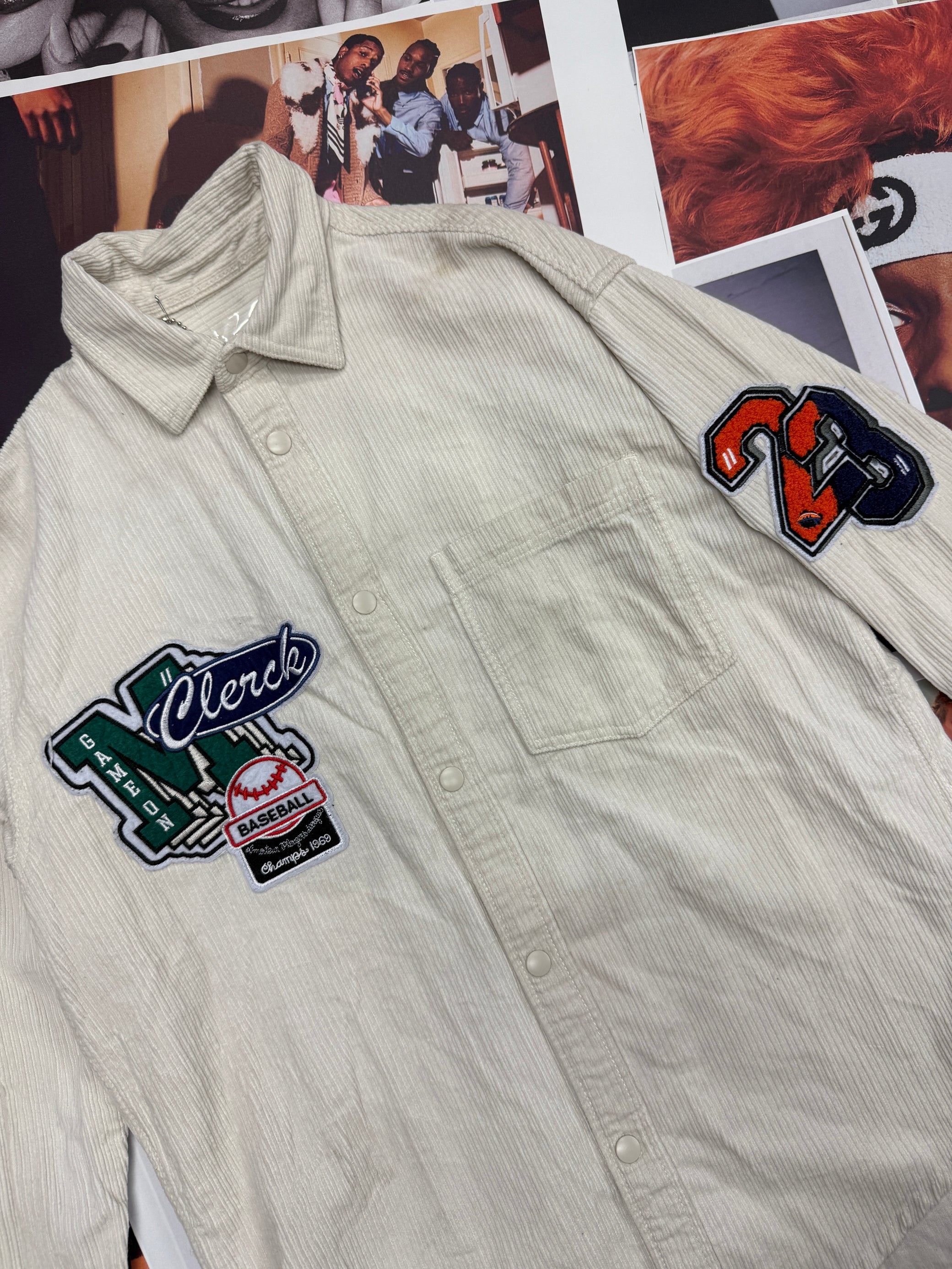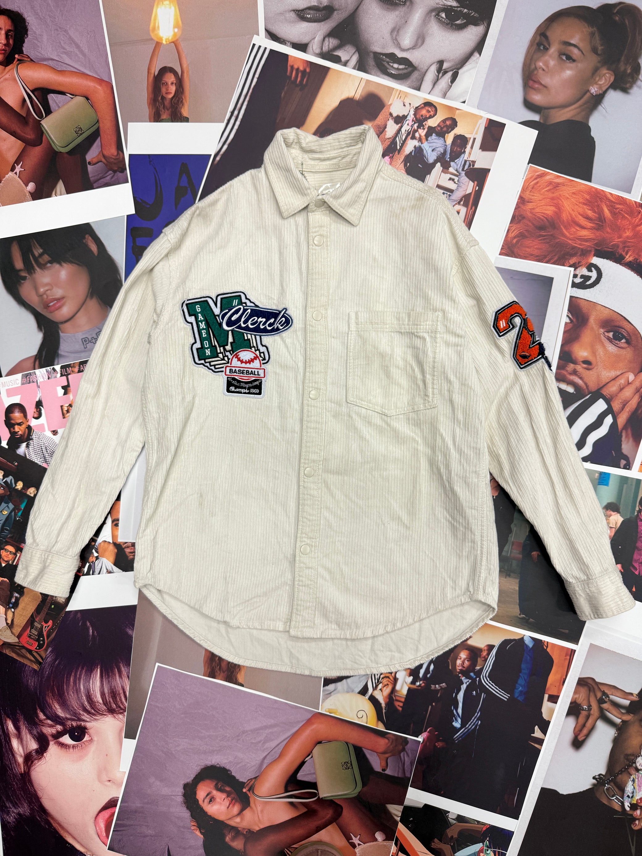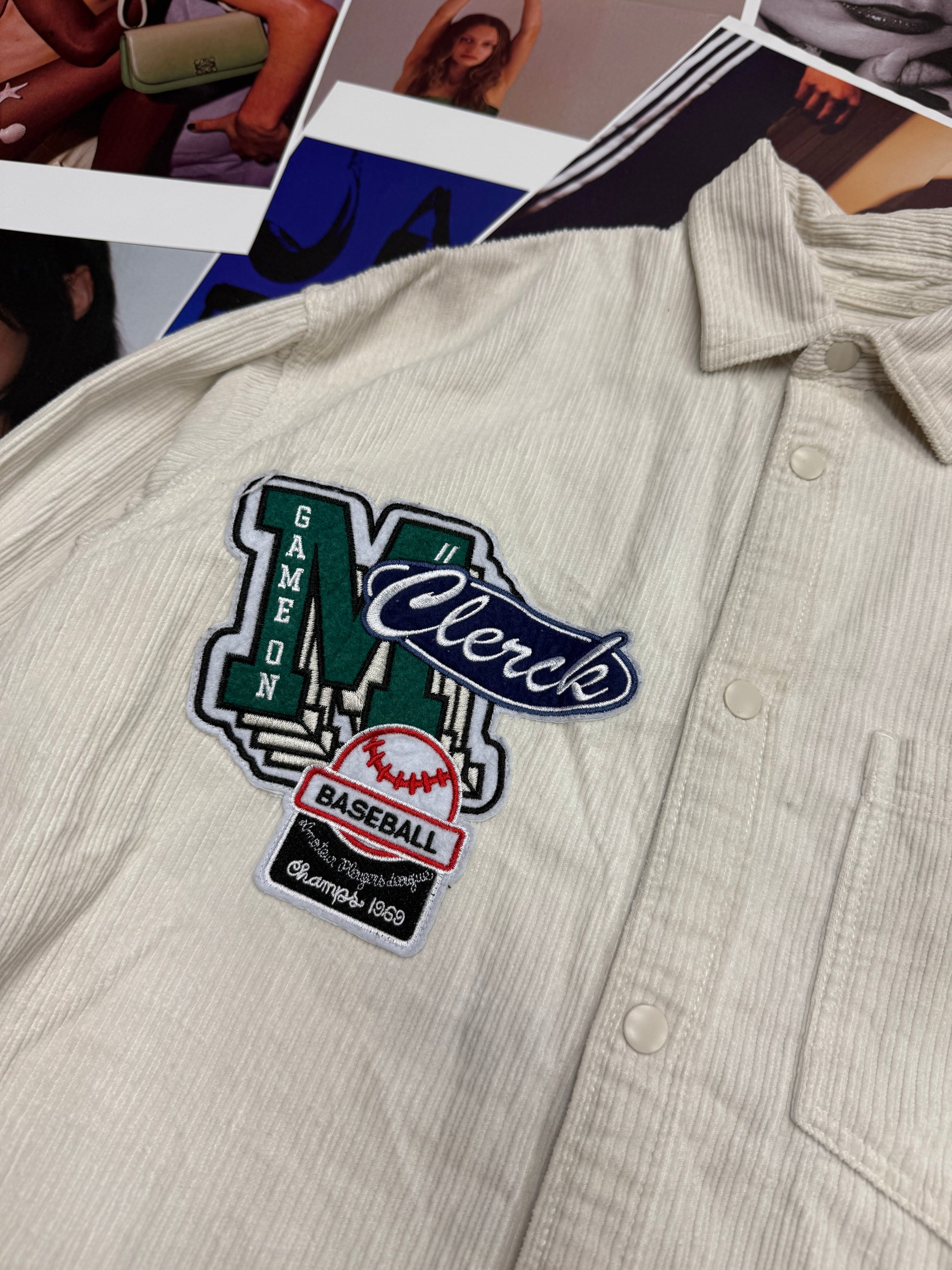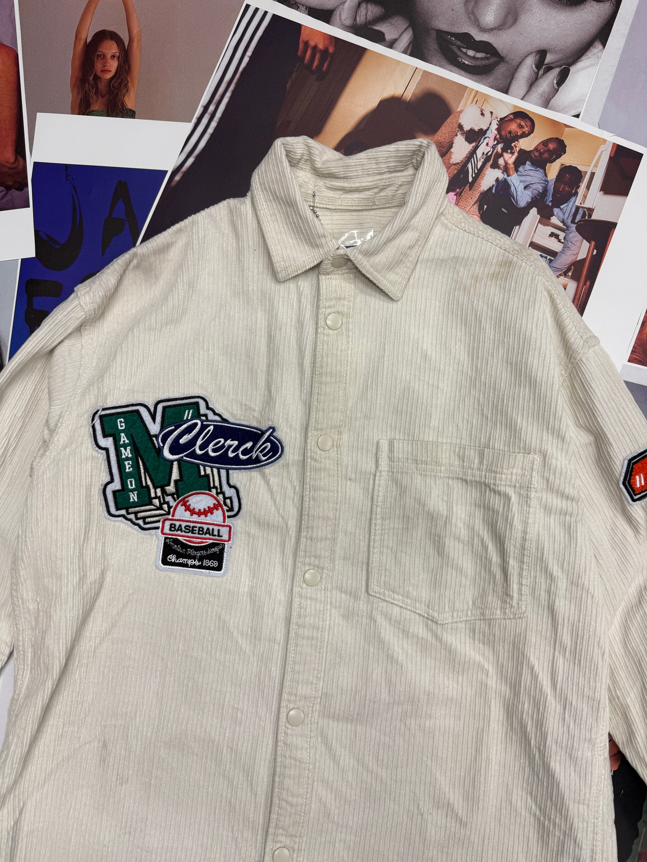 (M) Košile béžová s dlouhým rukávem a nášivkou baseballu
