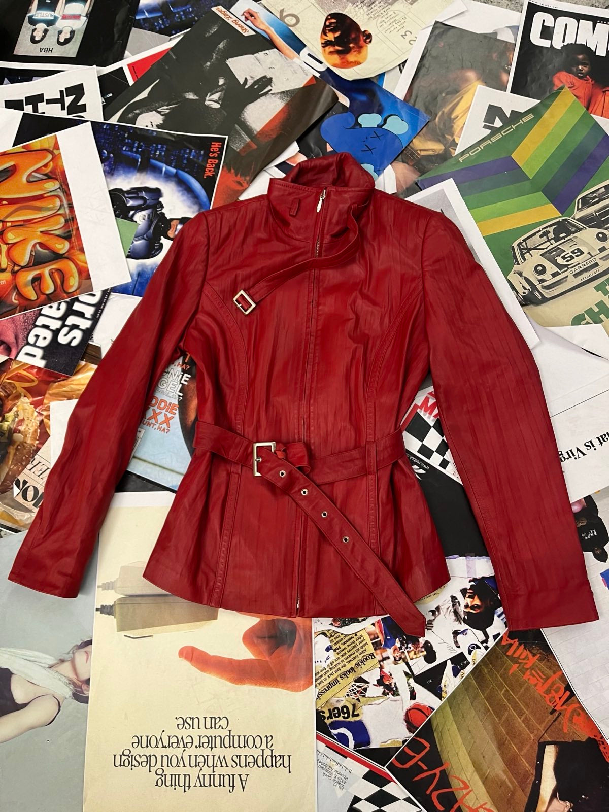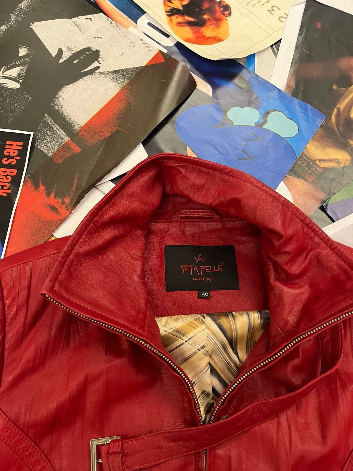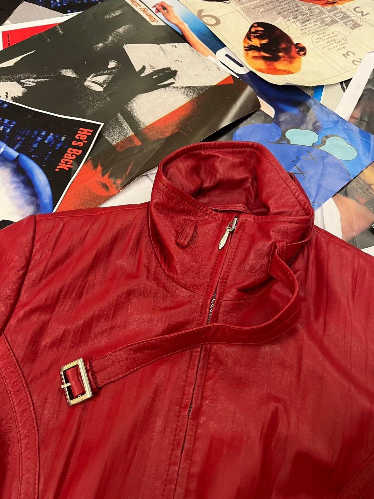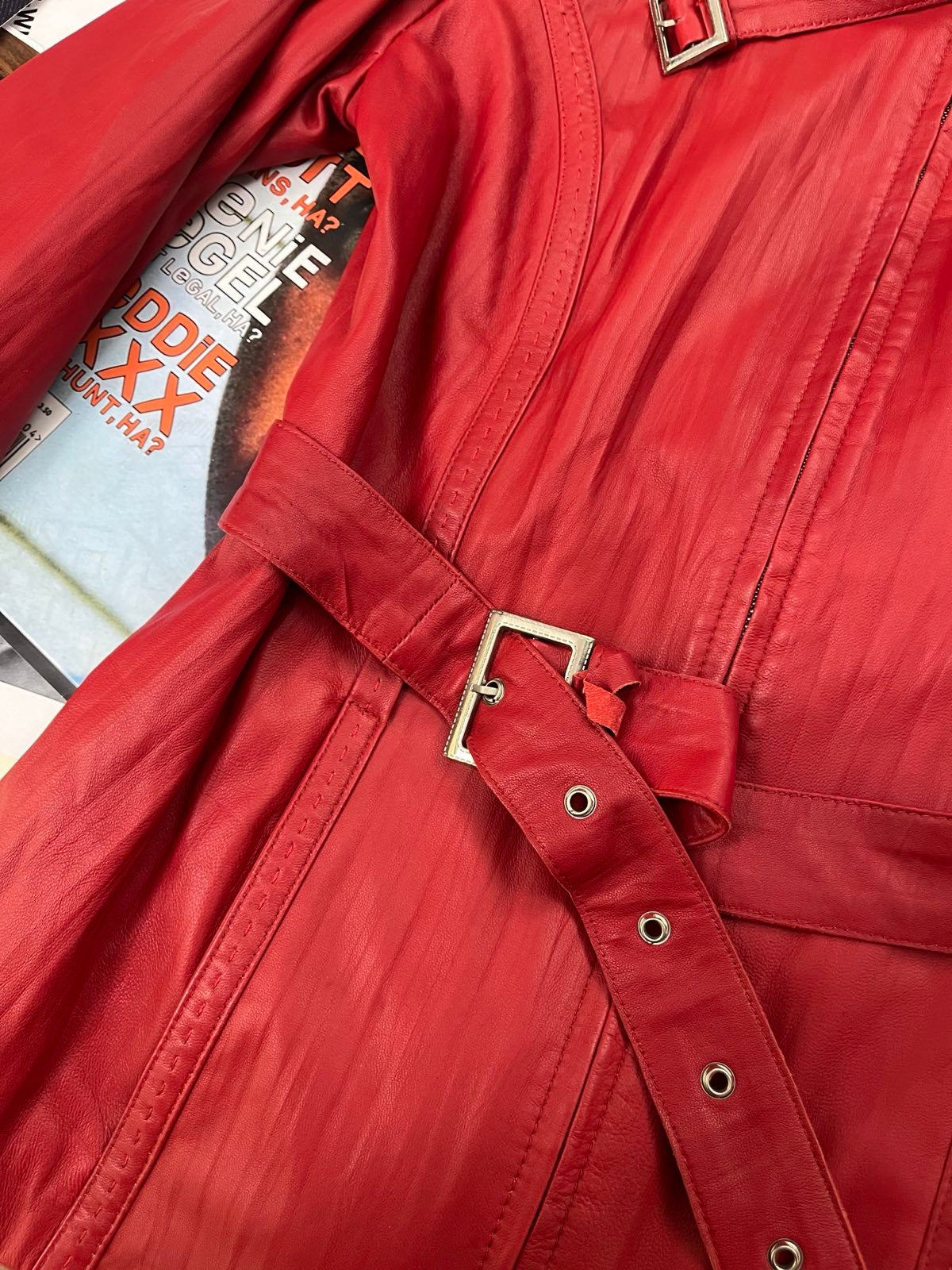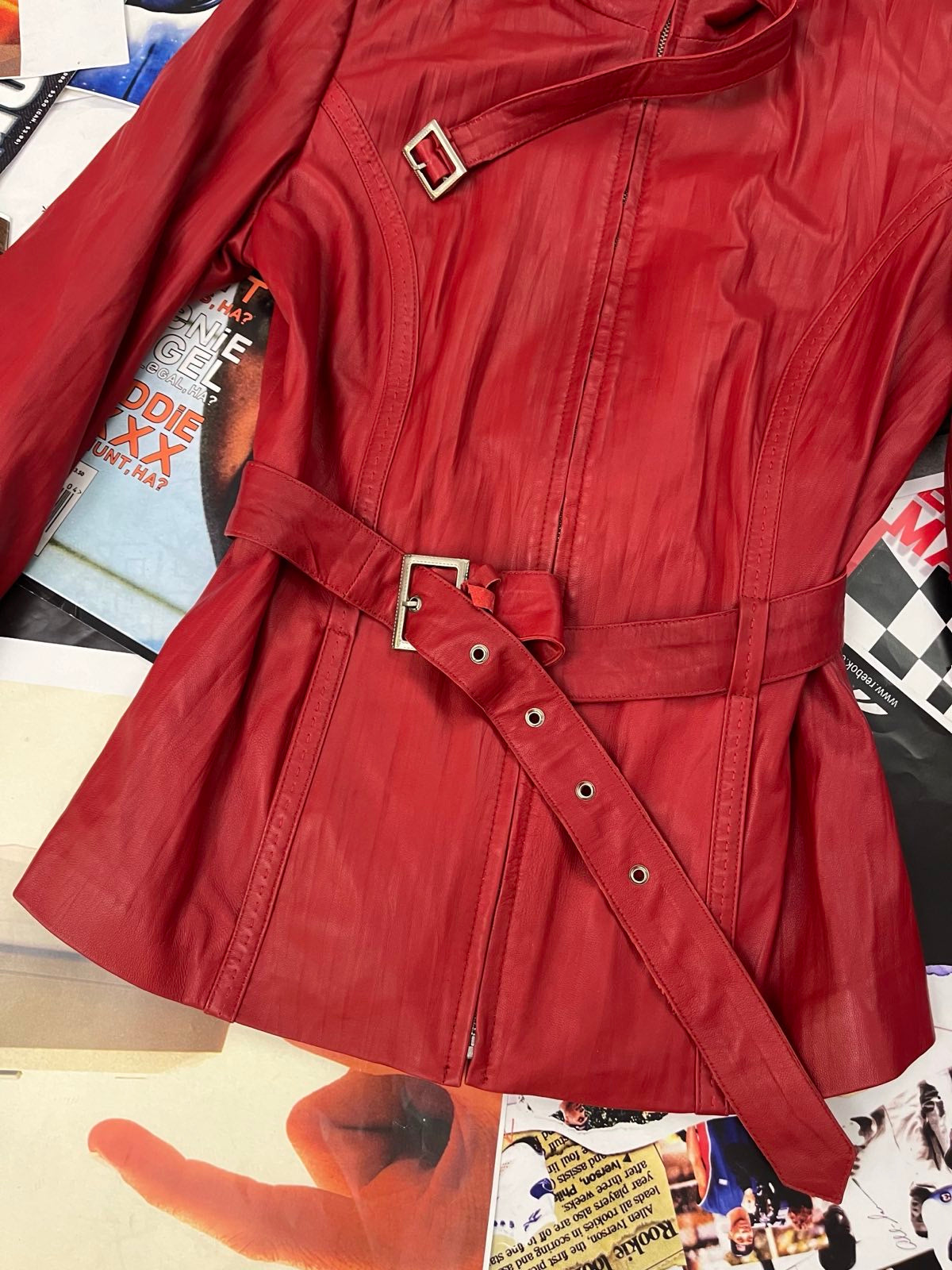 (M) Setta Pelle kožená bunda červená dámská s vázáním kolem pasu
