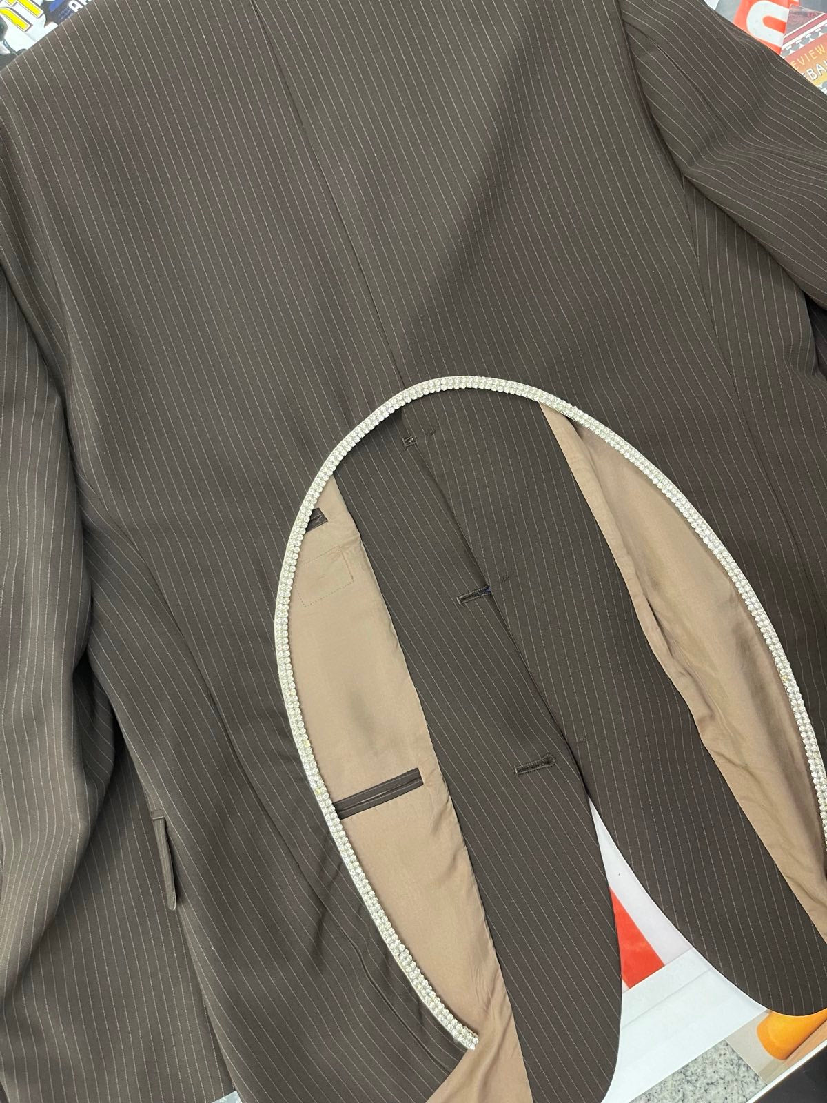 (M/L) Melisa Minca SAKO hnědé pruhované, vykrojená záda se stříbrnými kamínky