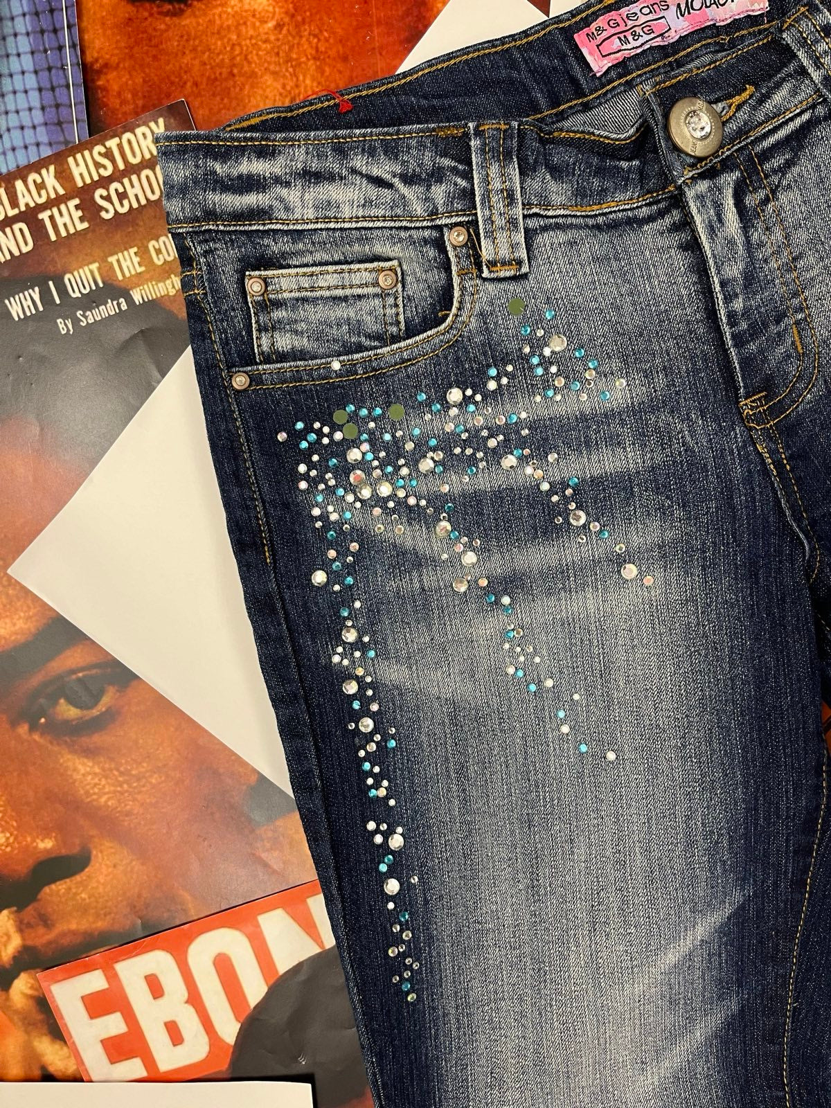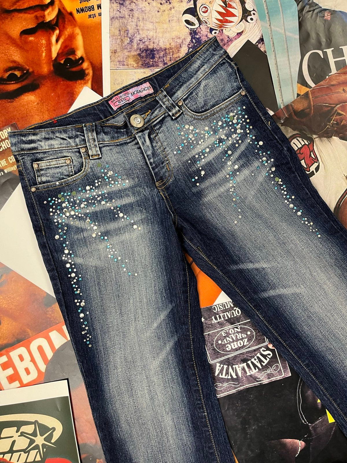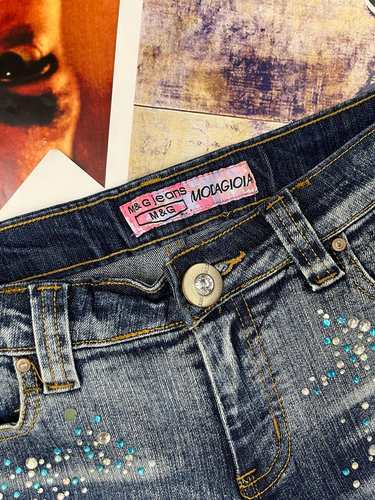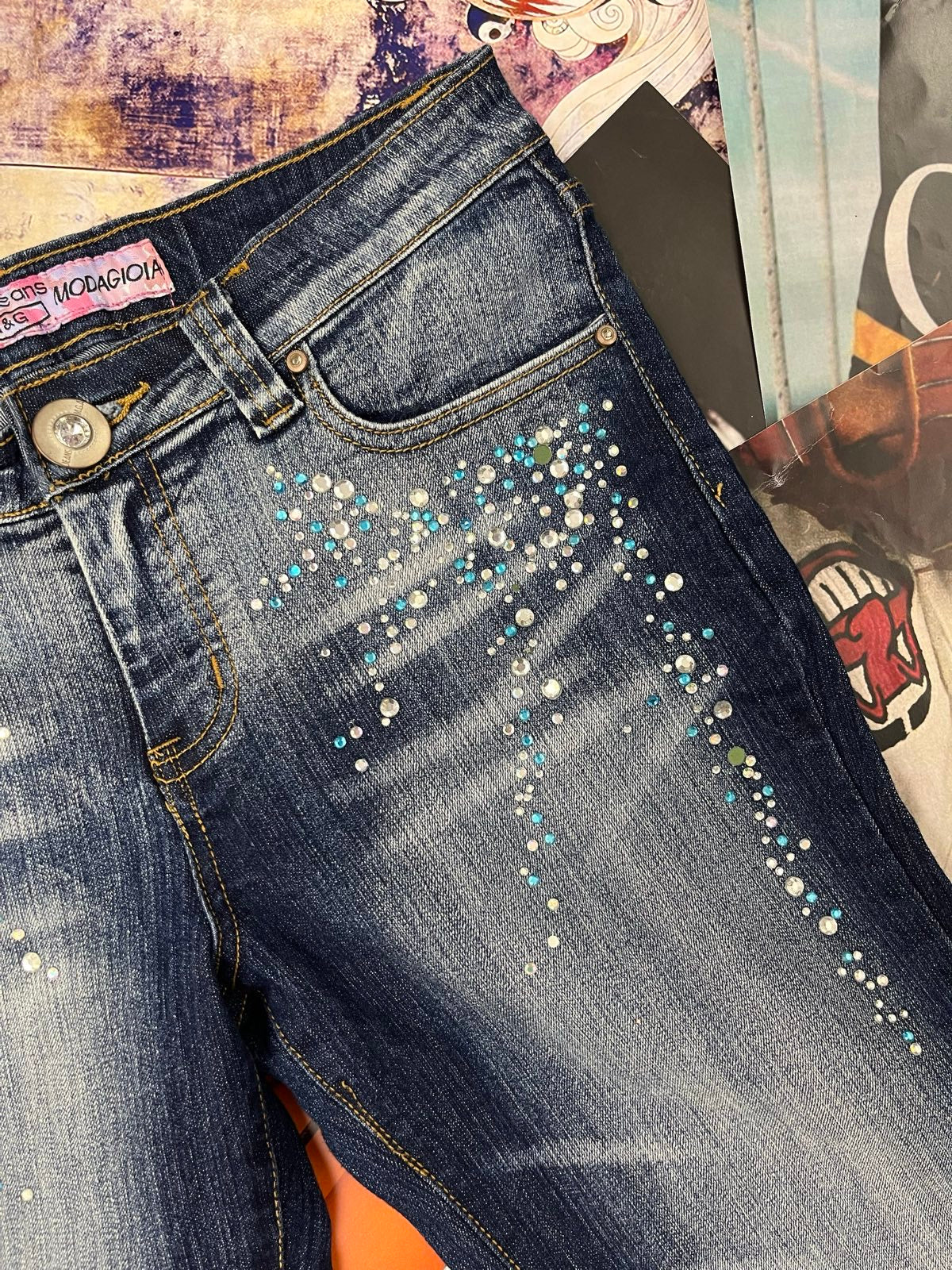 (S) Moda Gioia DŽÍNY tmavě modrý denim se stříbrnými a modrými kamínky