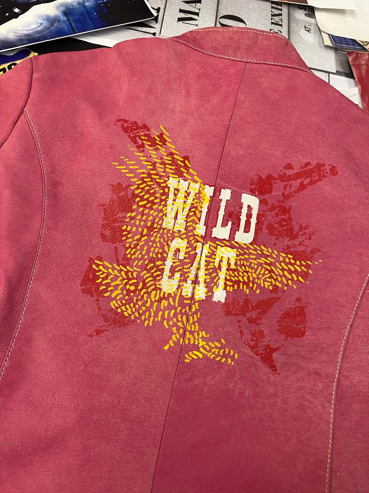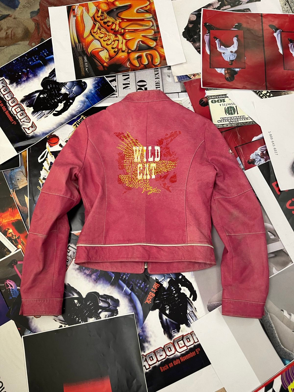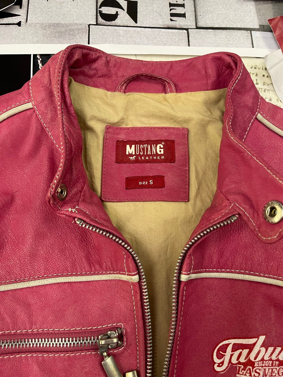 (S) Mustang leather kožená bunda dámská růžová s nášivkama, nápis WILD CAT na zádech