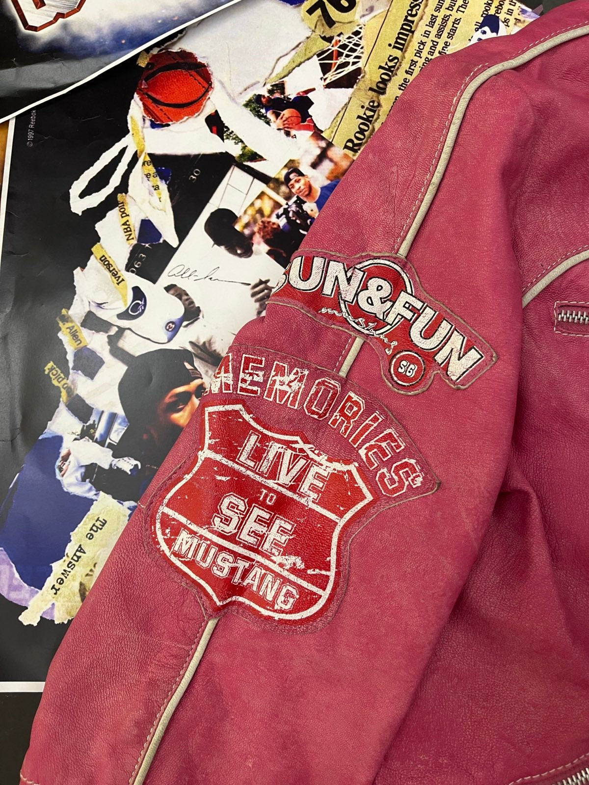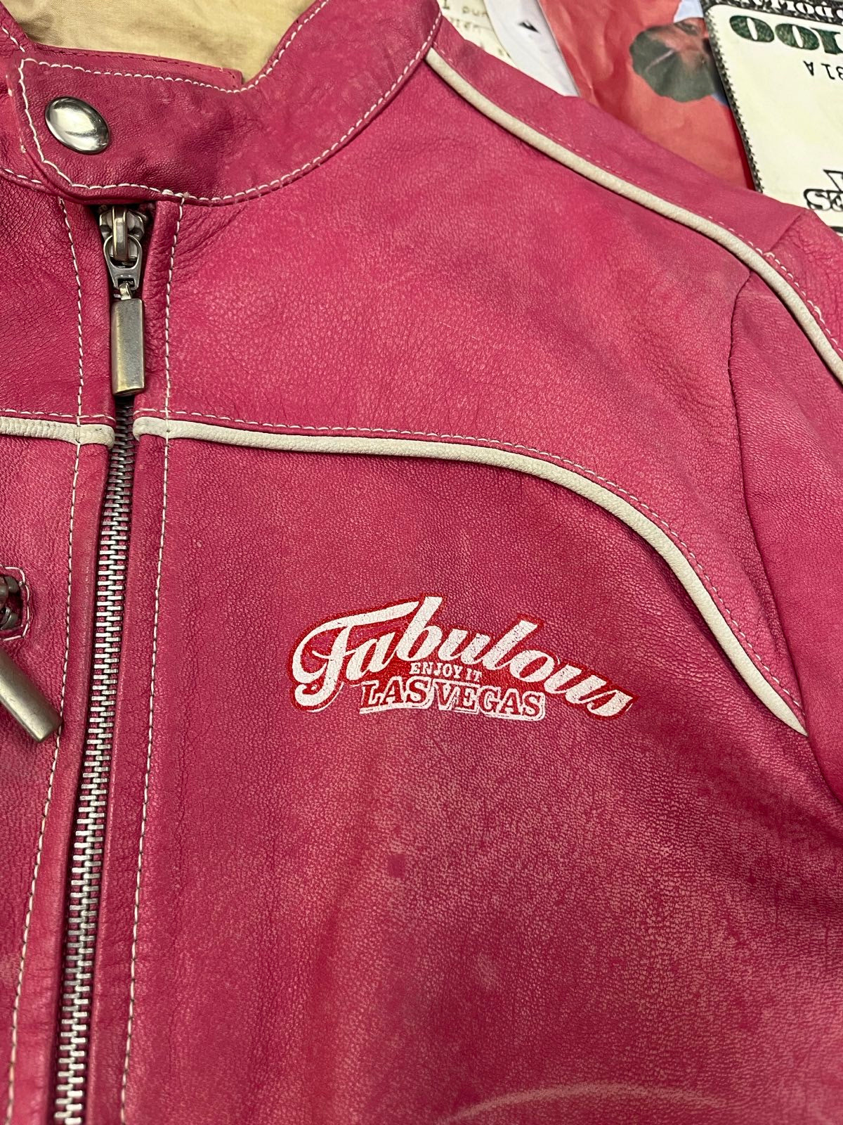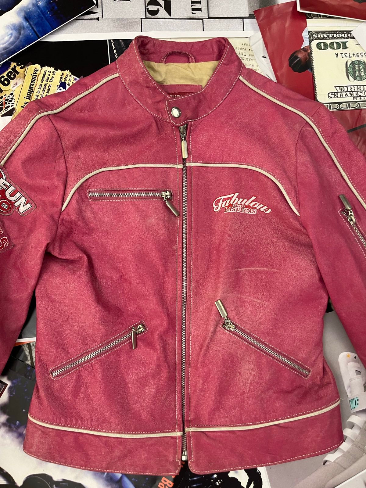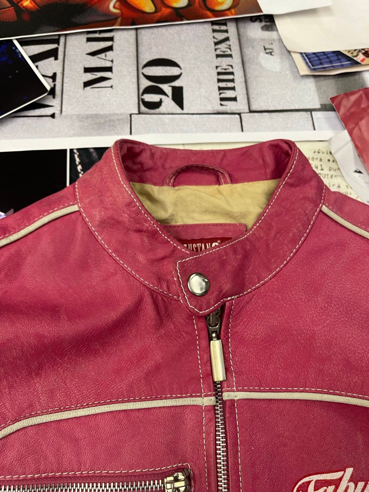 (S) Mustang leather kožená bunda dámská růžová s nášivkama, nápis WILD CAT na zádech
