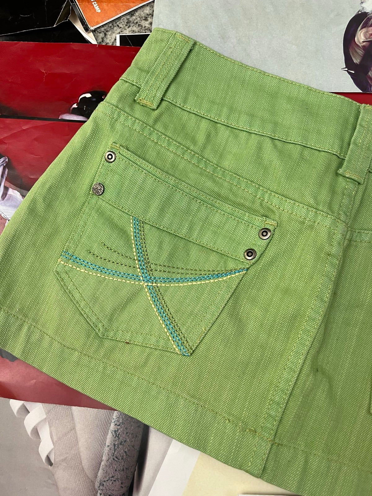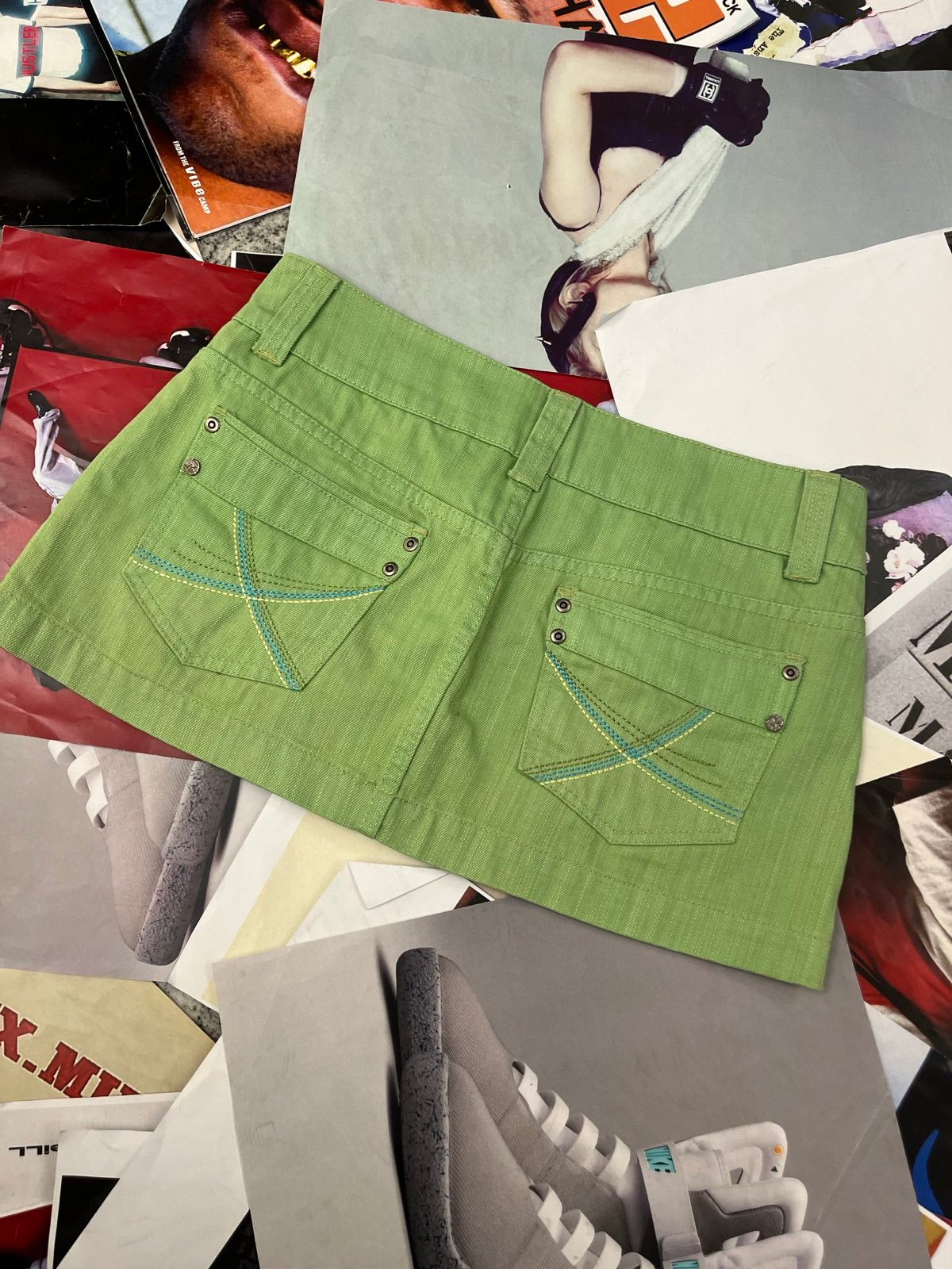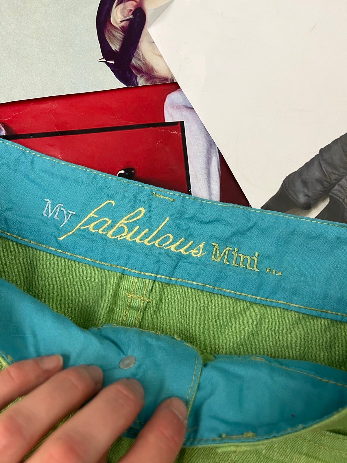 (L) My Fabulous Mini MINI SUKNĚ zelená s modrým vyšíváním na zadních kapsách