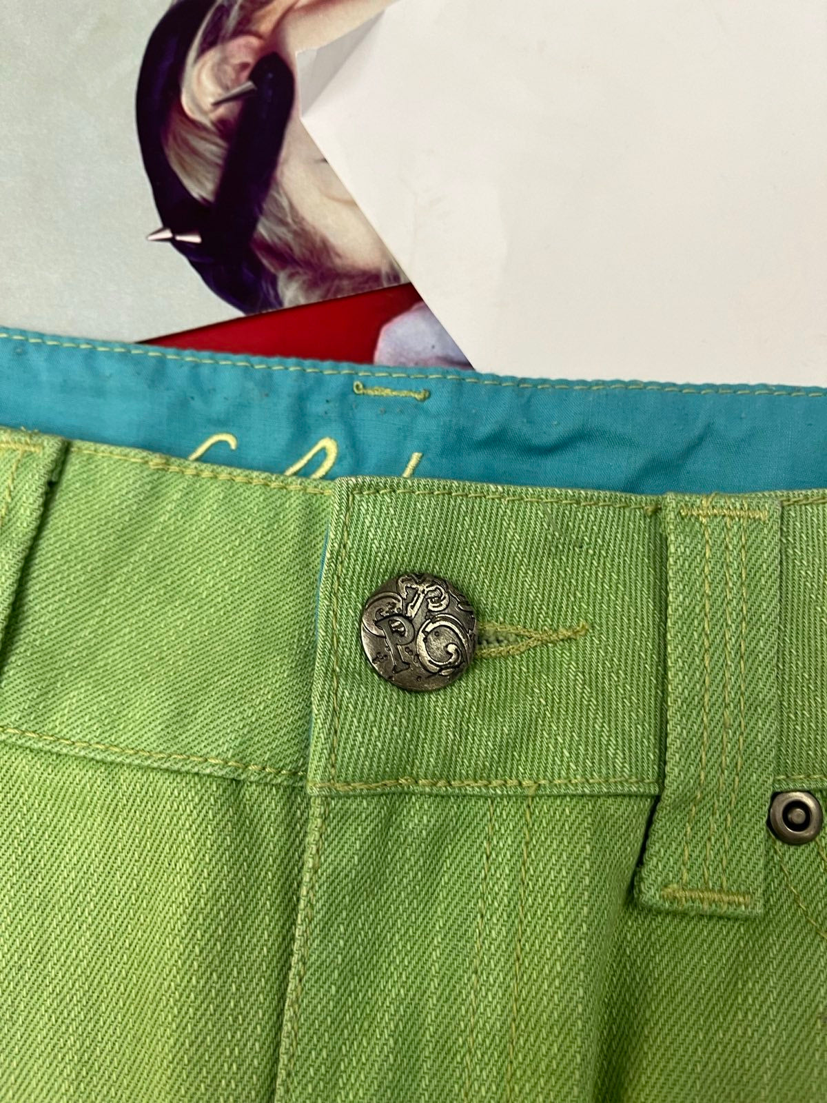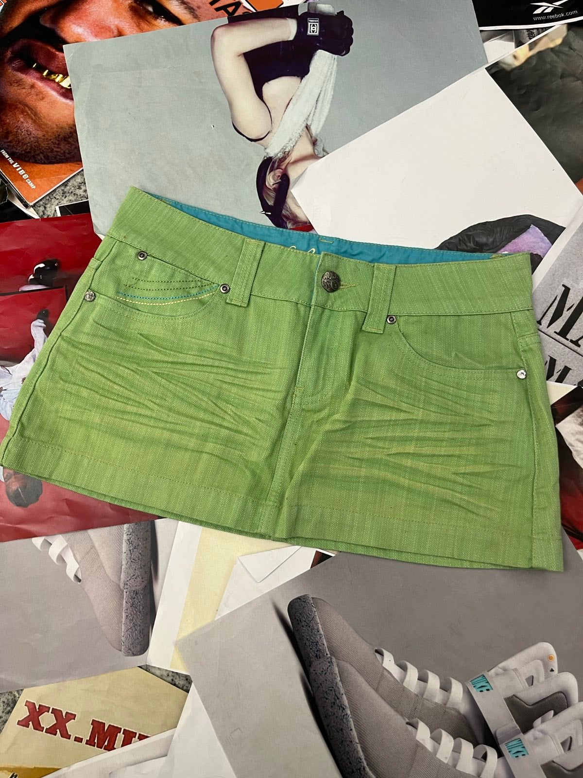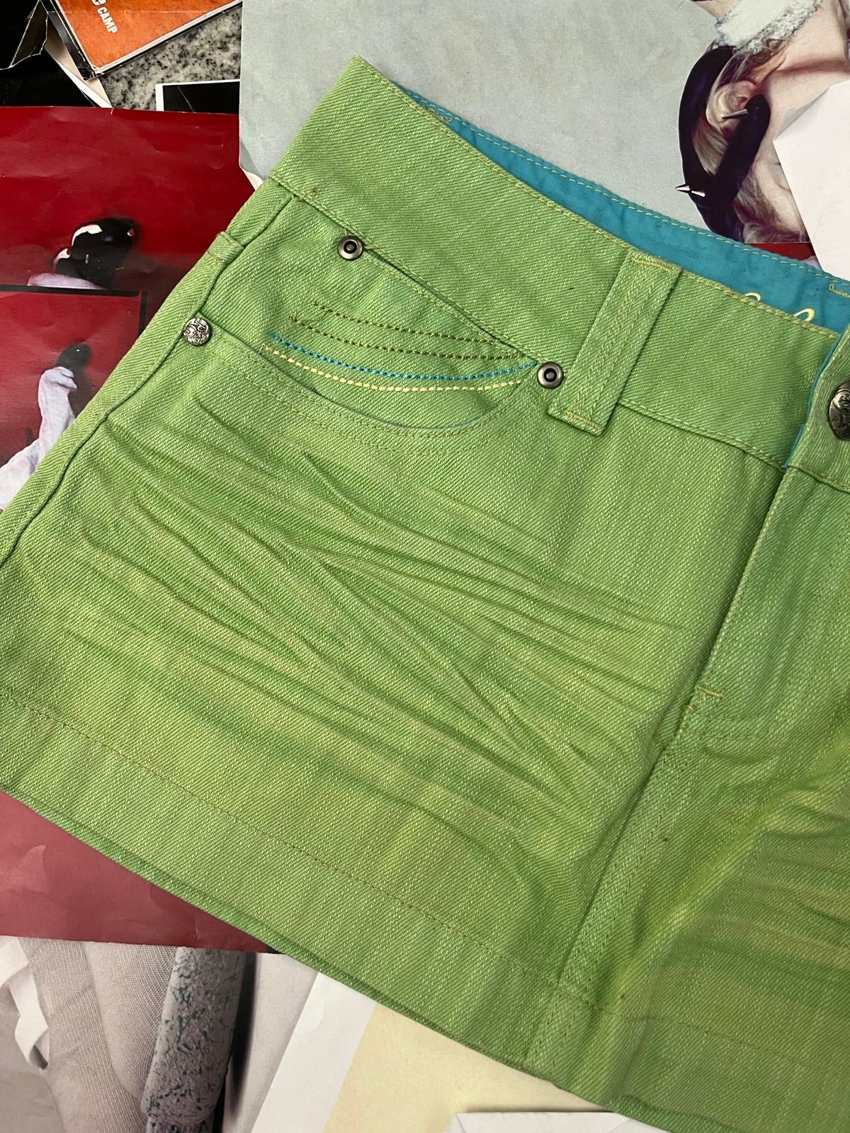 (L) My Fabulous Mini MINI SUKNĚ zelená s modrým vyšíváním na zadních kapsách