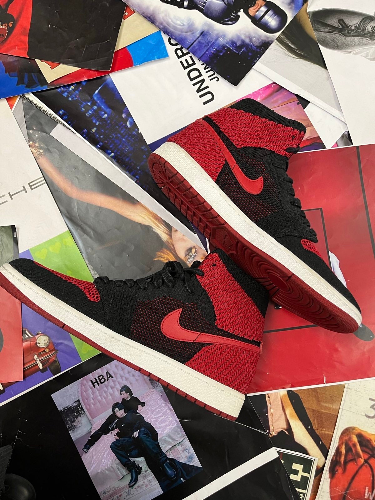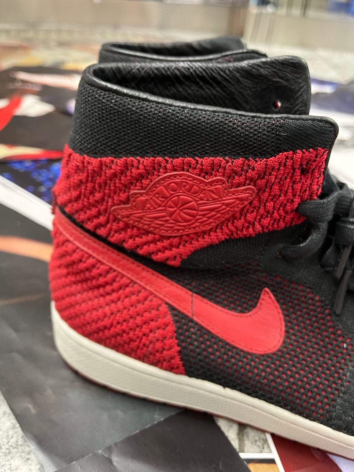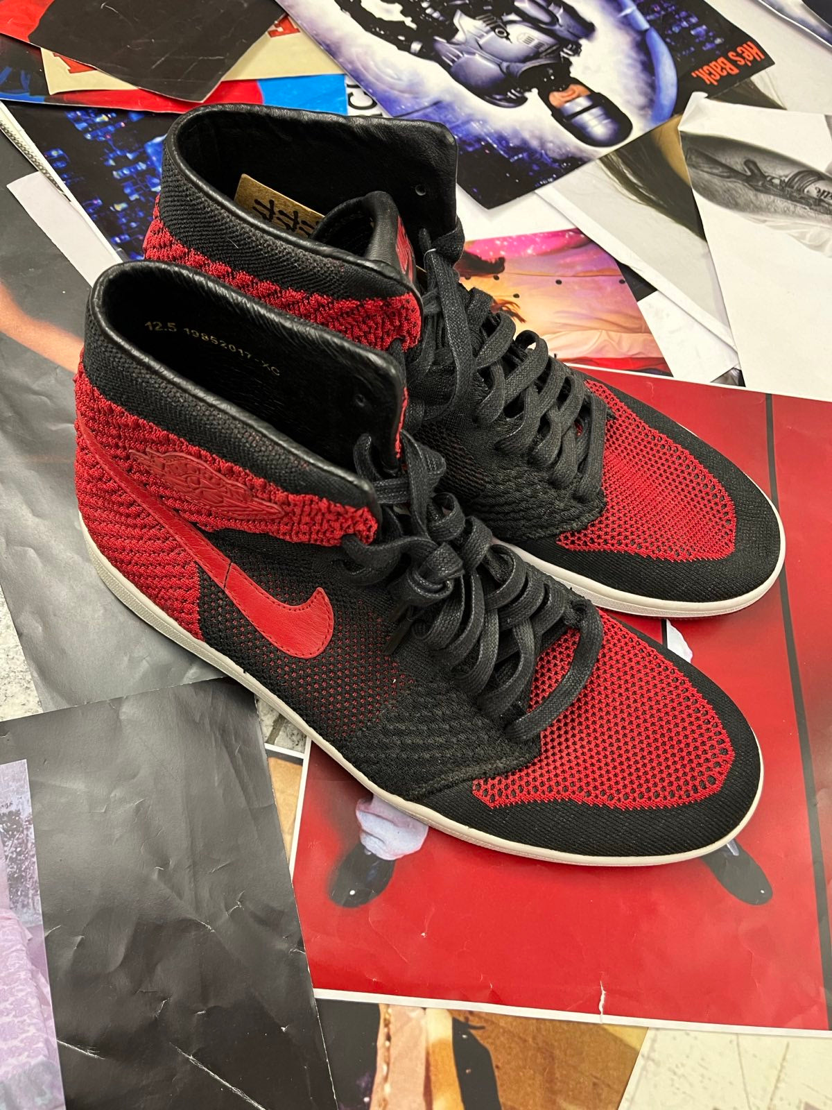(47) Nike Air Jordan 1 TENISKY Retro High OG Flyknit "Bred" červeno černé