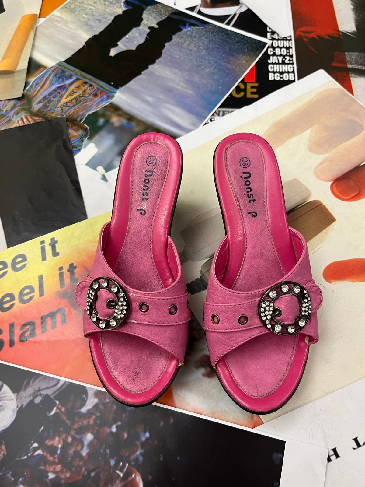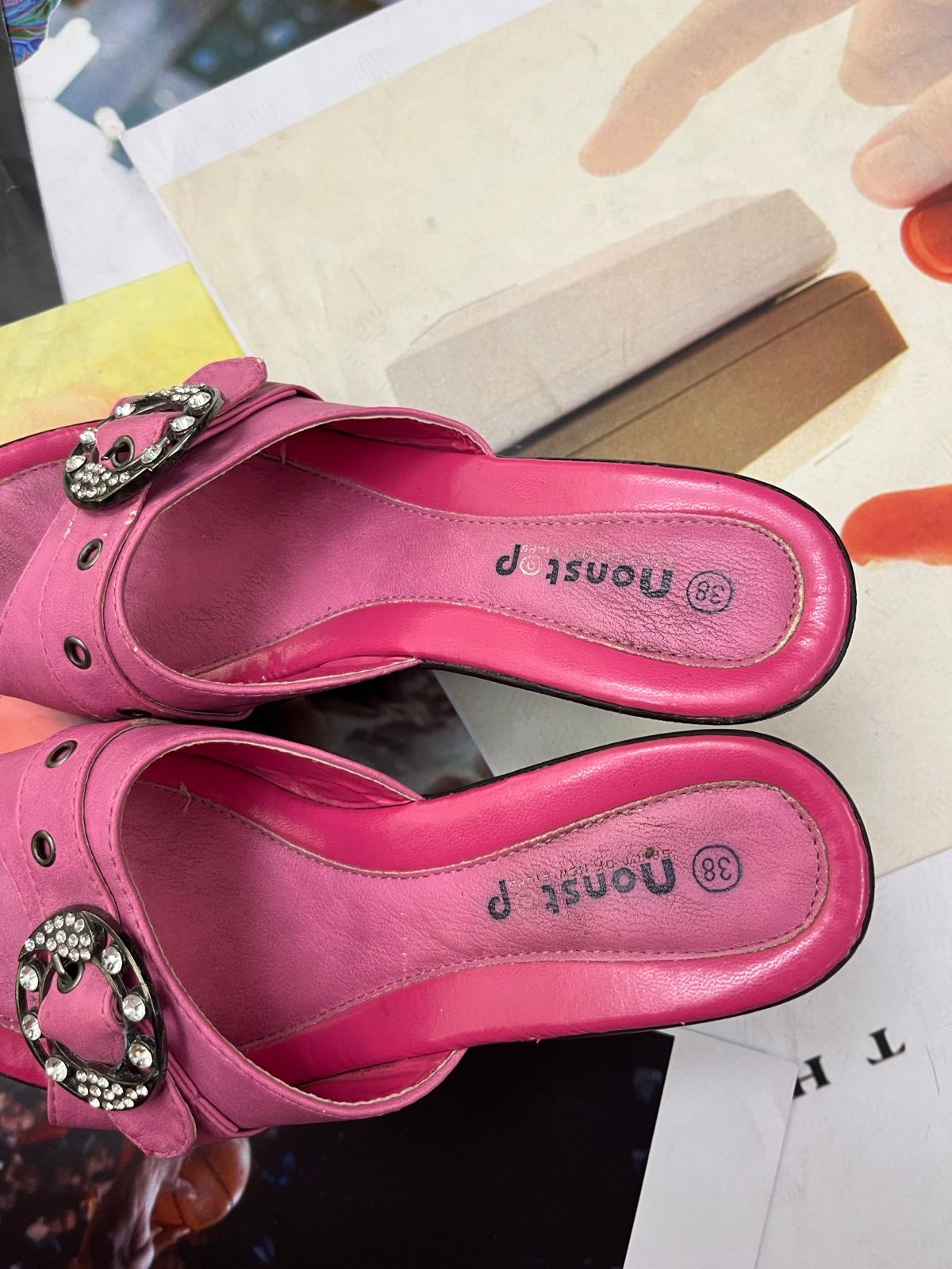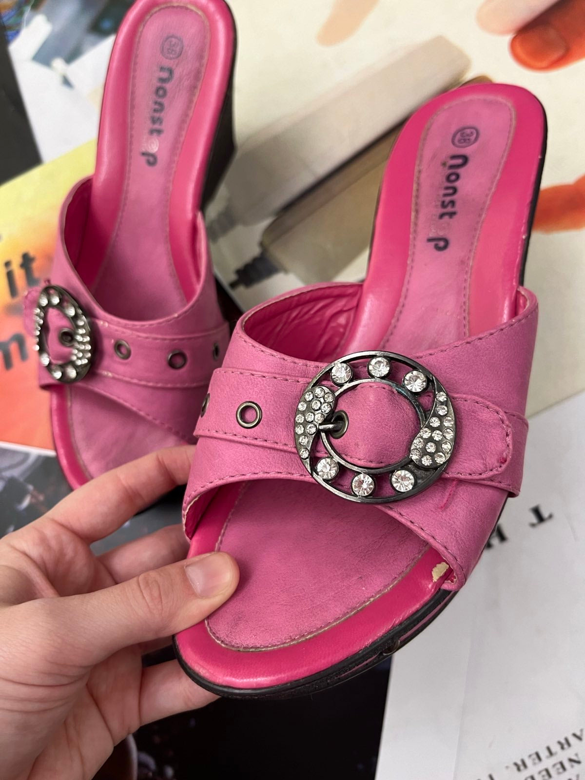 (38) Nonstop BOTY na podpatku růžové, stříbrné přezky s kamínky
