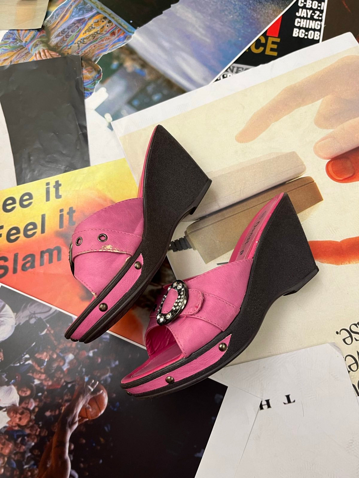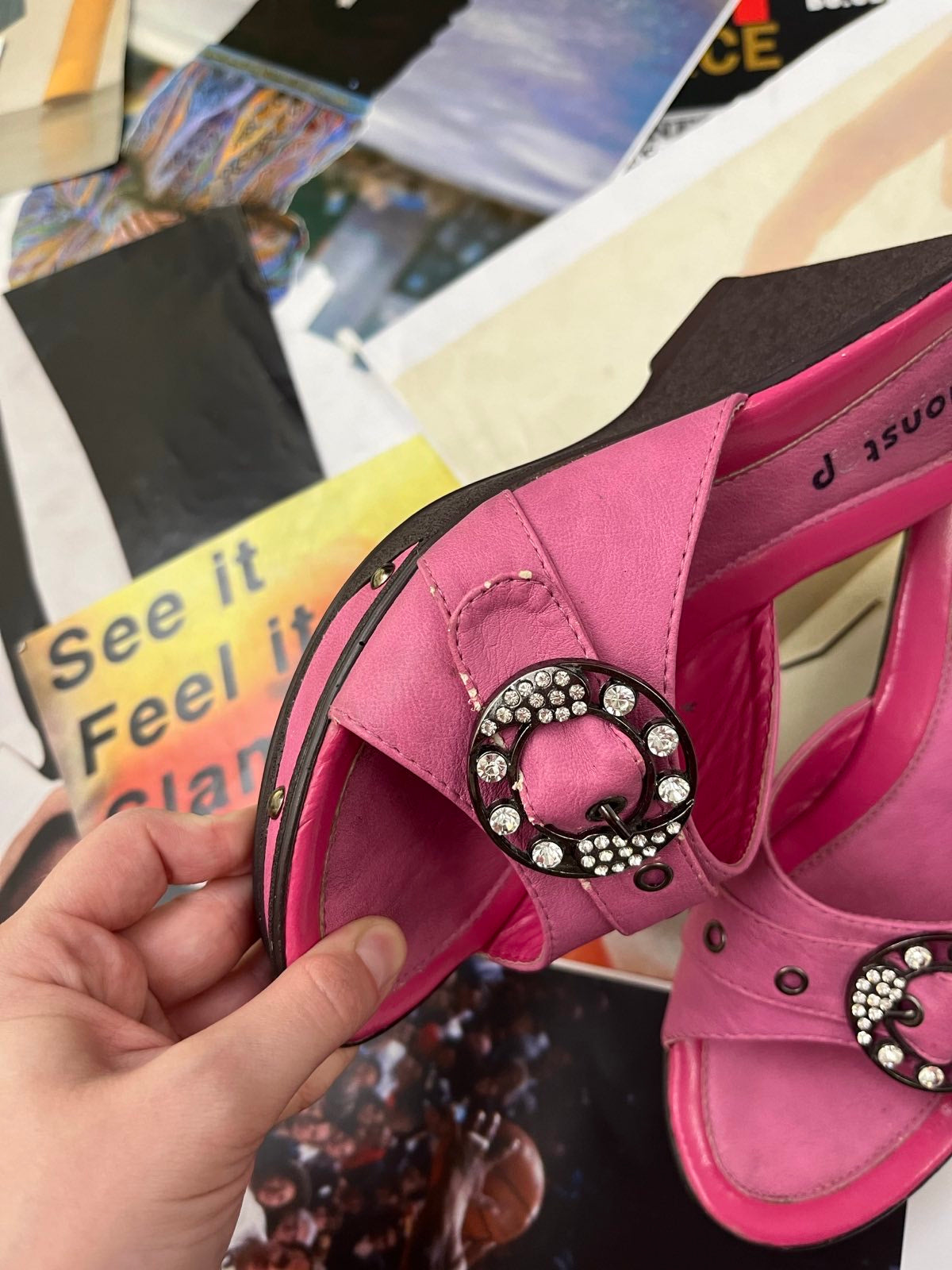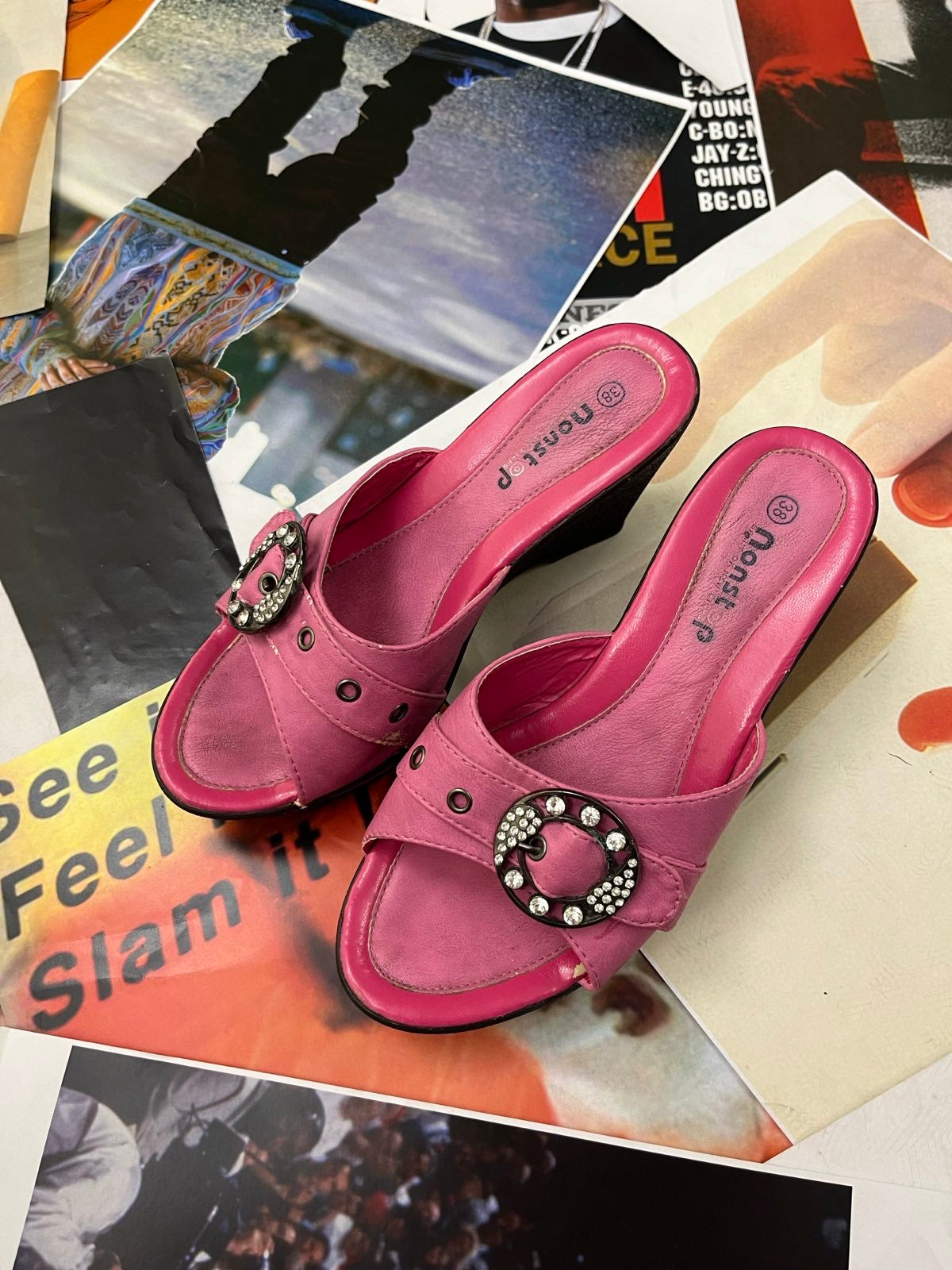 (38) Nonstop BOTY na podpatku růžové, stříbrné přezky s kamínky