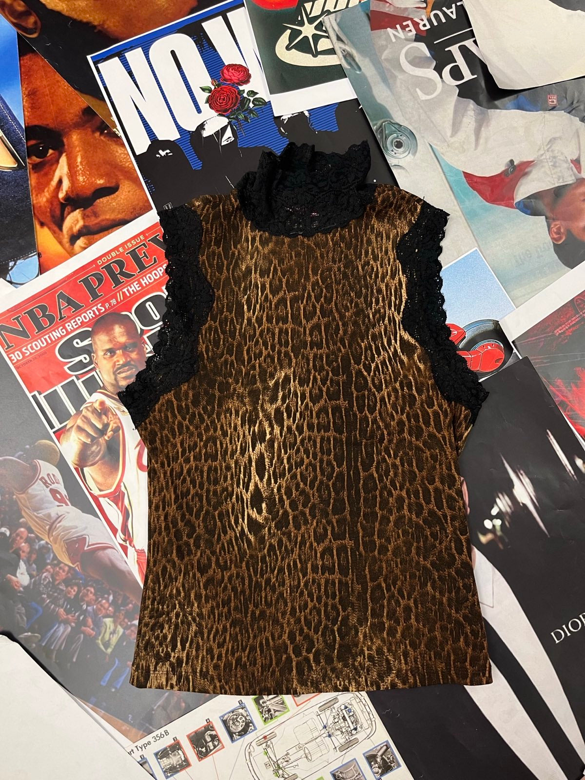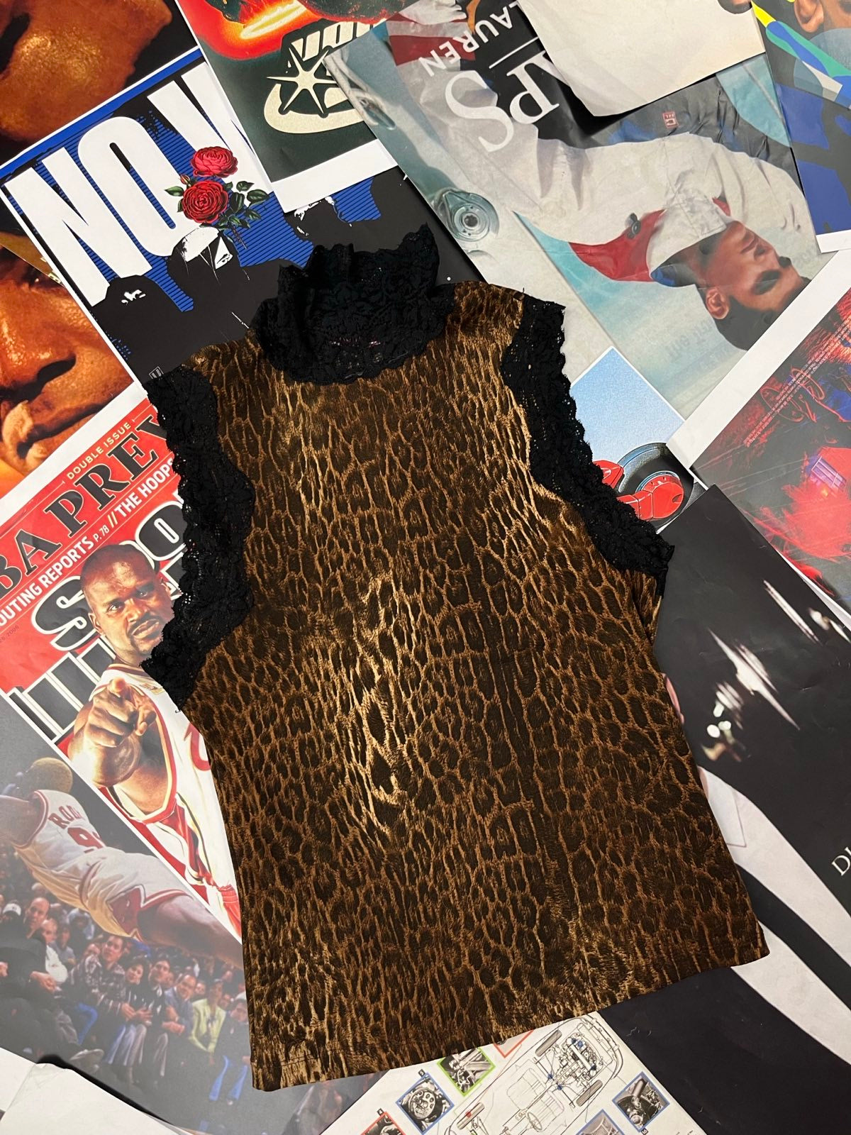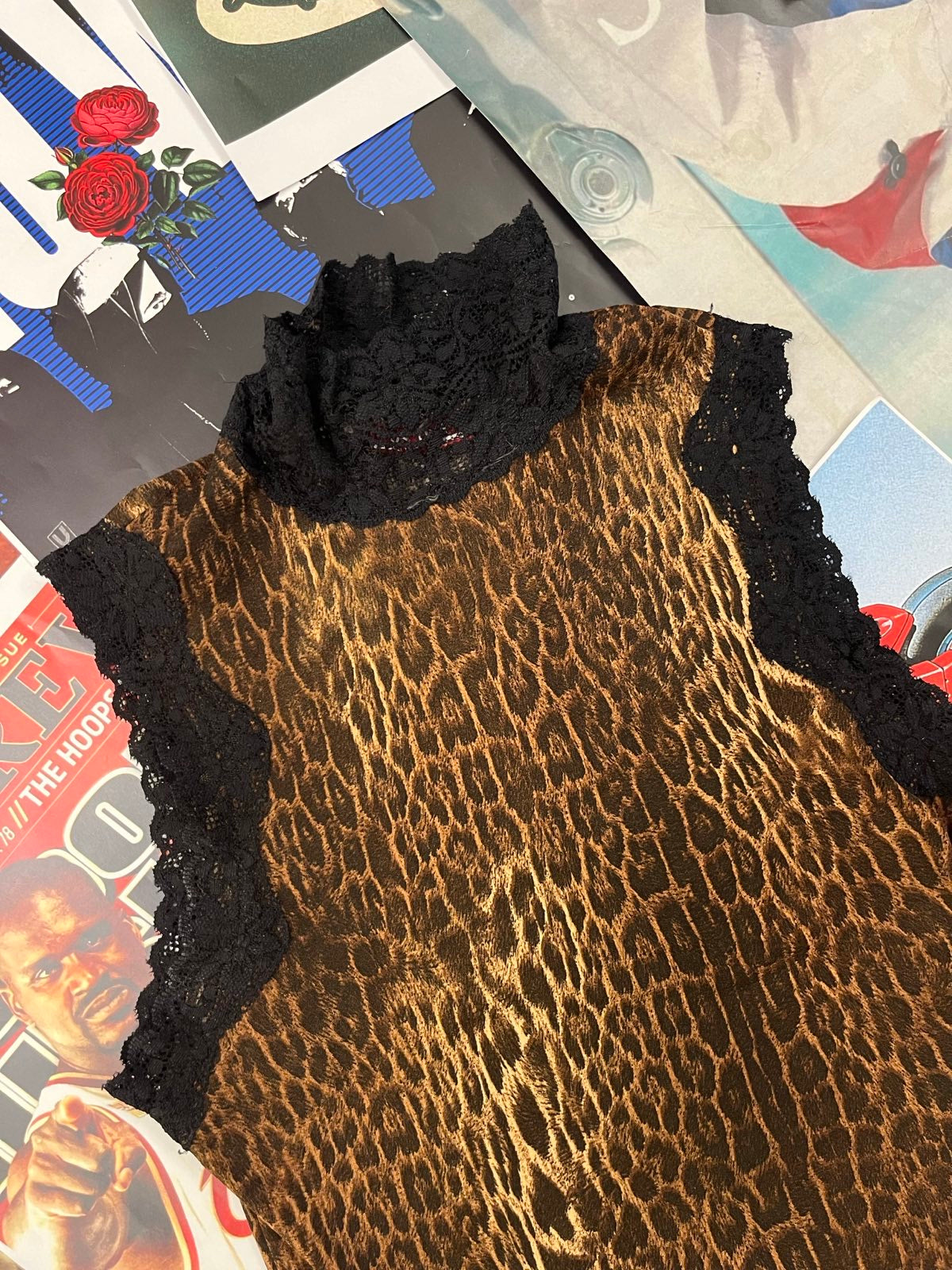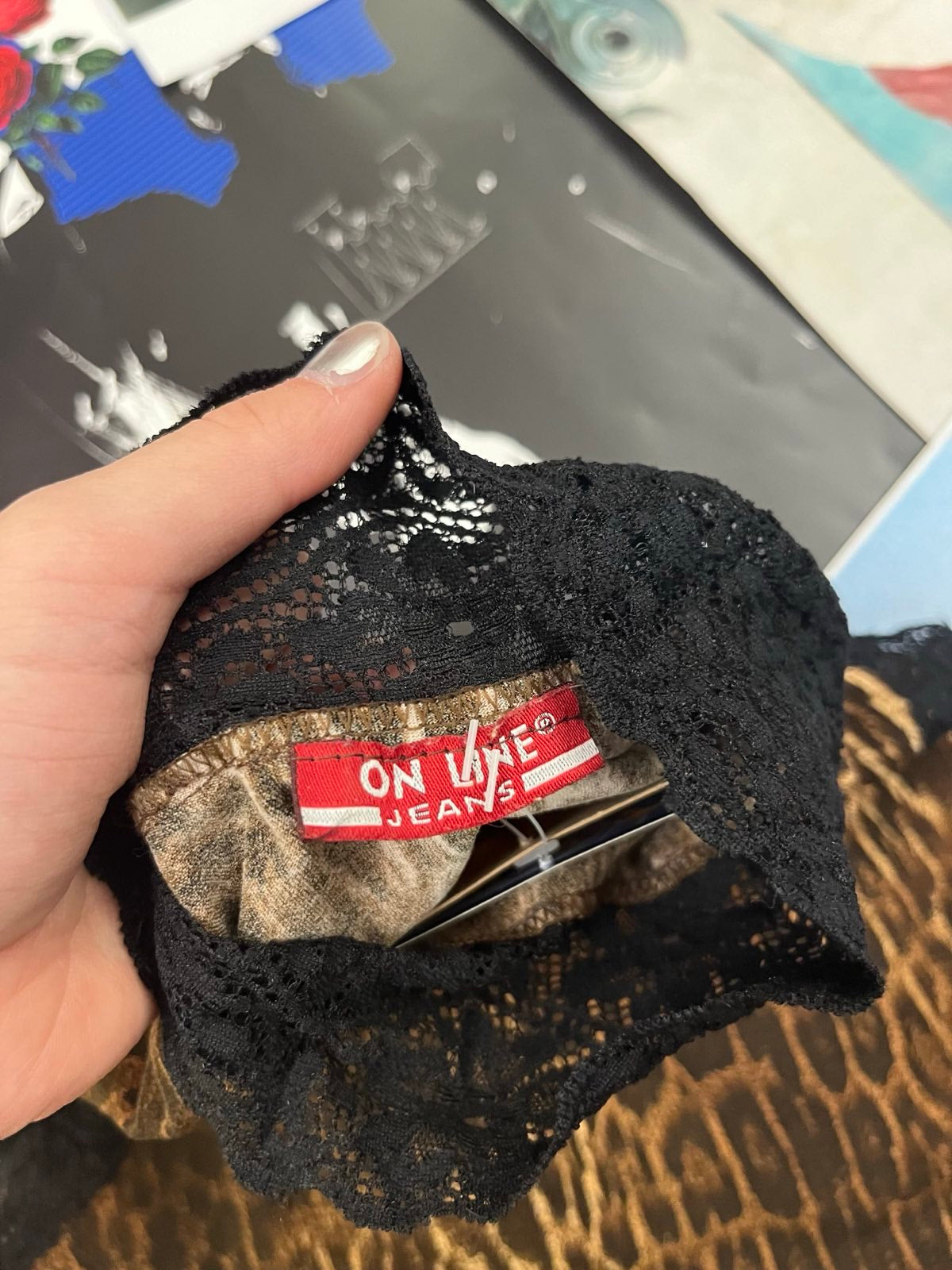 (M) On Line Jeans TOP dámský hnědý tygrovaný s černou krajkou