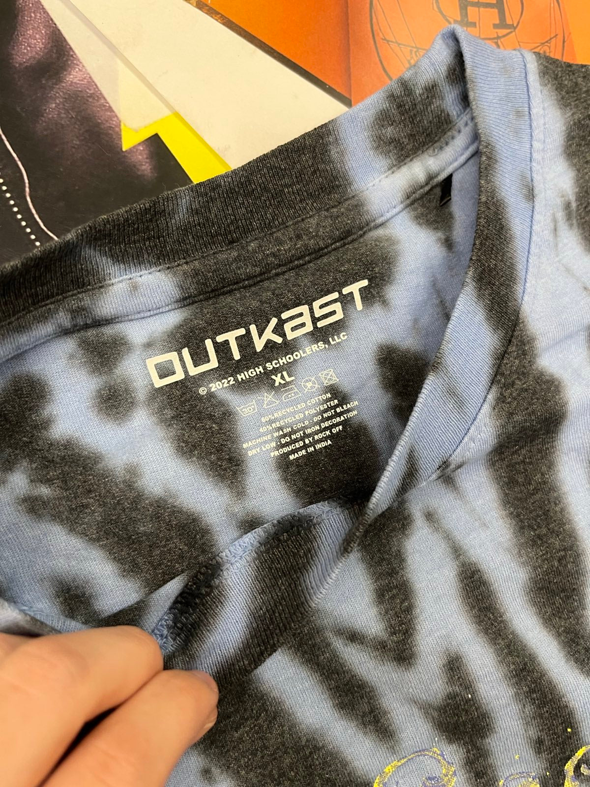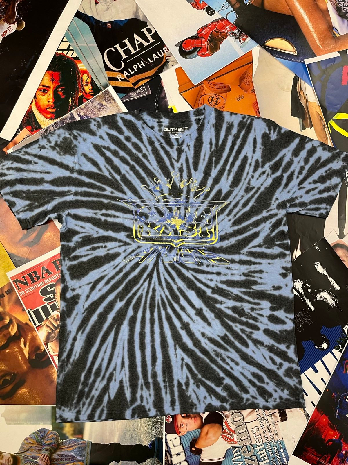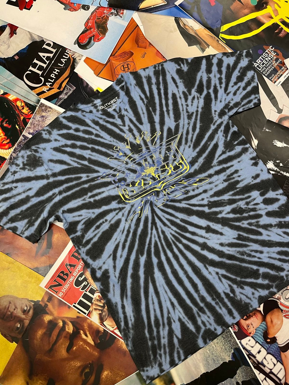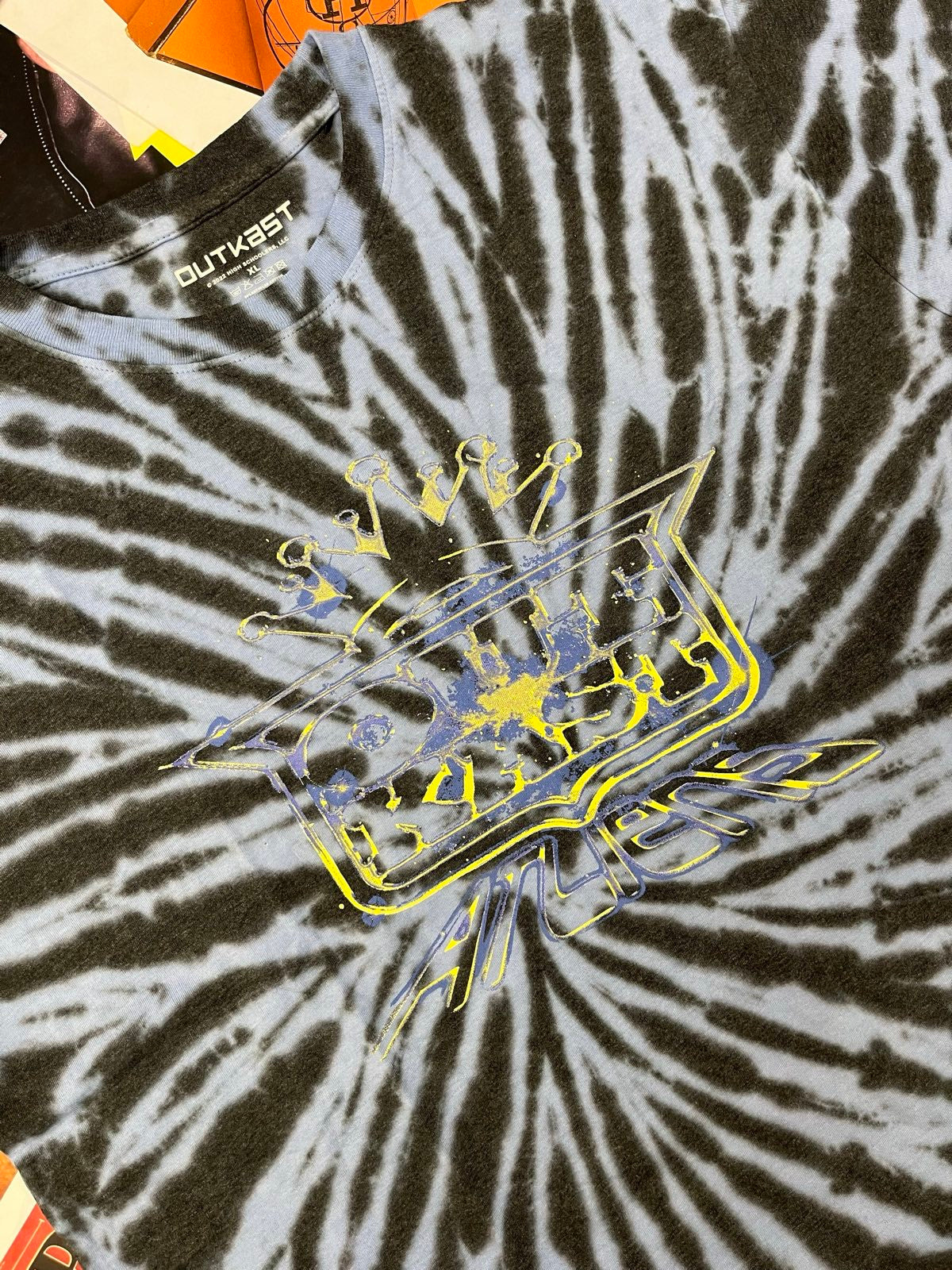 Outkast TRIKO modré batikované, žluto-modré logo