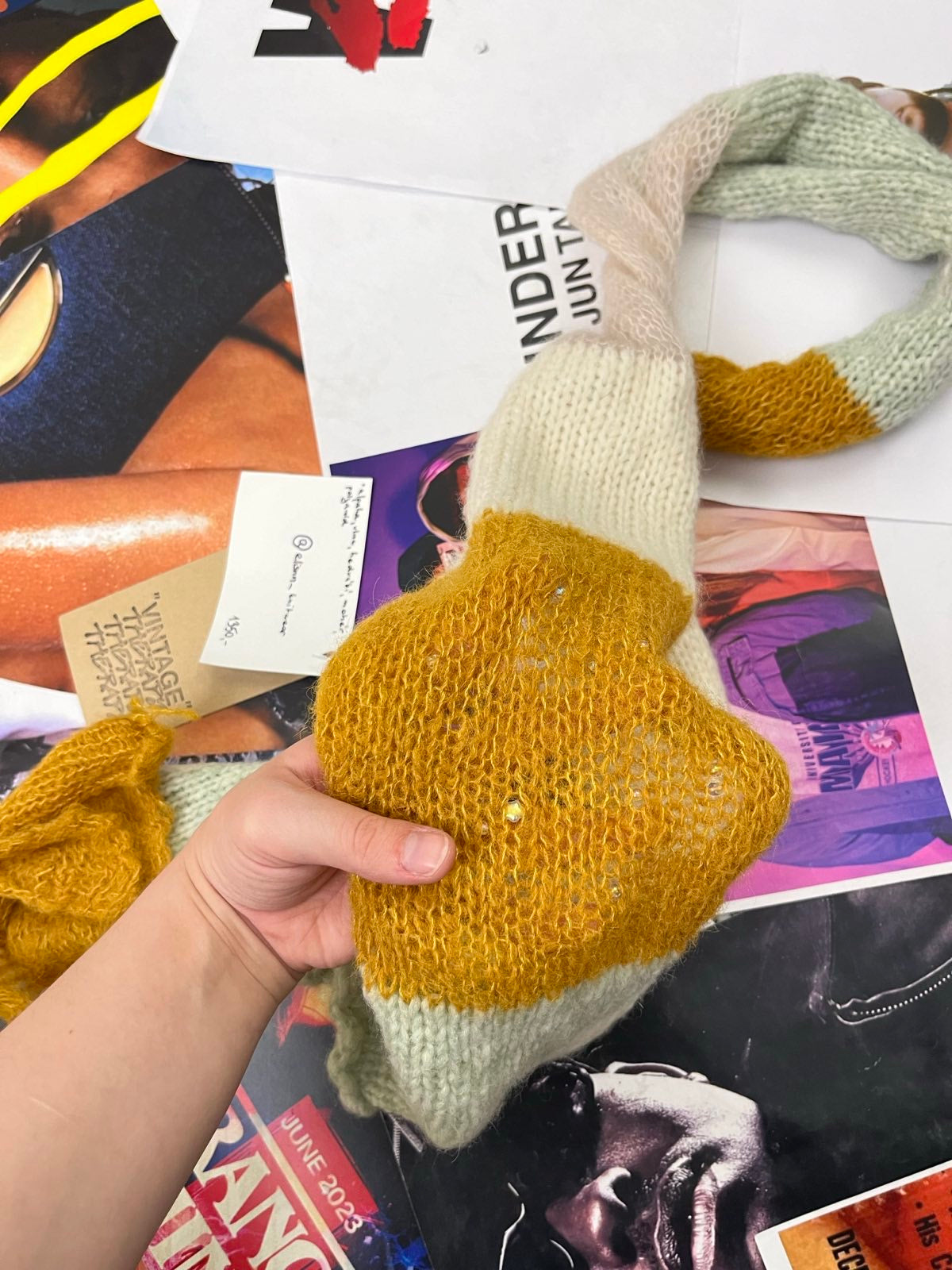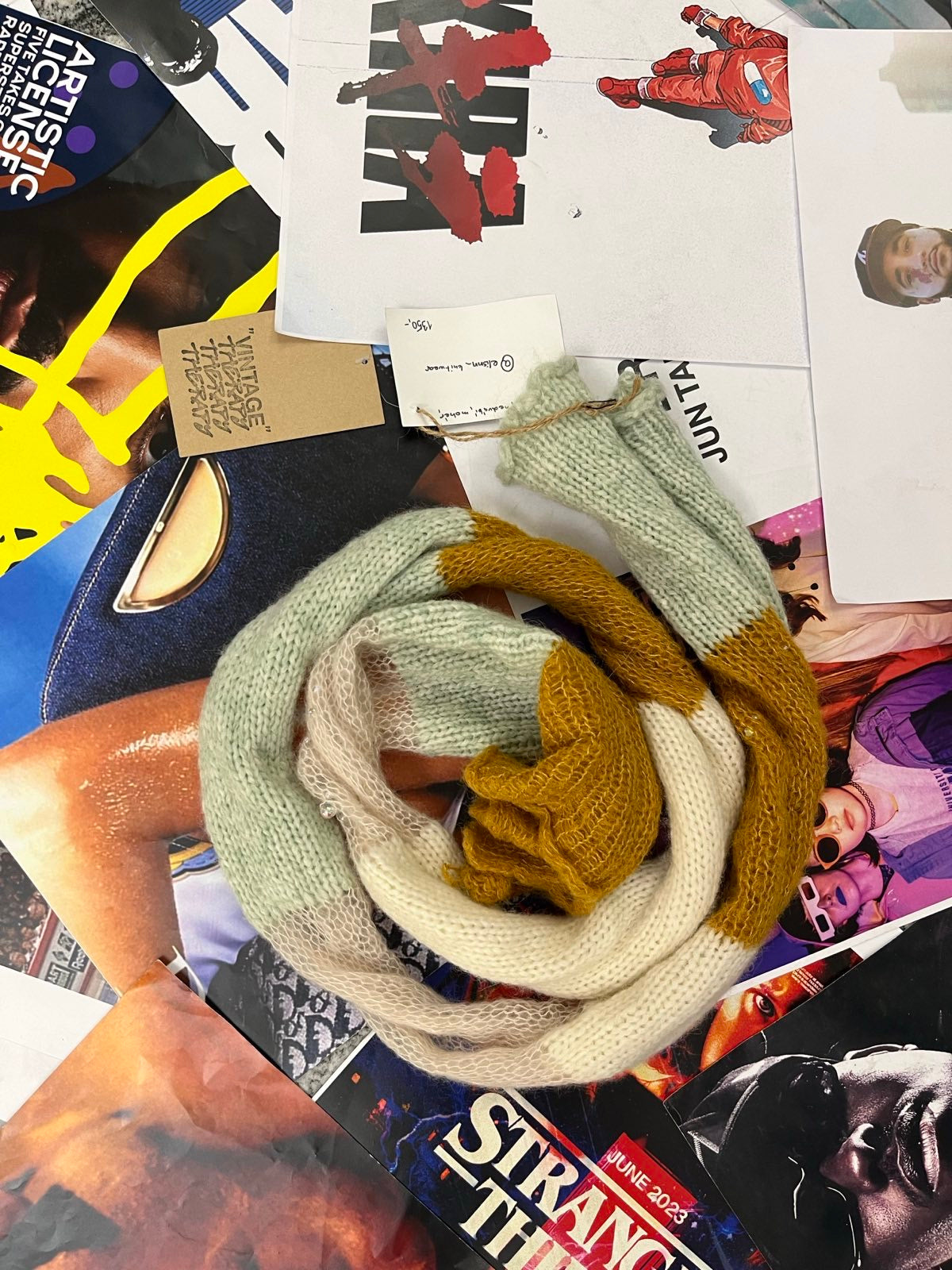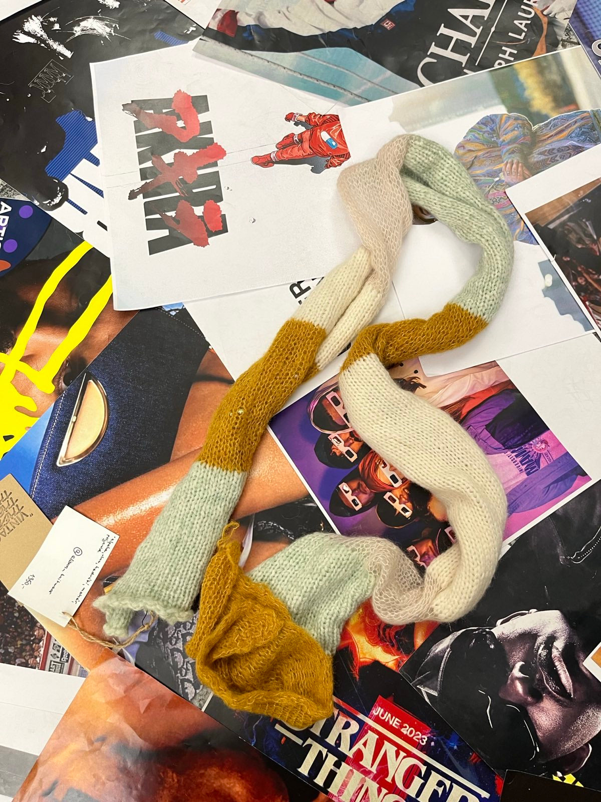 Pletená šála bílá, světle zelená, hořčicová (s korálky) OS