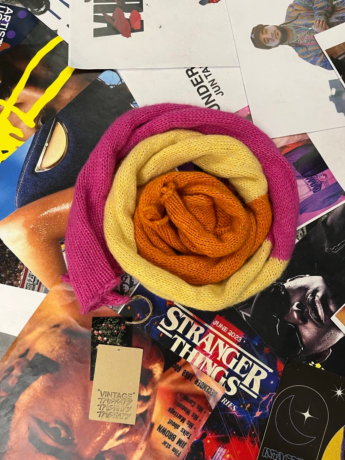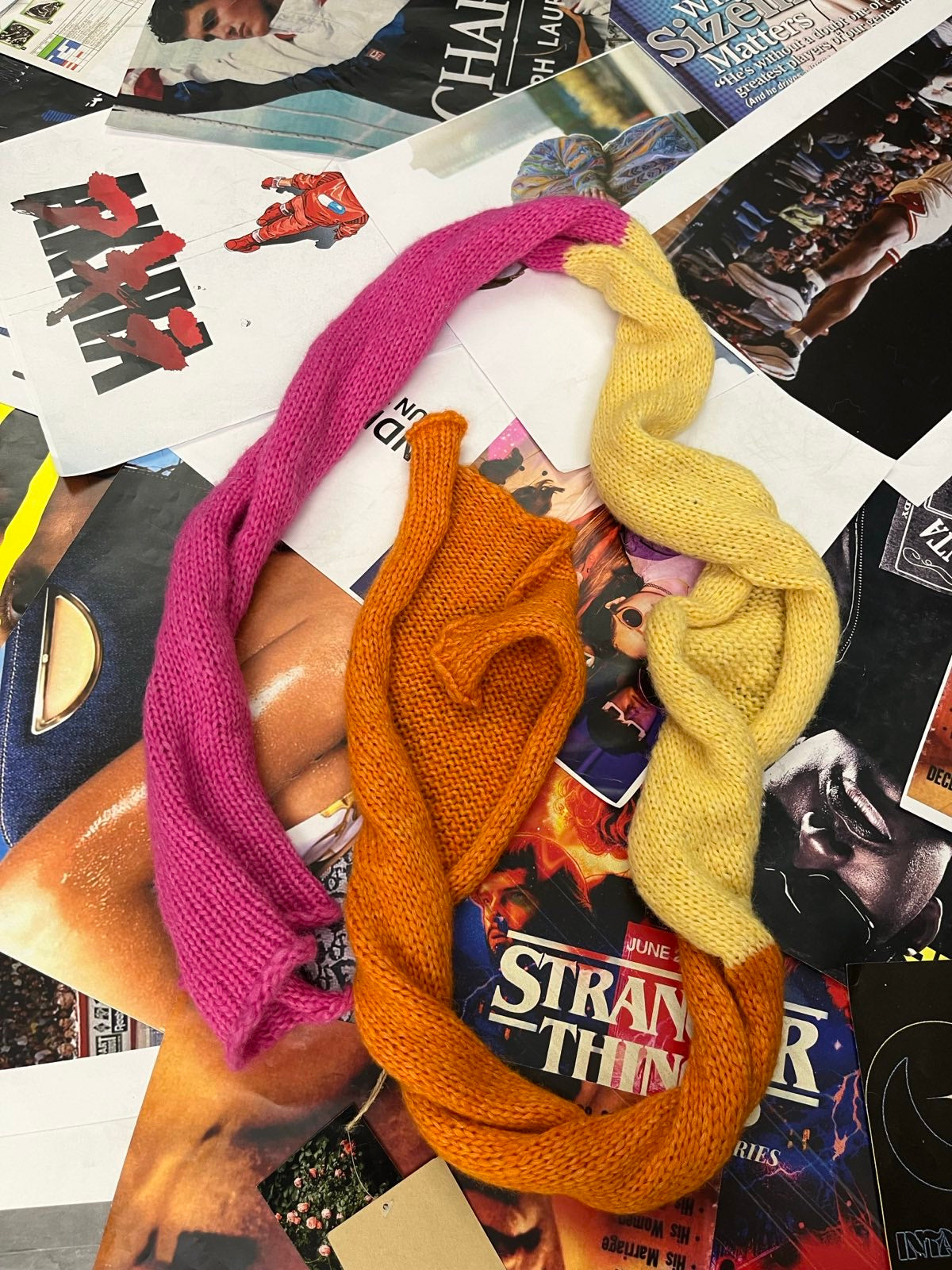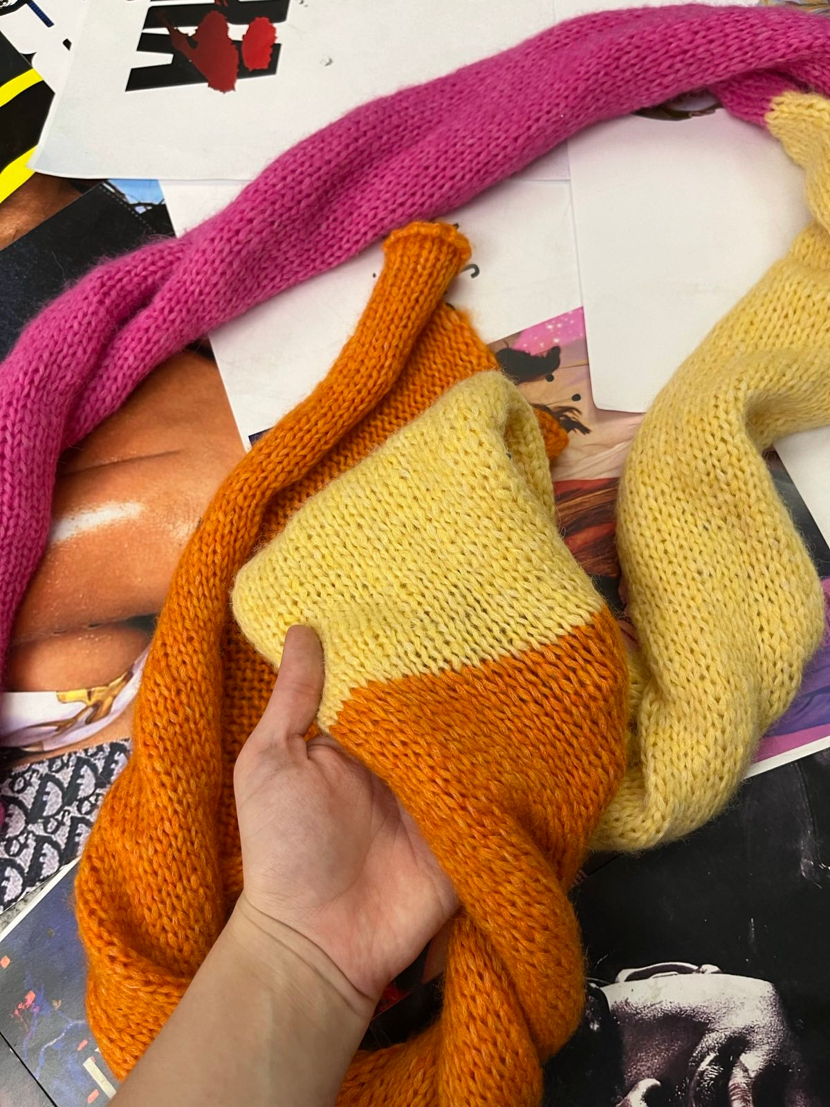 Pletená šála ružová, žlutá, oranžová OS