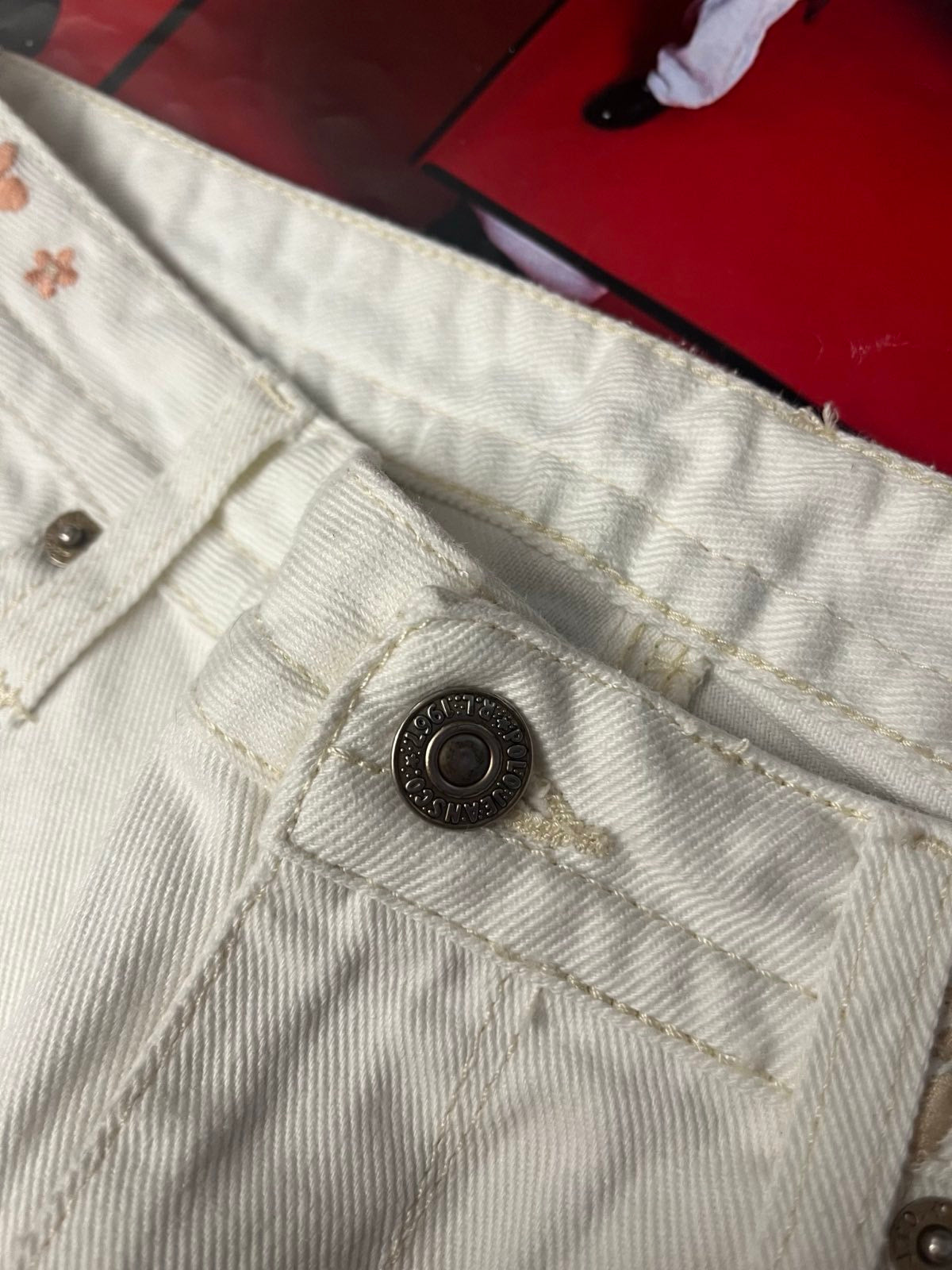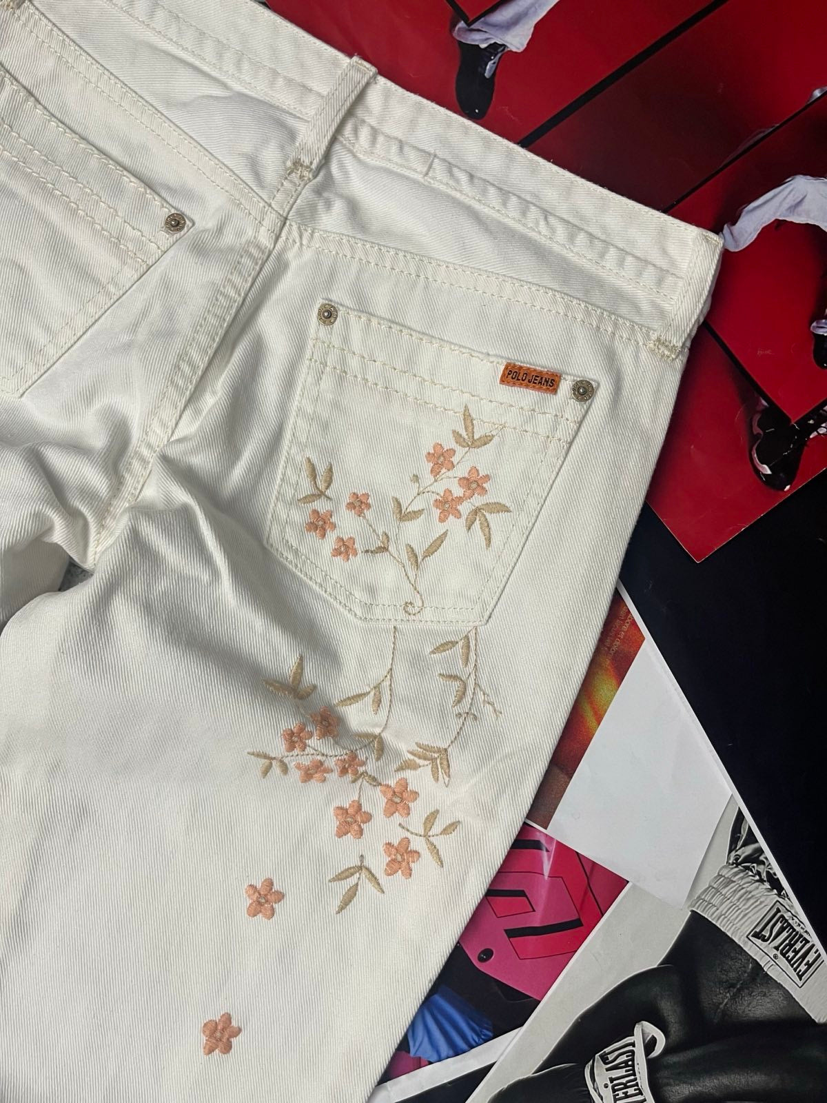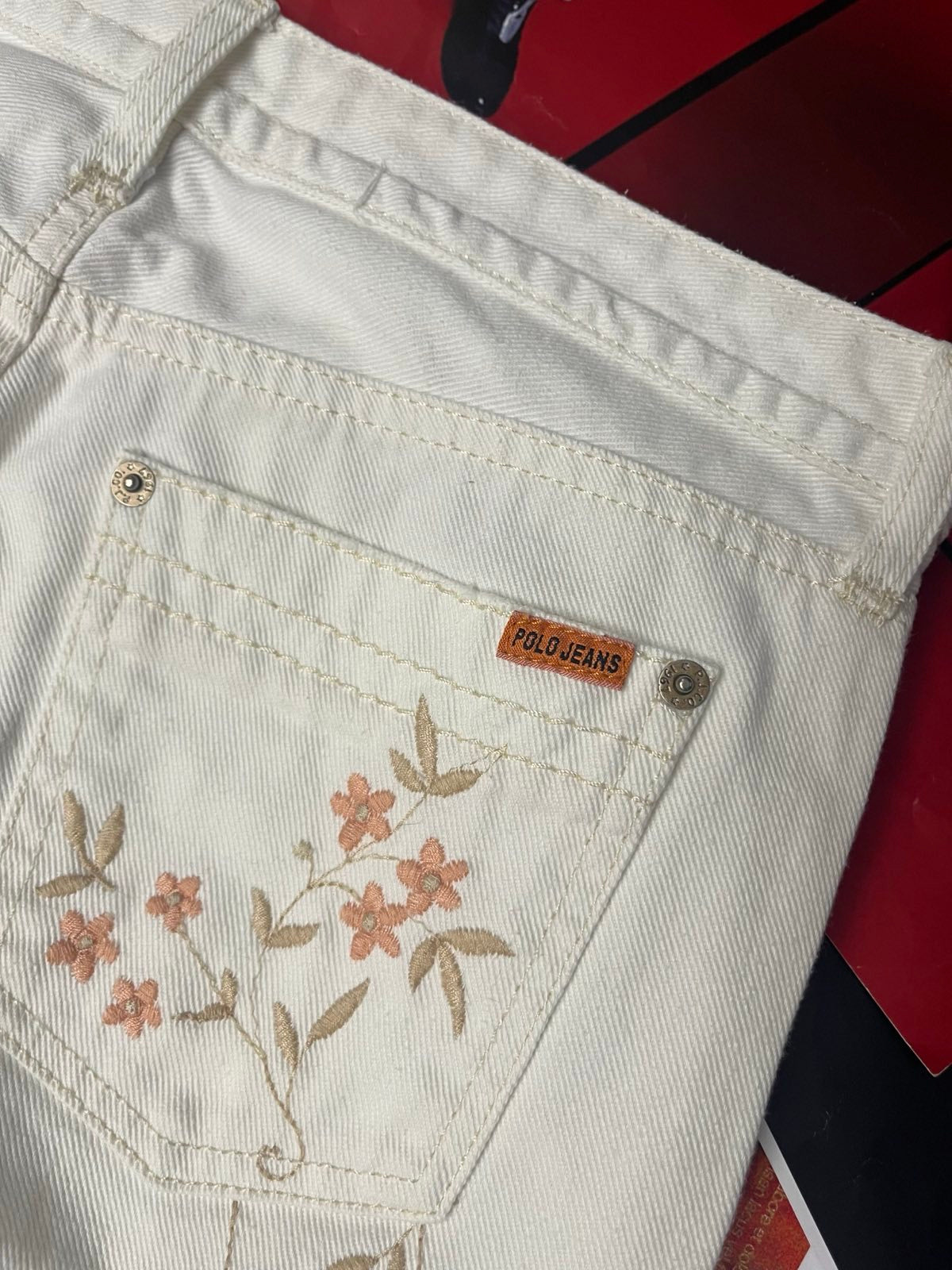 (S) Polo Ralph Lauren džíny dámské bílé s květinama