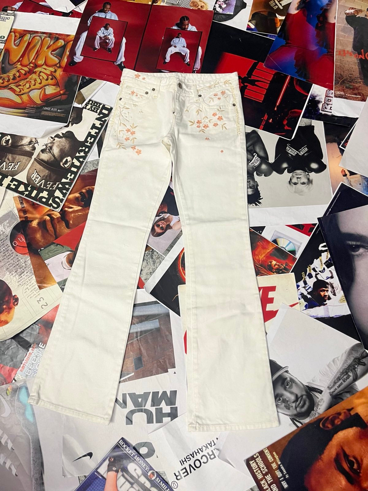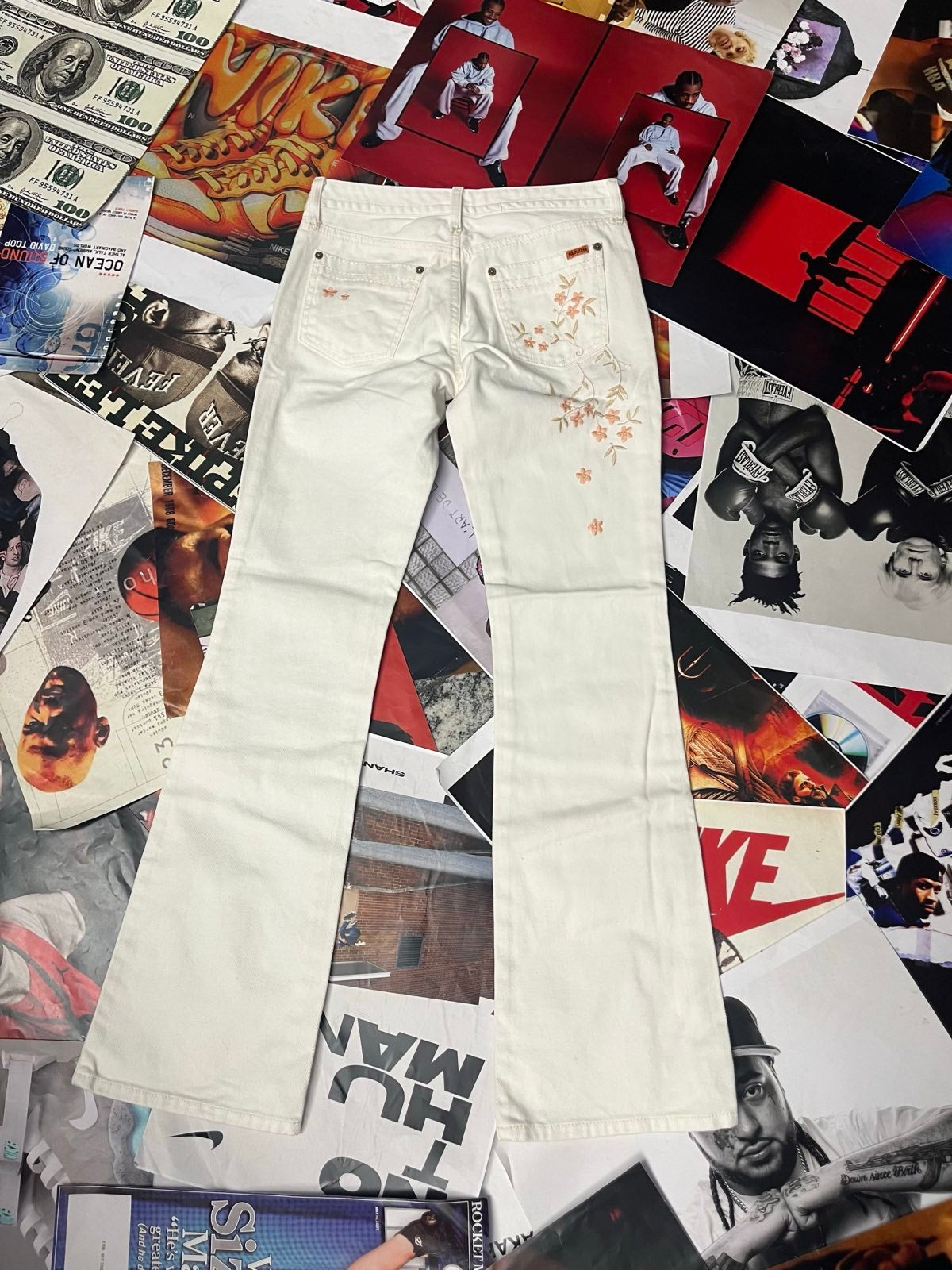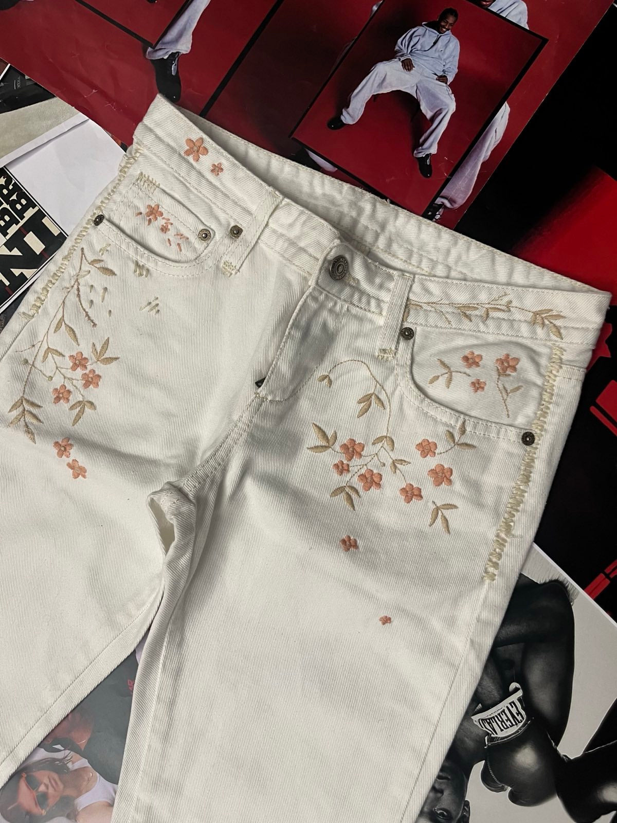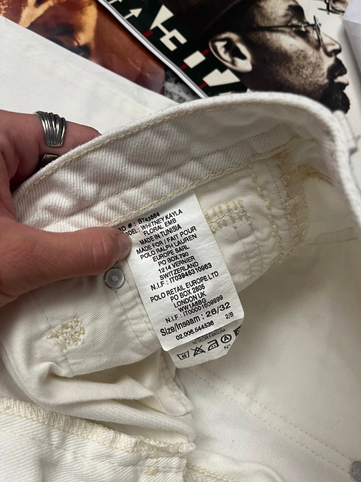 (S) Polo Ralph Lauren džíny dámské bílé s květinama